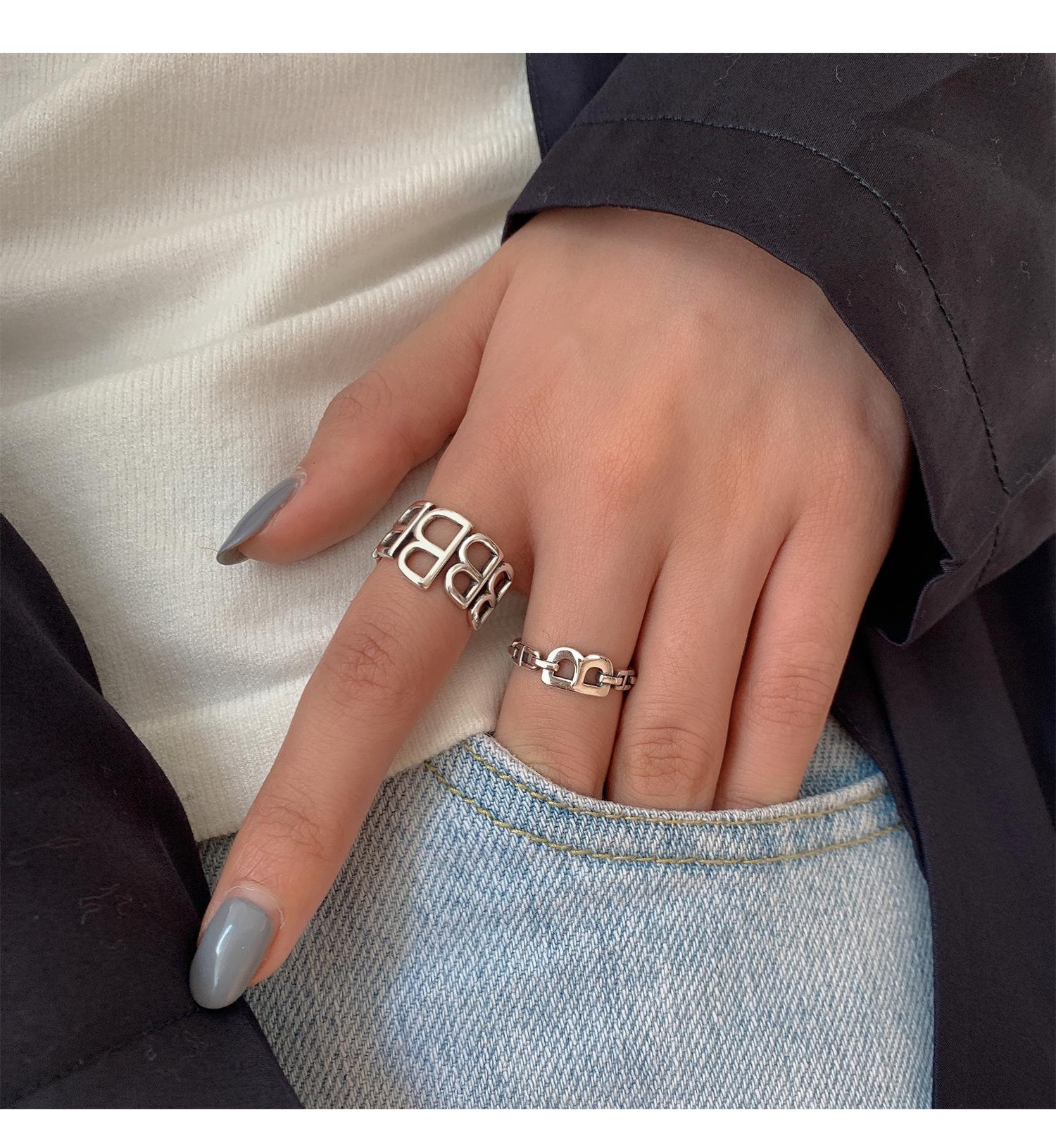 Anillo de Letra B S925 Plateado Europeo y Americano para Mujer, Anillo de Dedo Índice de Estilo Frío Retro, Anillo de Cola Personalizado, Joyería de Mano Popular