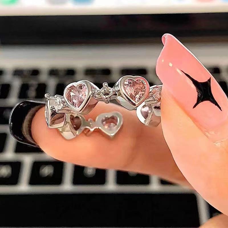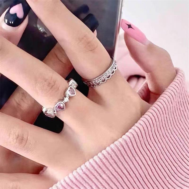 Super Hada Rosa Diamante encantador anillo moda personalidad simple temperamento anillo femenino diseño nicho avanzado anillo abierto para el dedo índice