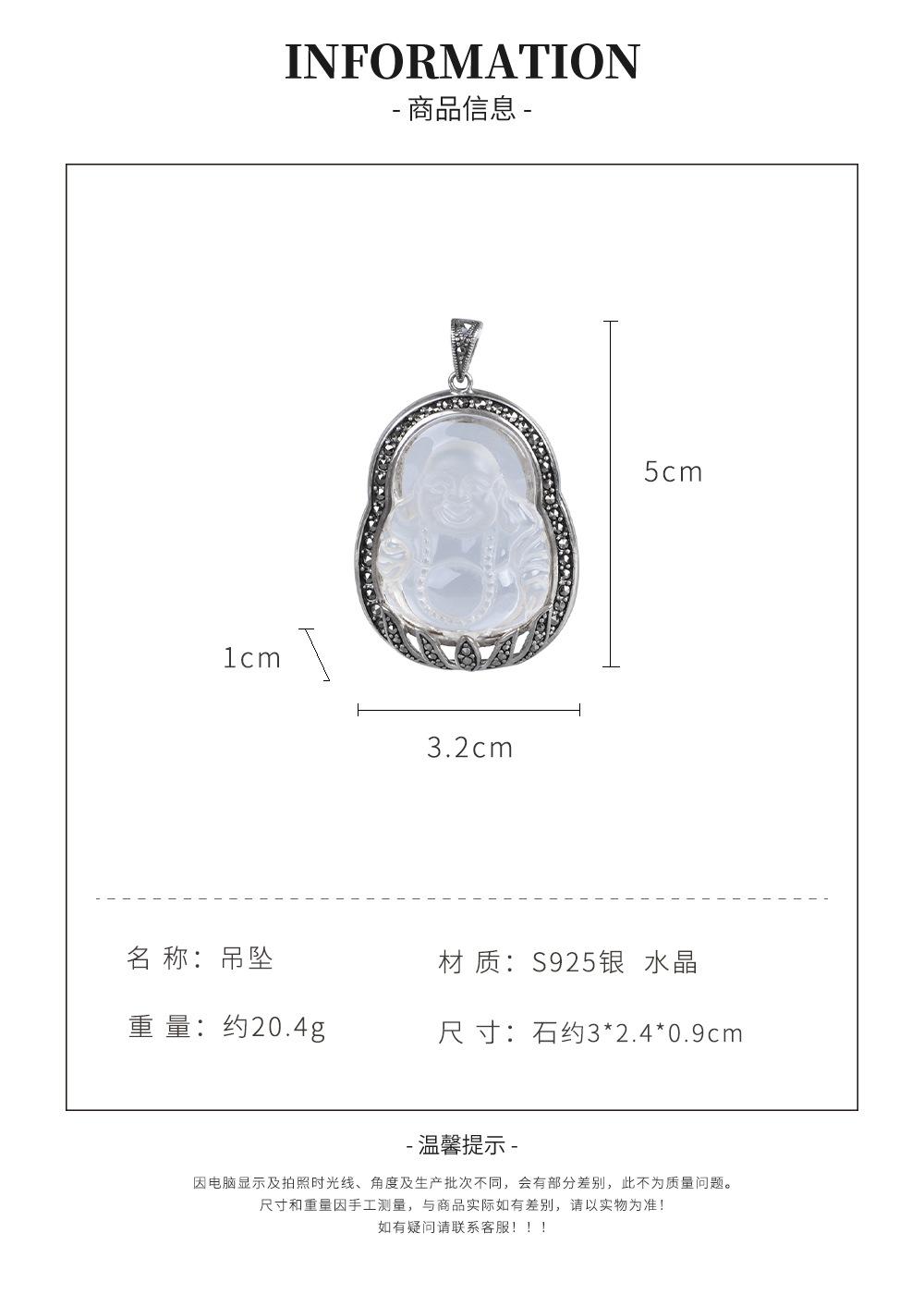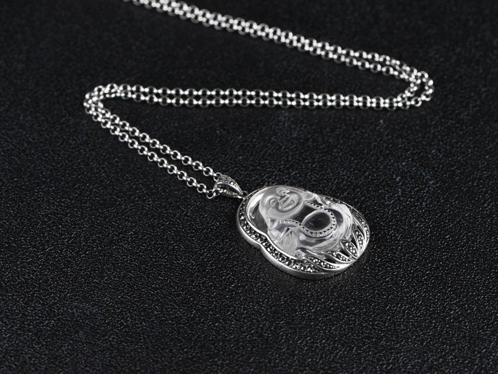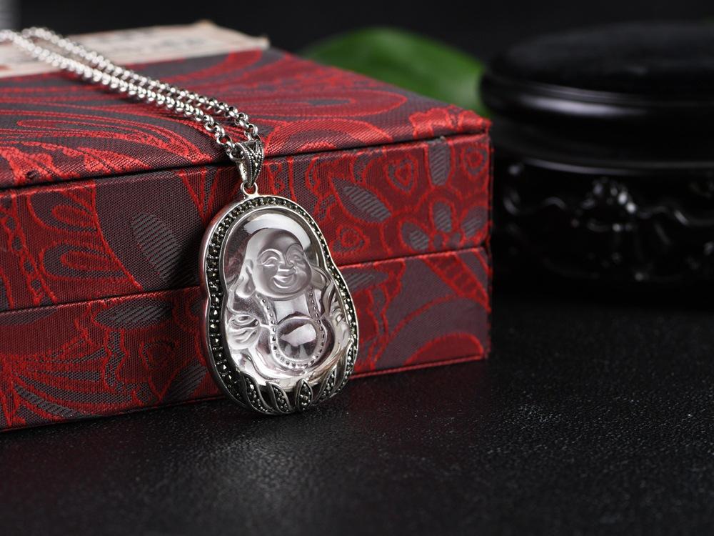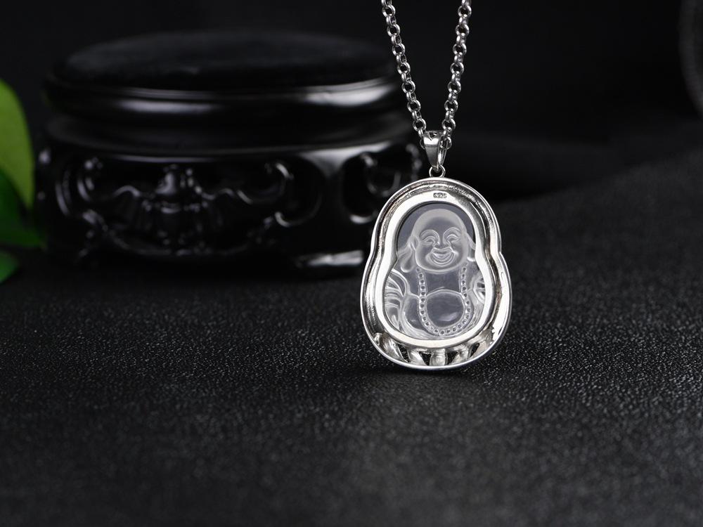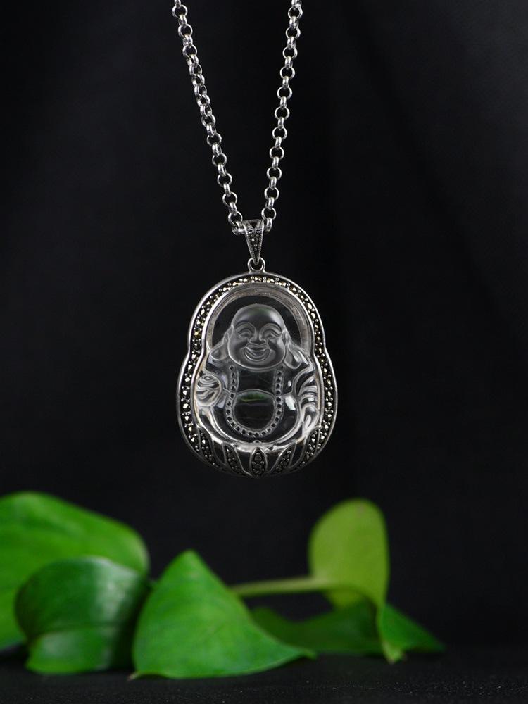Colgante de plata tailandesa vintage de Golden Deer King, venta al por mayor, colgante de plata S925, colgante de Maitreya de cristal blanco, colgante de Buda para mujer