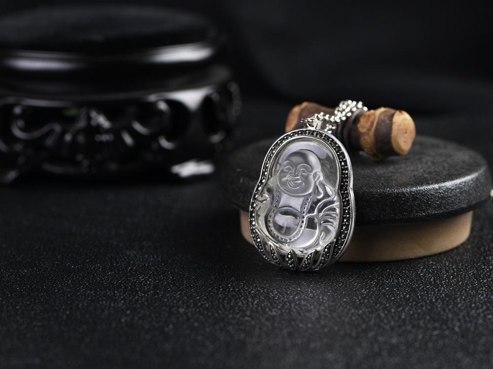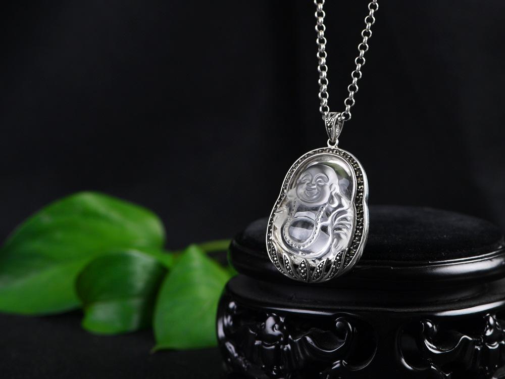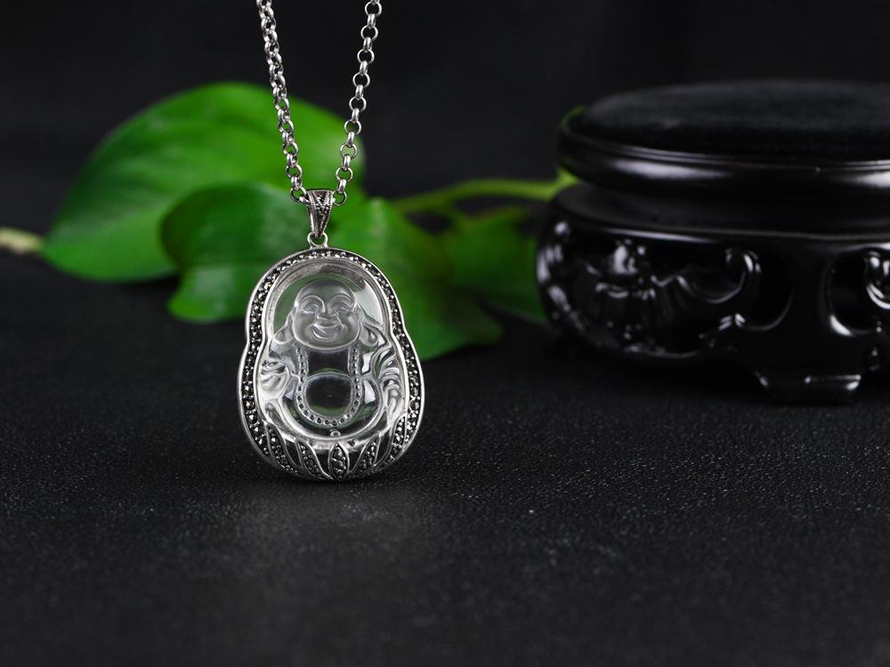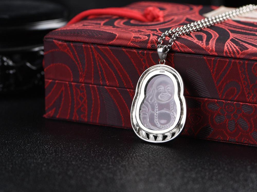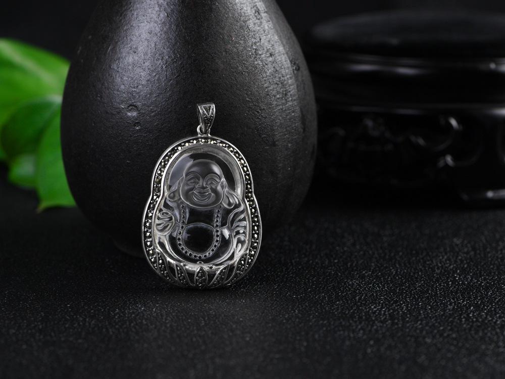 Colgante de plata tailandesa vintage de Golden Deer King, venta al por mayor, colgante de plata S925, colgante de Maitreya de cristal blanco, colgante de Buda para mujer