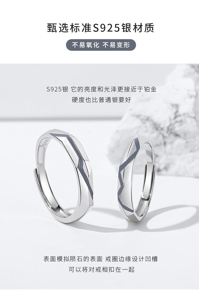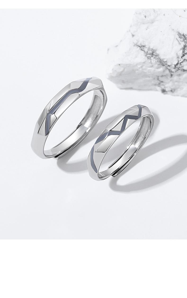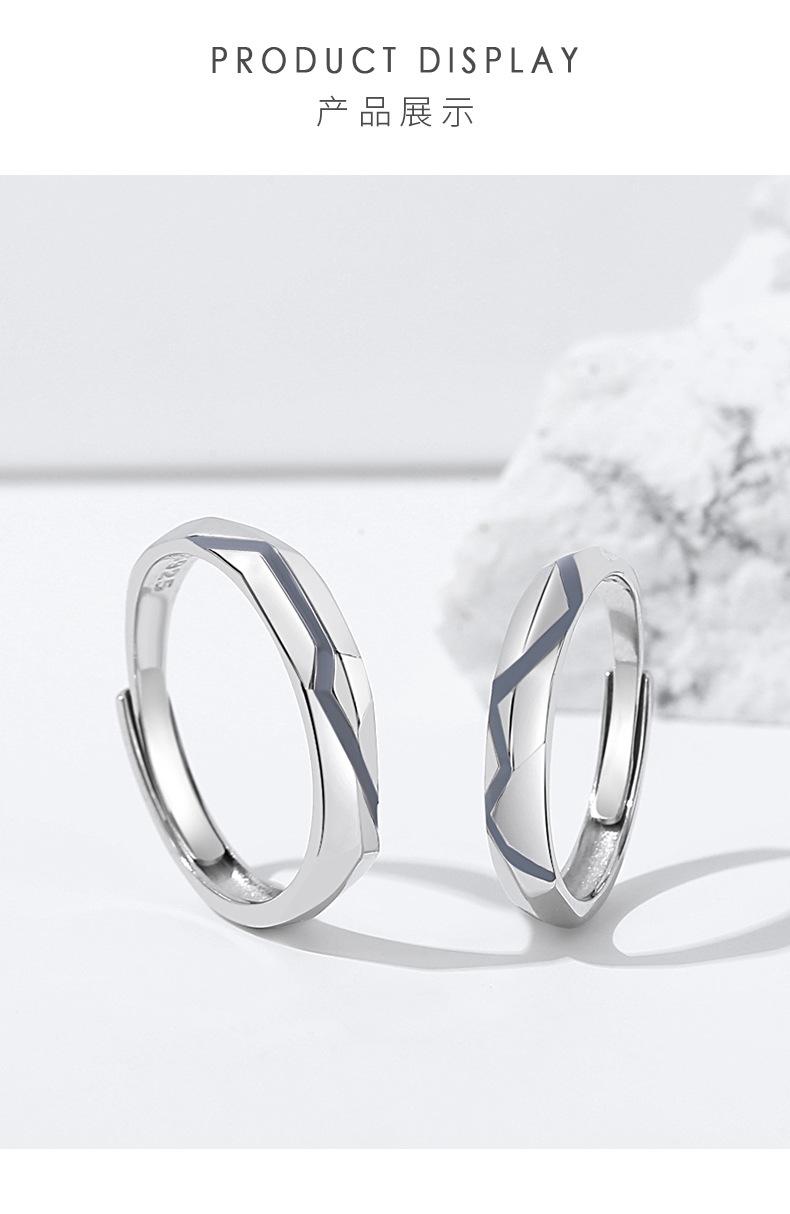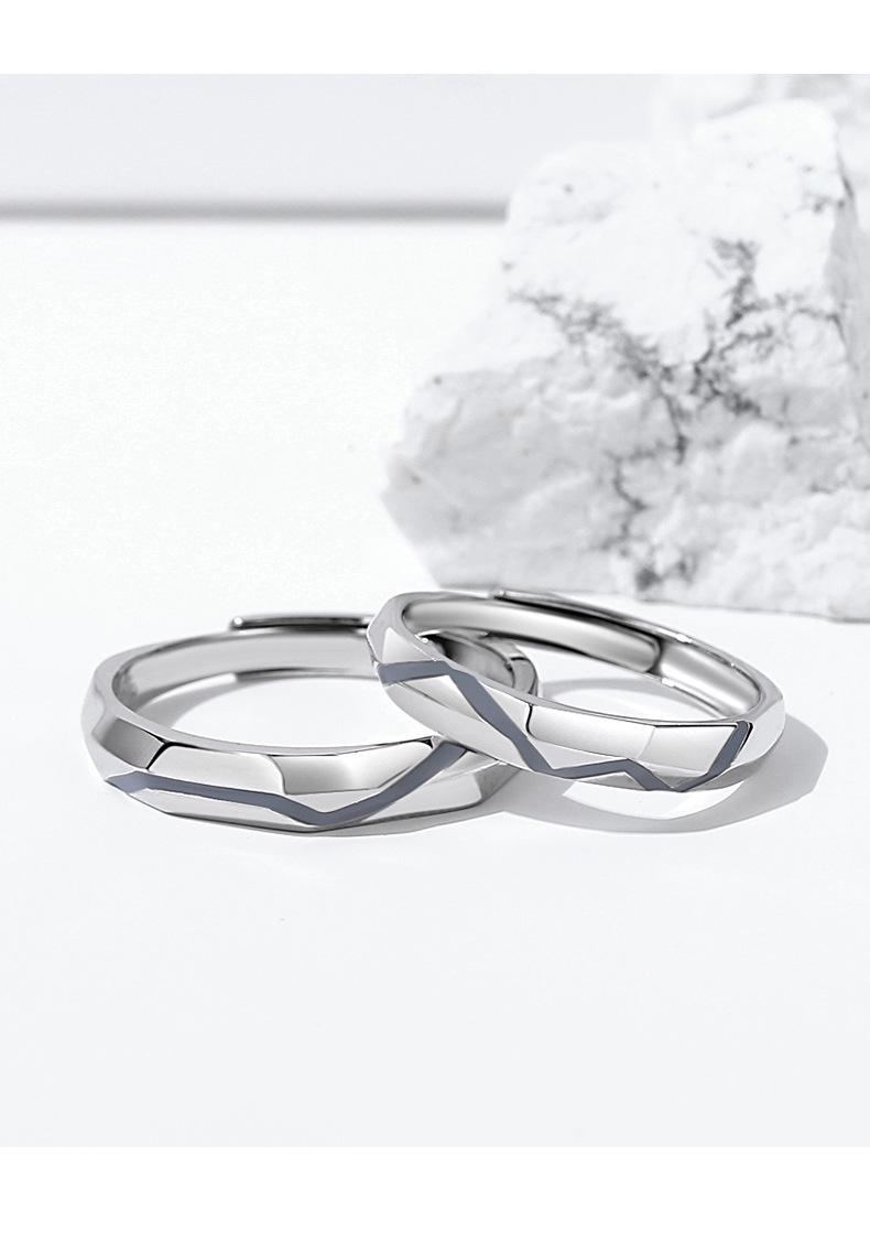Anillo de pareja original de Hill en plata de ley con diamantes y apertura irregular, diseño de nicho simple.