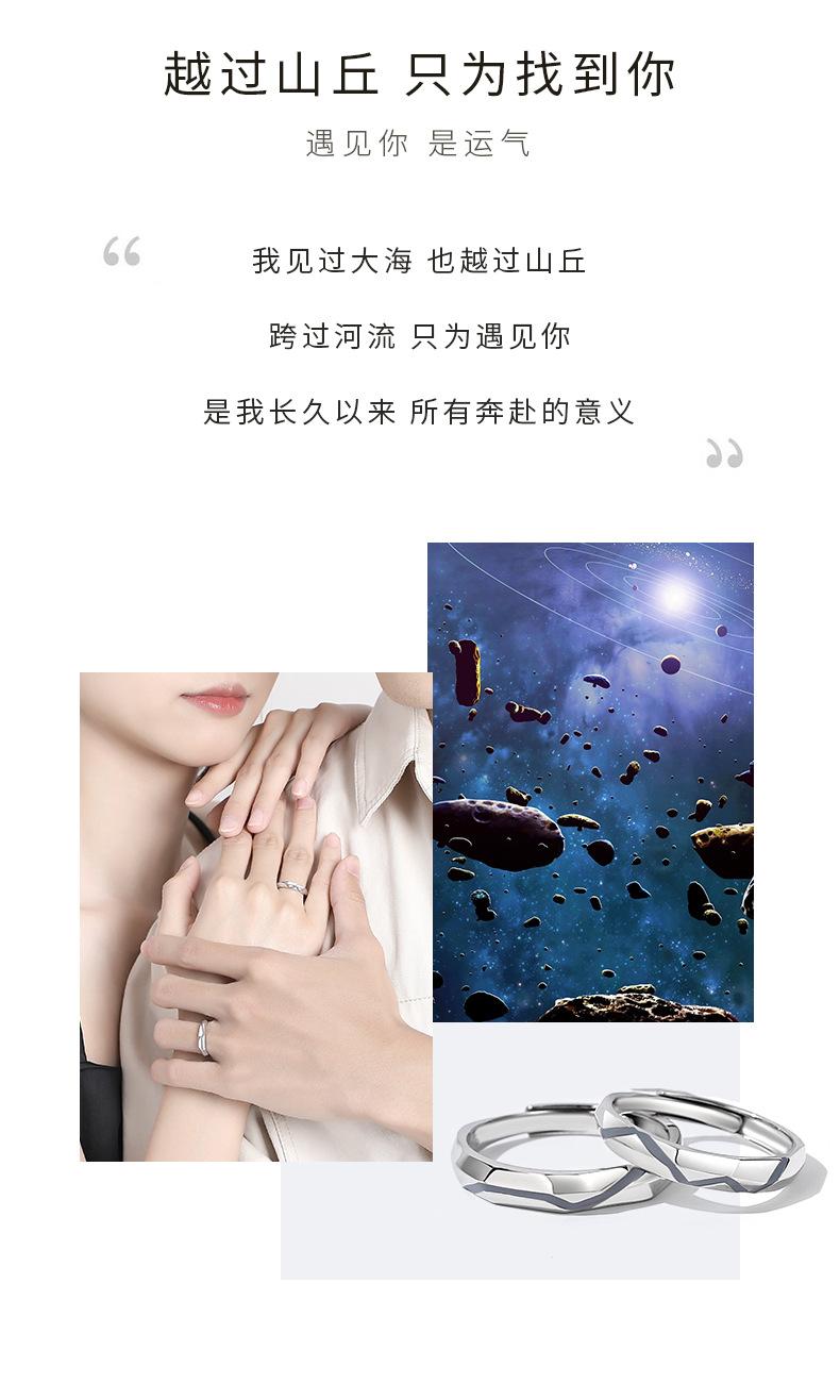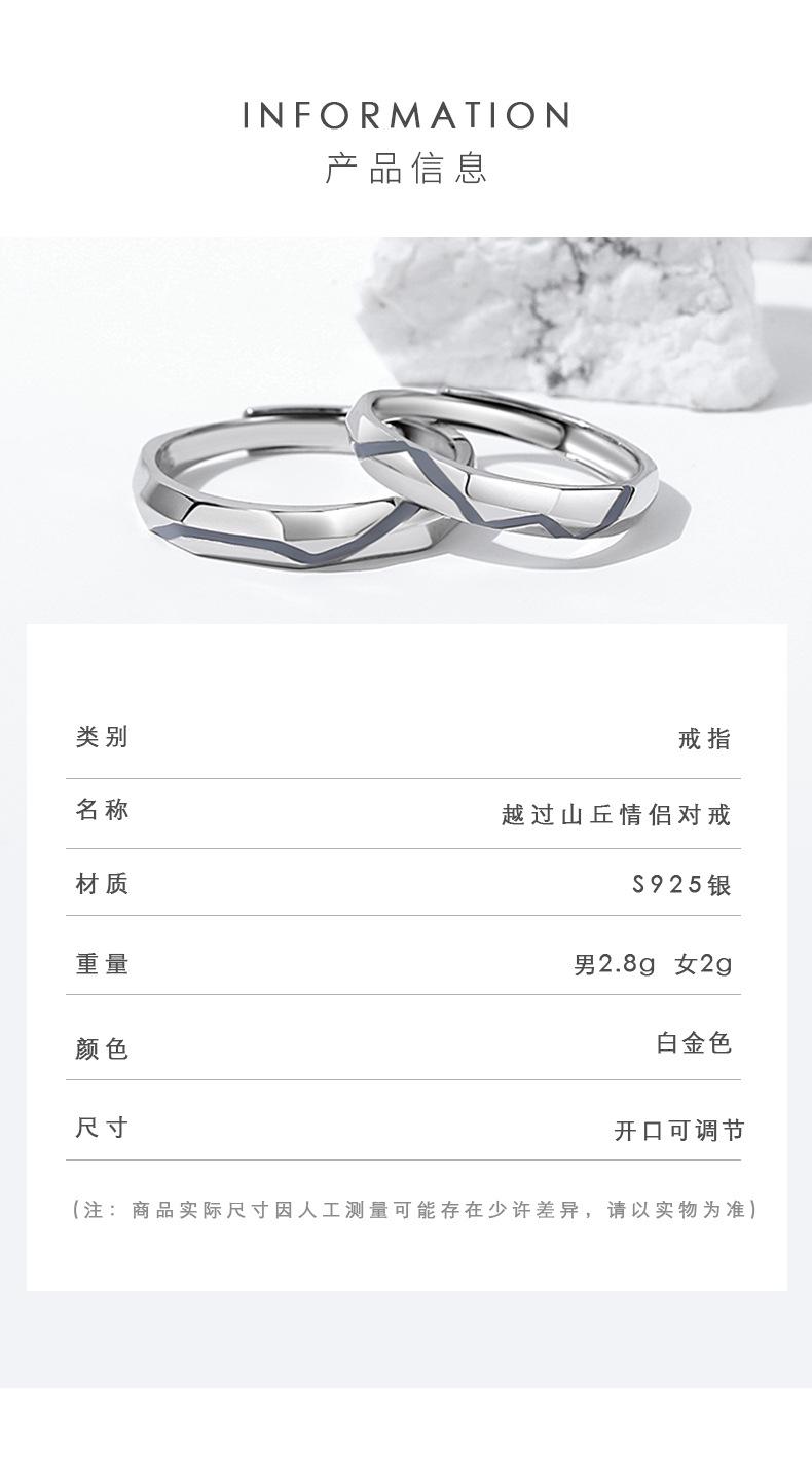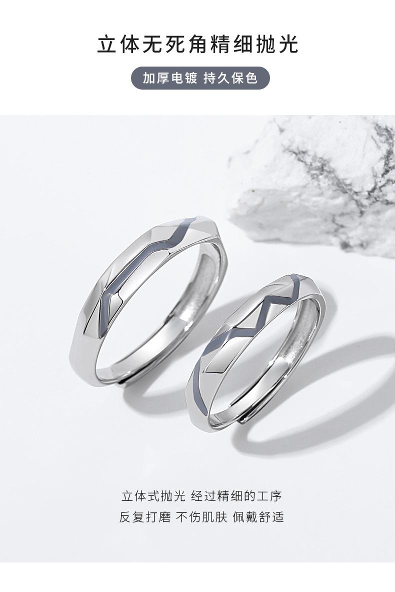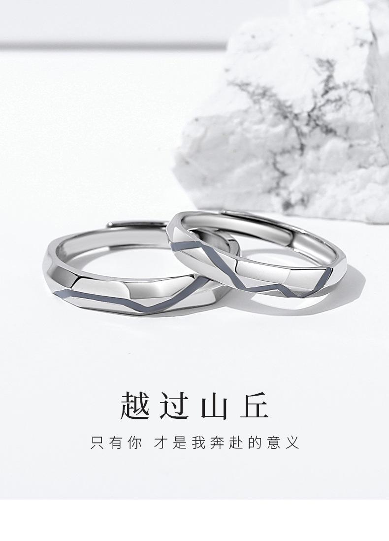 Anillo de pareja original de Hill en plata de ley con diamantes y apertura irregular, diseño de nicho simple.