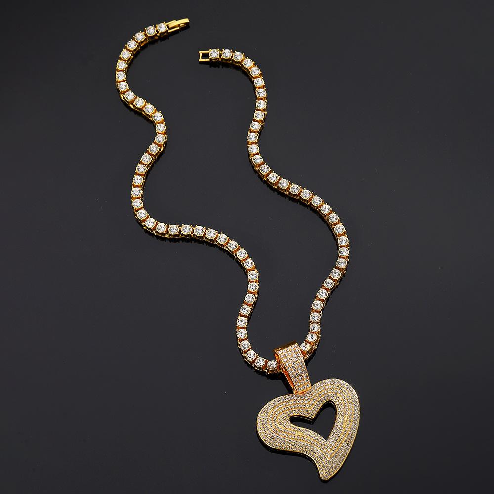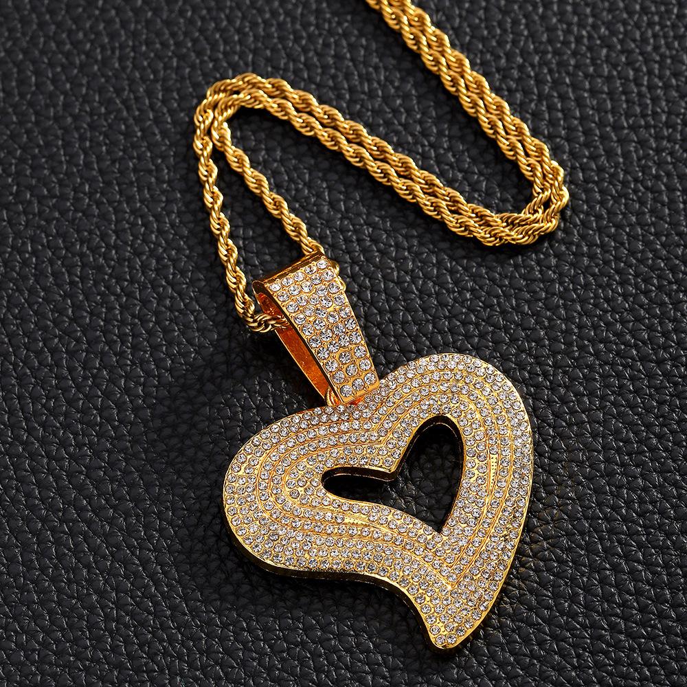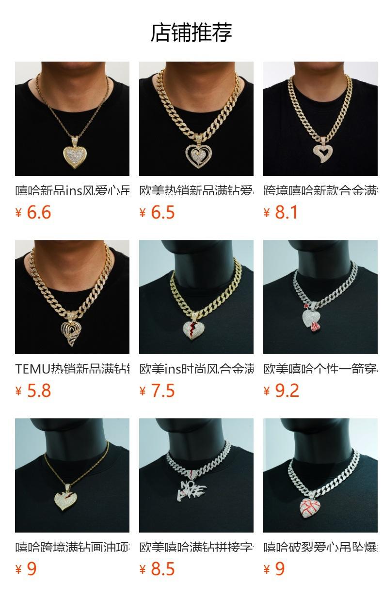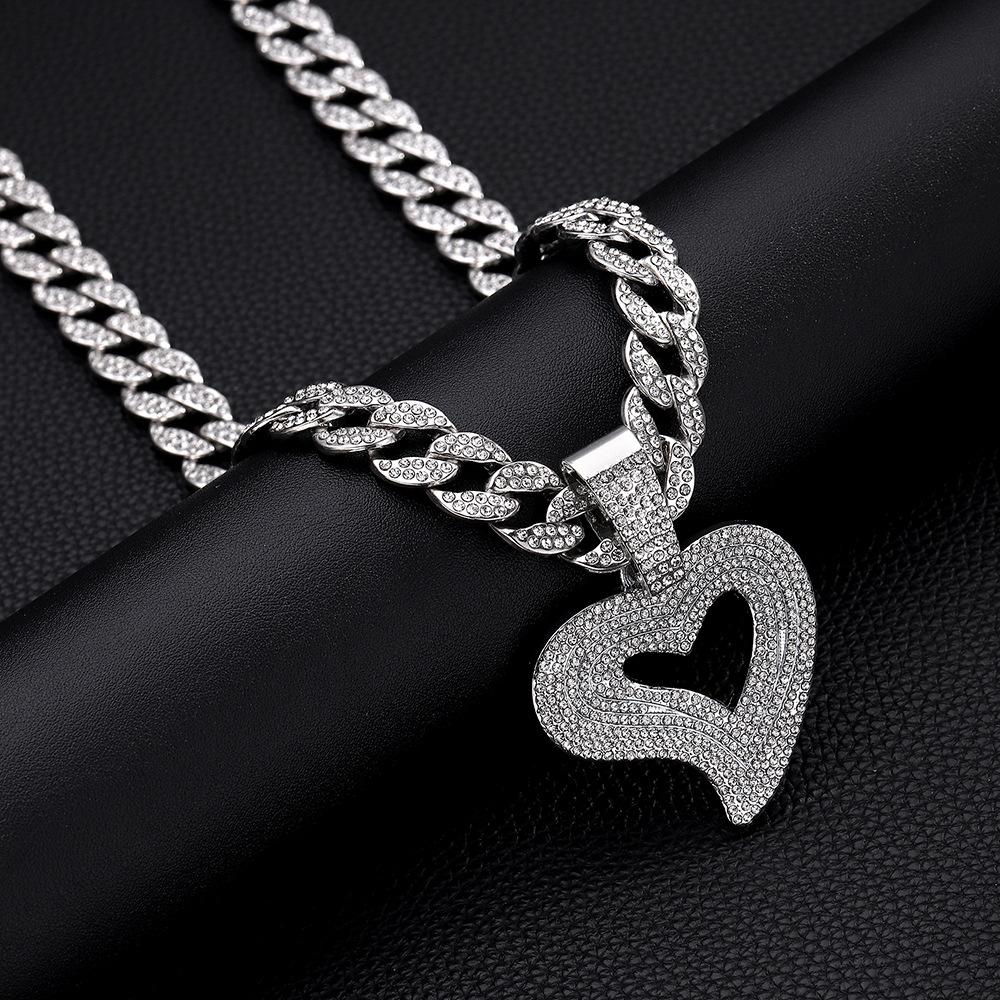 Colgante de corazón de melocotón con forma de corazón de aleación de diamantes de imitación de estilo hip hop transfronterizo, collar cubano, joyería para joyería