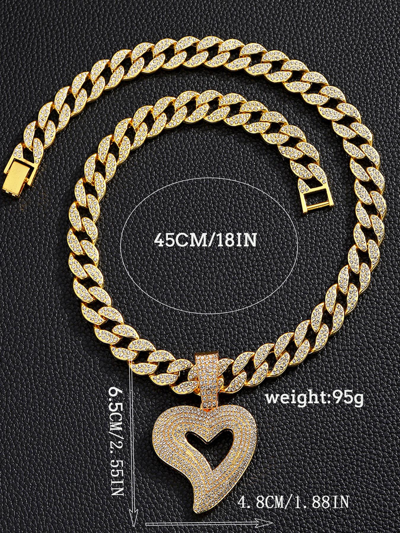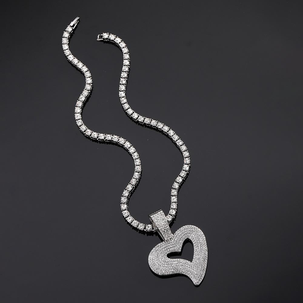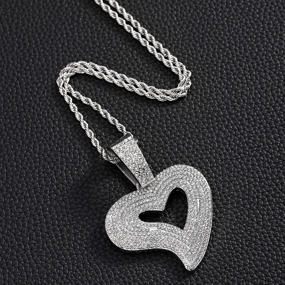 Colgante de corazón de melocotón con forma de corazón de aleación de diamantes de imitación de estilo hip hop transfronterizo, collar cubano, joyería para joyería