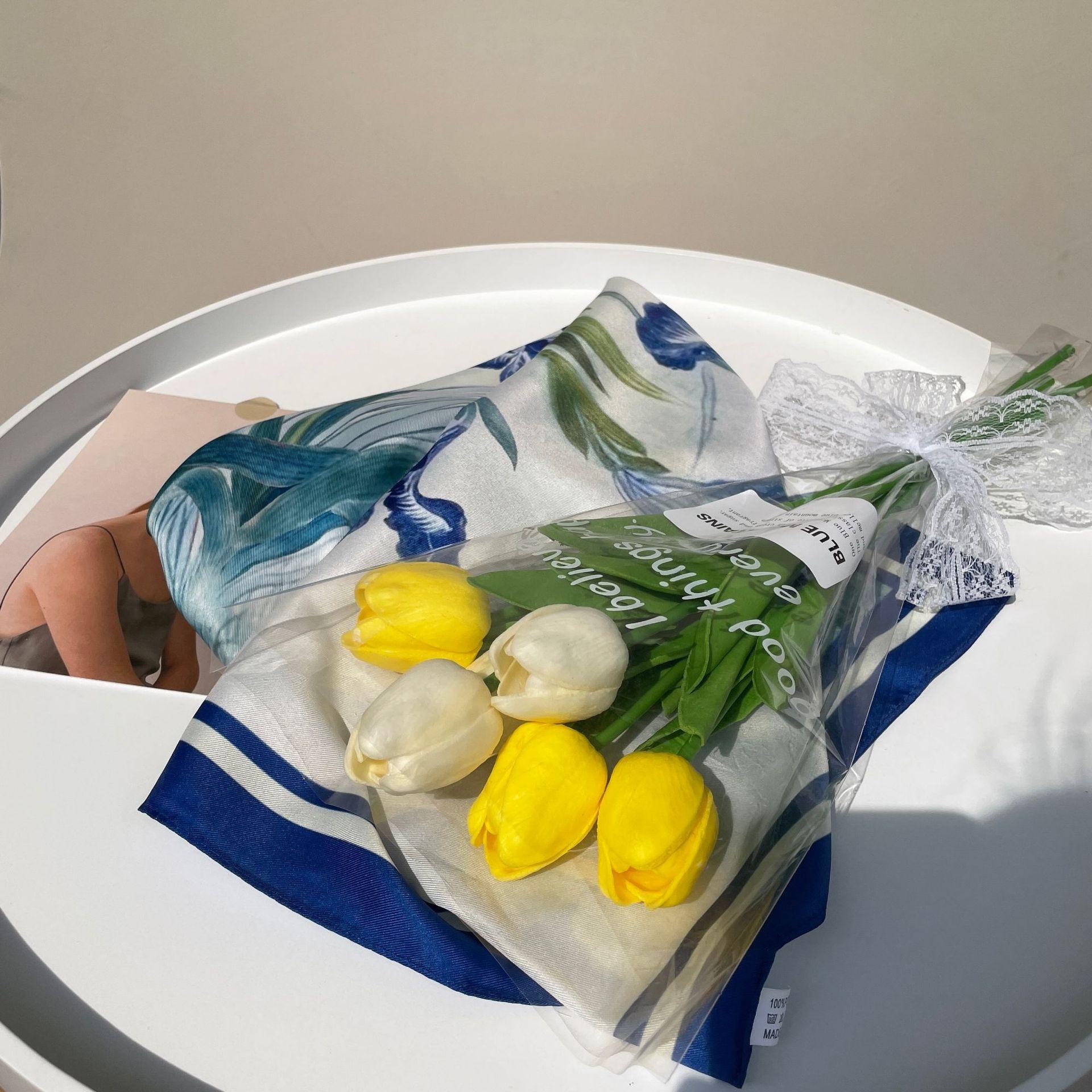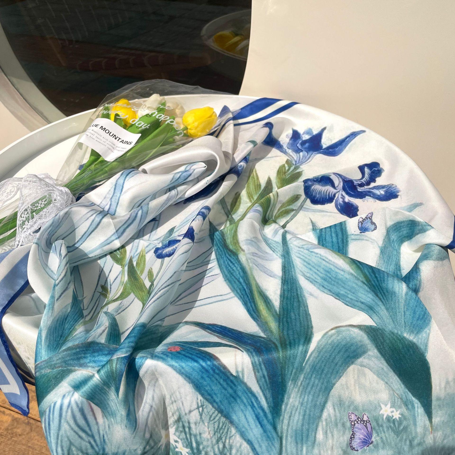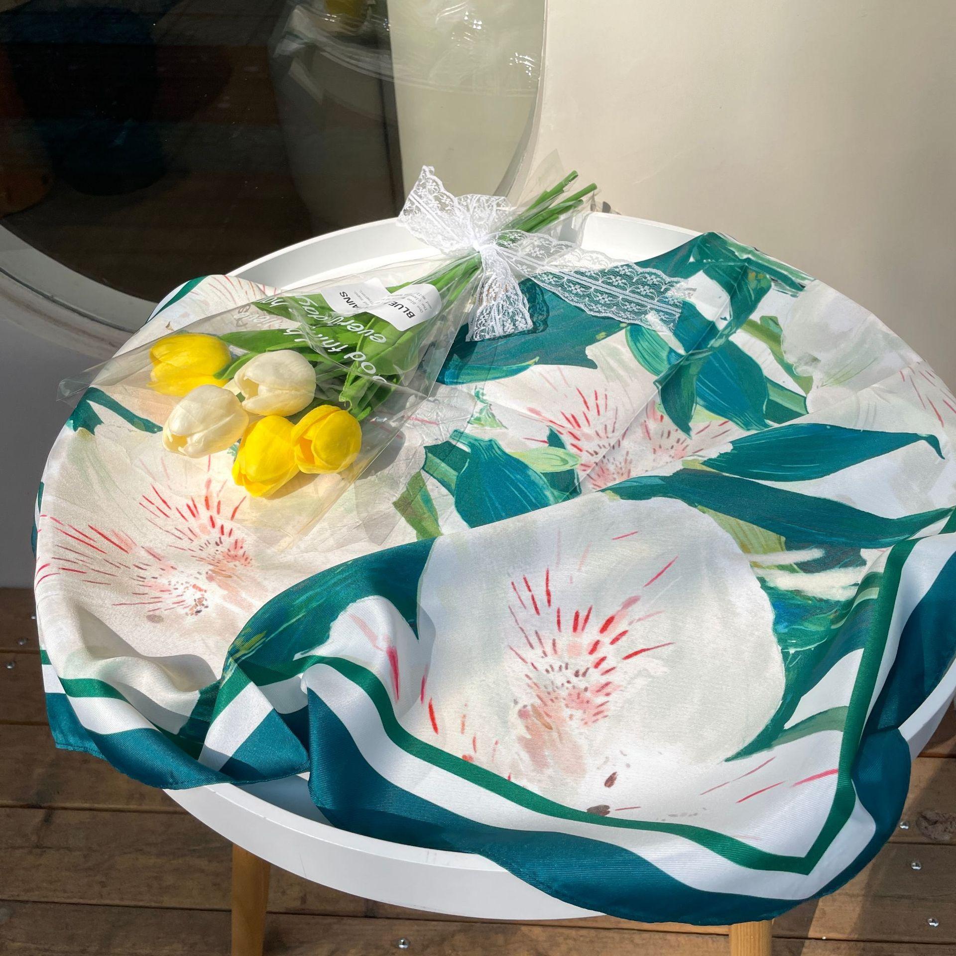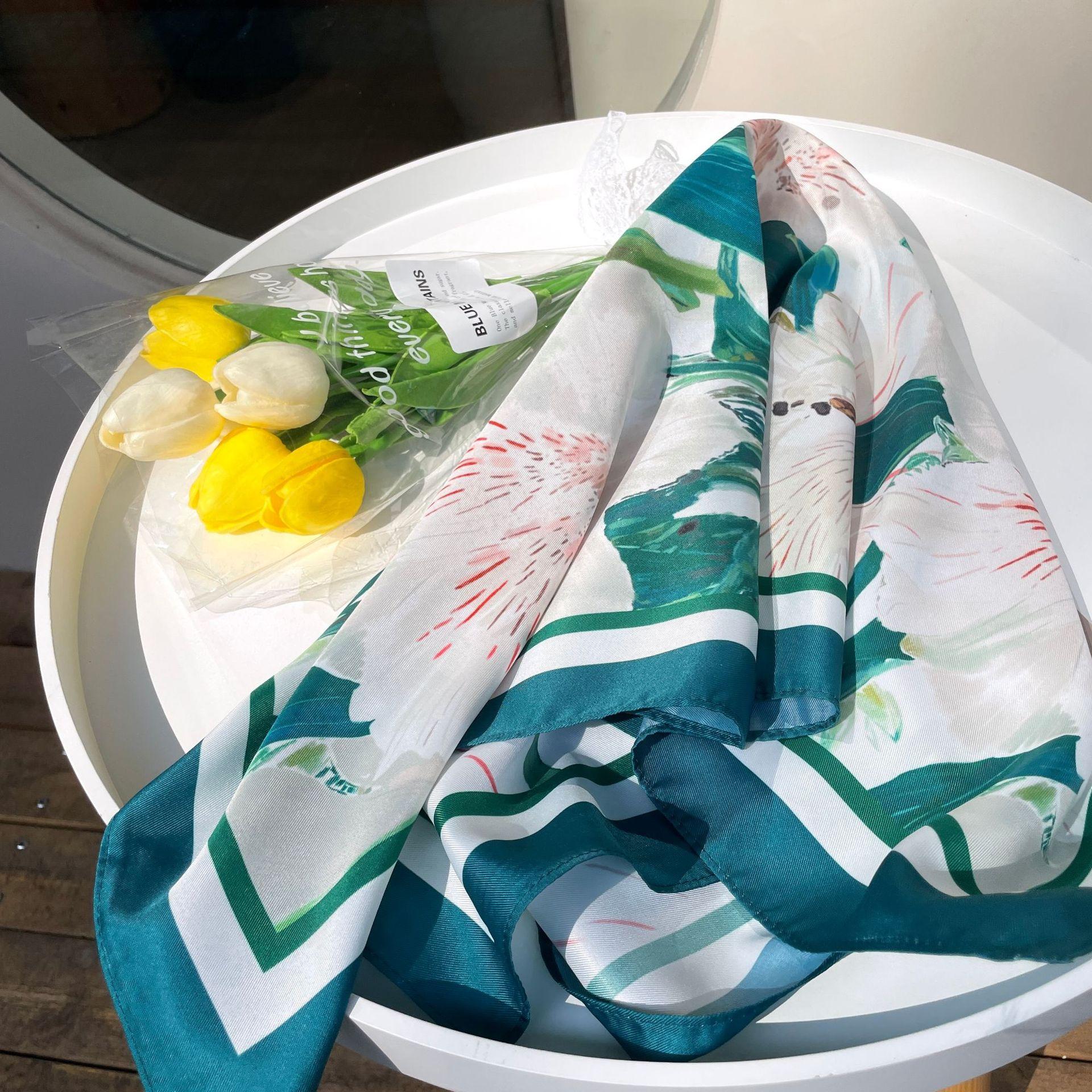 ¡Diseño original Primavera ver! Impresión Digital Diseño Nicho Flores Pintadas a Mano Primavera y Otoño Fino 70 Pañuelo Cuadrado Mediano Bufanda para Mujer