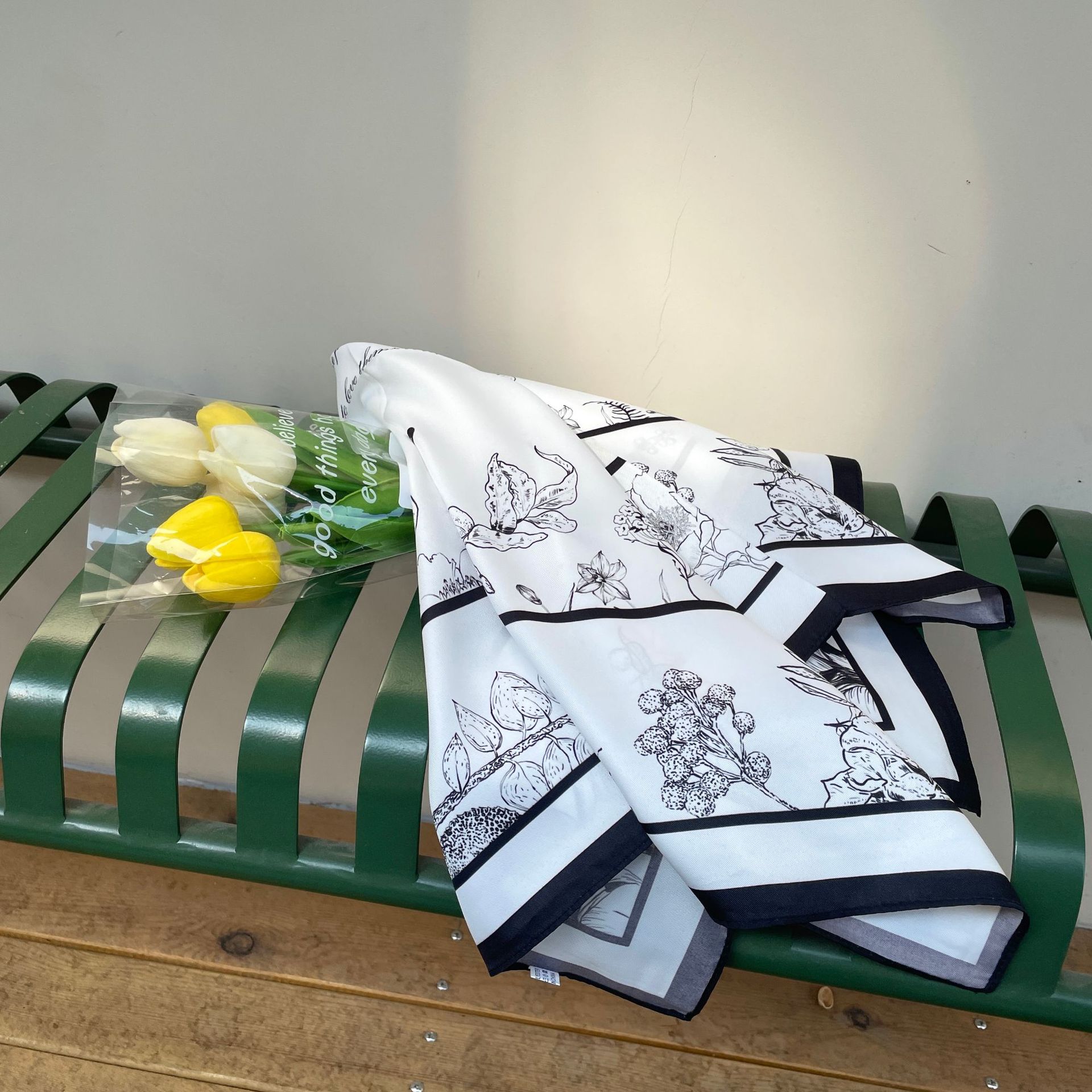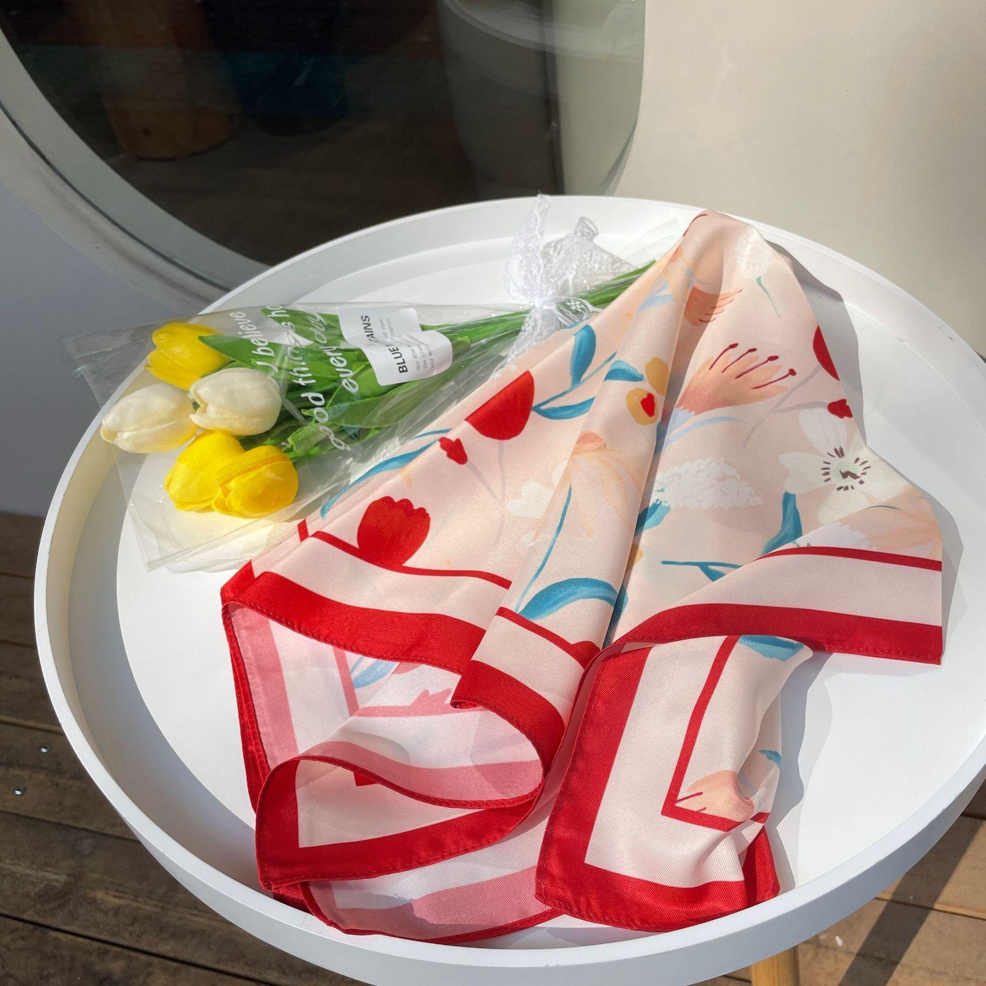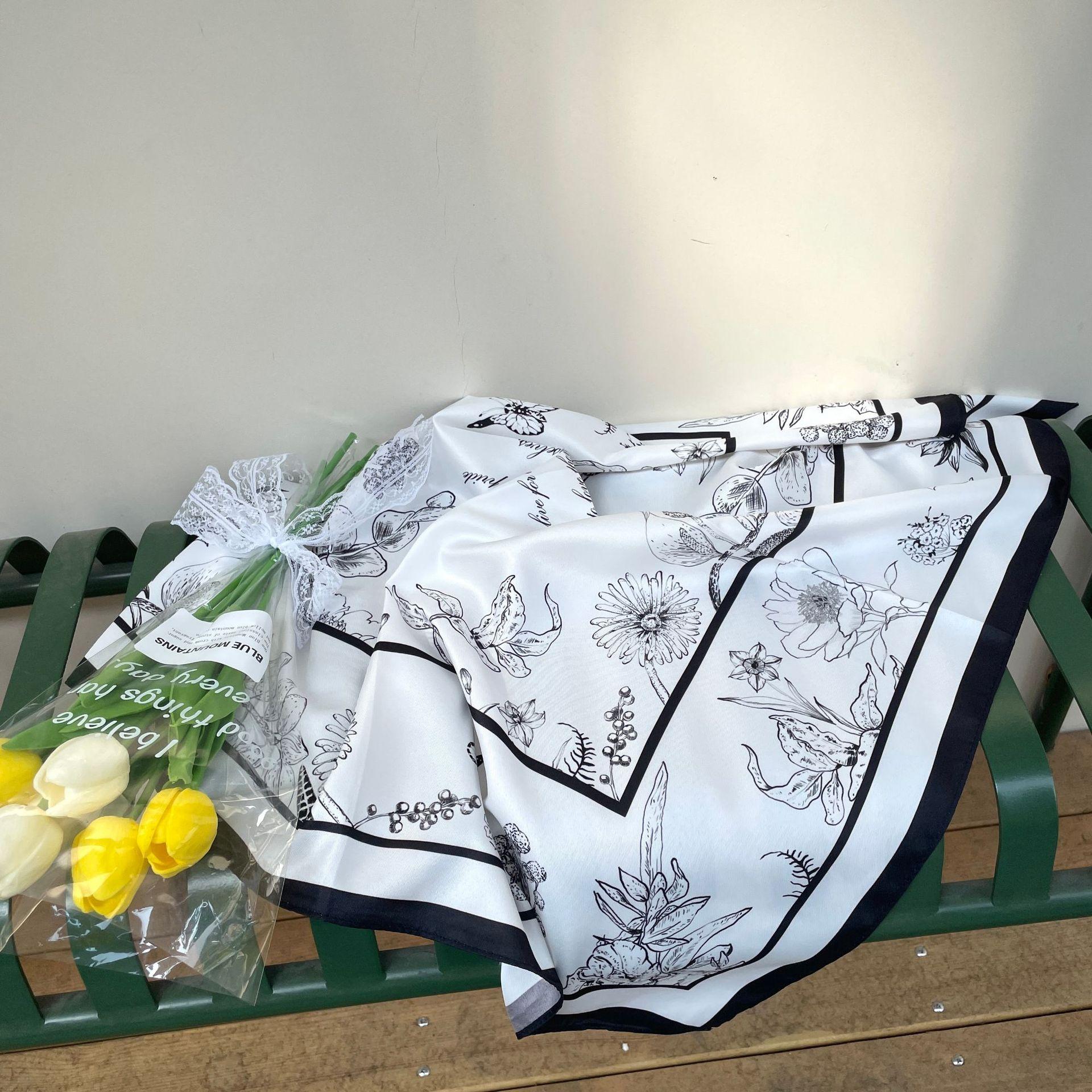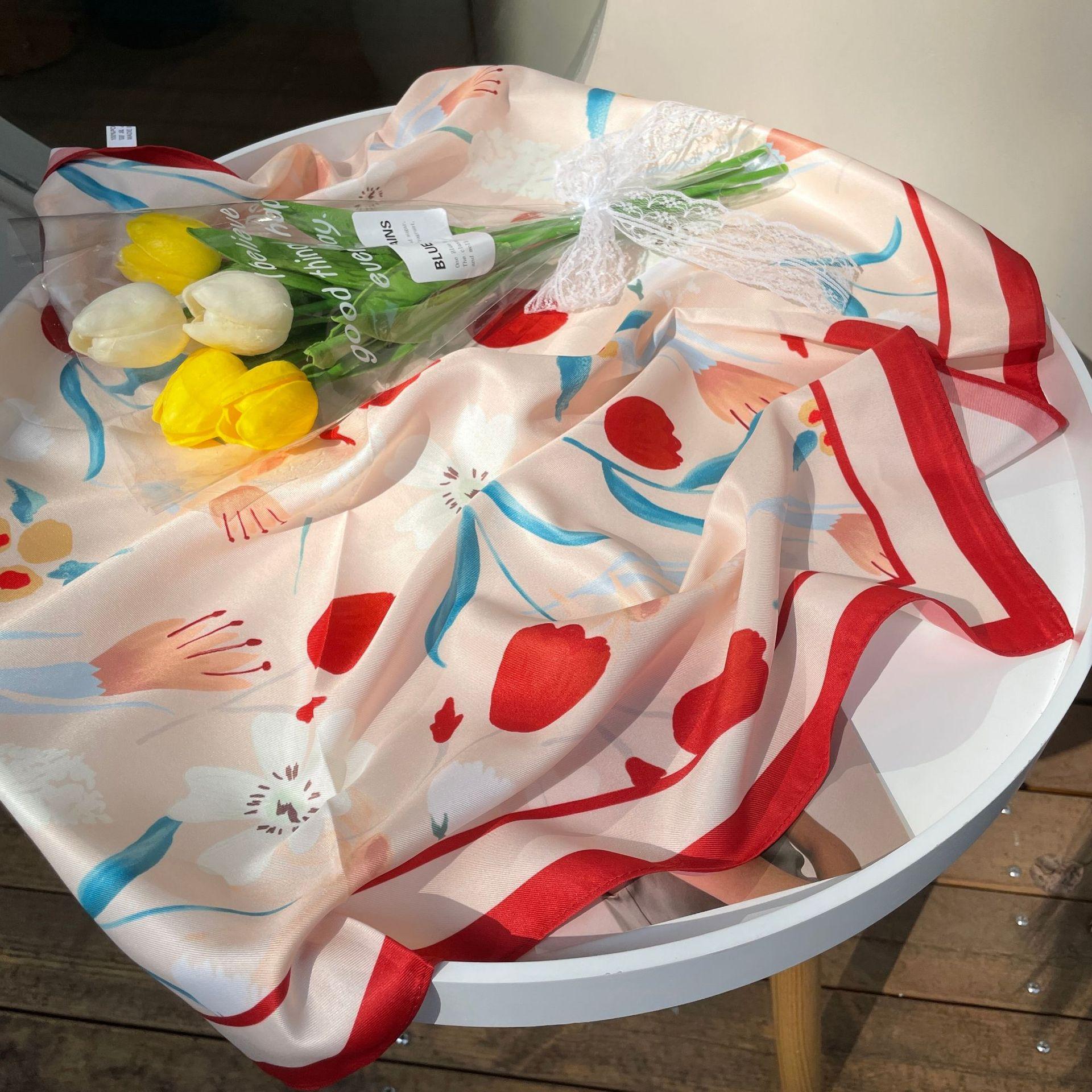 ¡Diseño original Primavera ver! Impresión Digital Diseño Nicho Flores Pintadas a Mano Primavera y Otoño Fino 70 Pañuelo Cuadrado Mediano Bufanda para Mujer