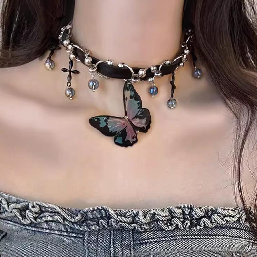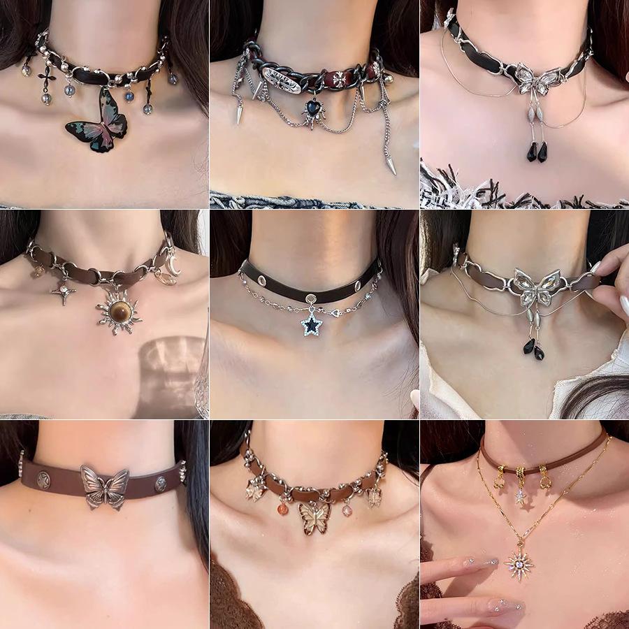 1# double sunflower necklace, 2# brown butterfly necklace, 3# Vintage Butterfly Leather Collar, 4# brown butte...