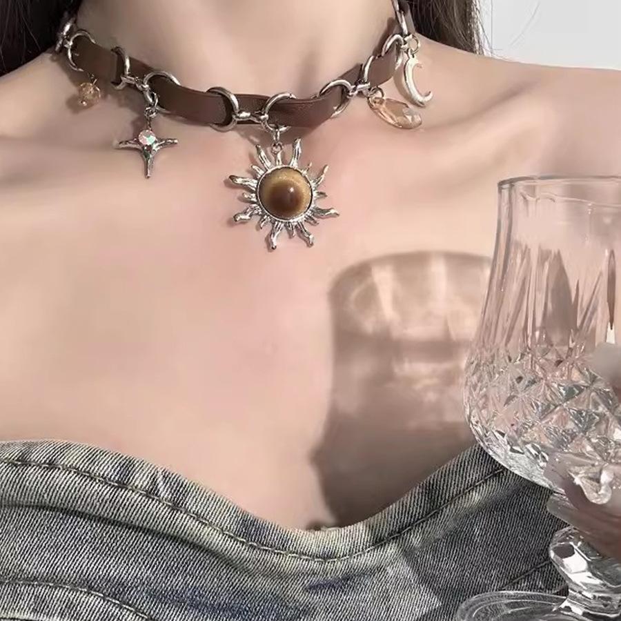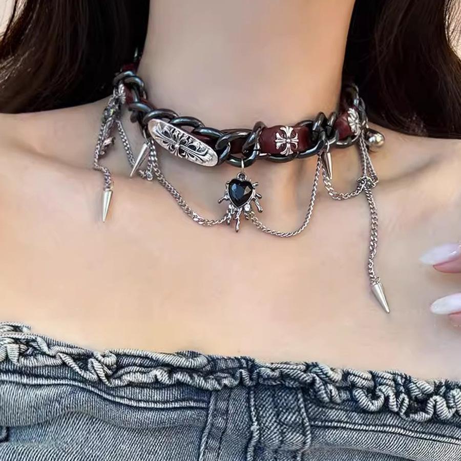 Nuevo 2024 Estilo Sweet Cool Spice Girl Gargantilla de Cuero de Industria Pesada Cadena para el Cuello Collar Retro de Clavícula de Alta Gama
