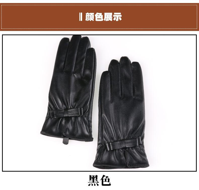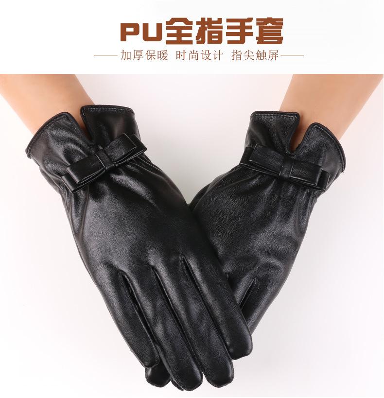 Nuevos guantes de cuero PU para mujer de otoño e invierno con lazo para pantalla táctil, cálidos para ciclismo y guantes de cuero frío a prueba de viento y terciopelo |