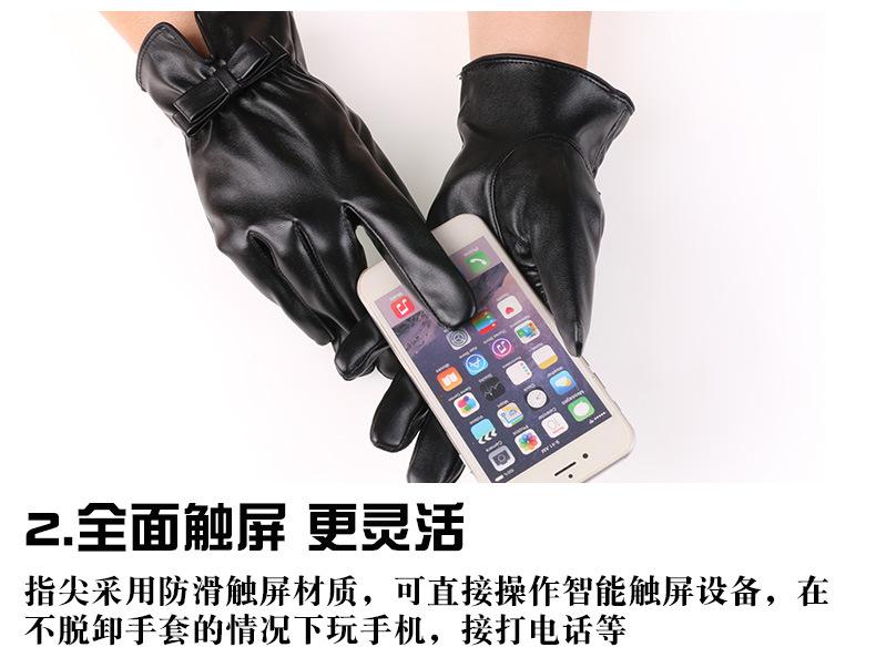 Nuevos guantes de cuero con pantalla táctil para mujer, de otoño e invierno, con lazo de cuero PU y terciopelo, cálidos guantes de ciclismo con protección contra el frío para pantalla táctil. |