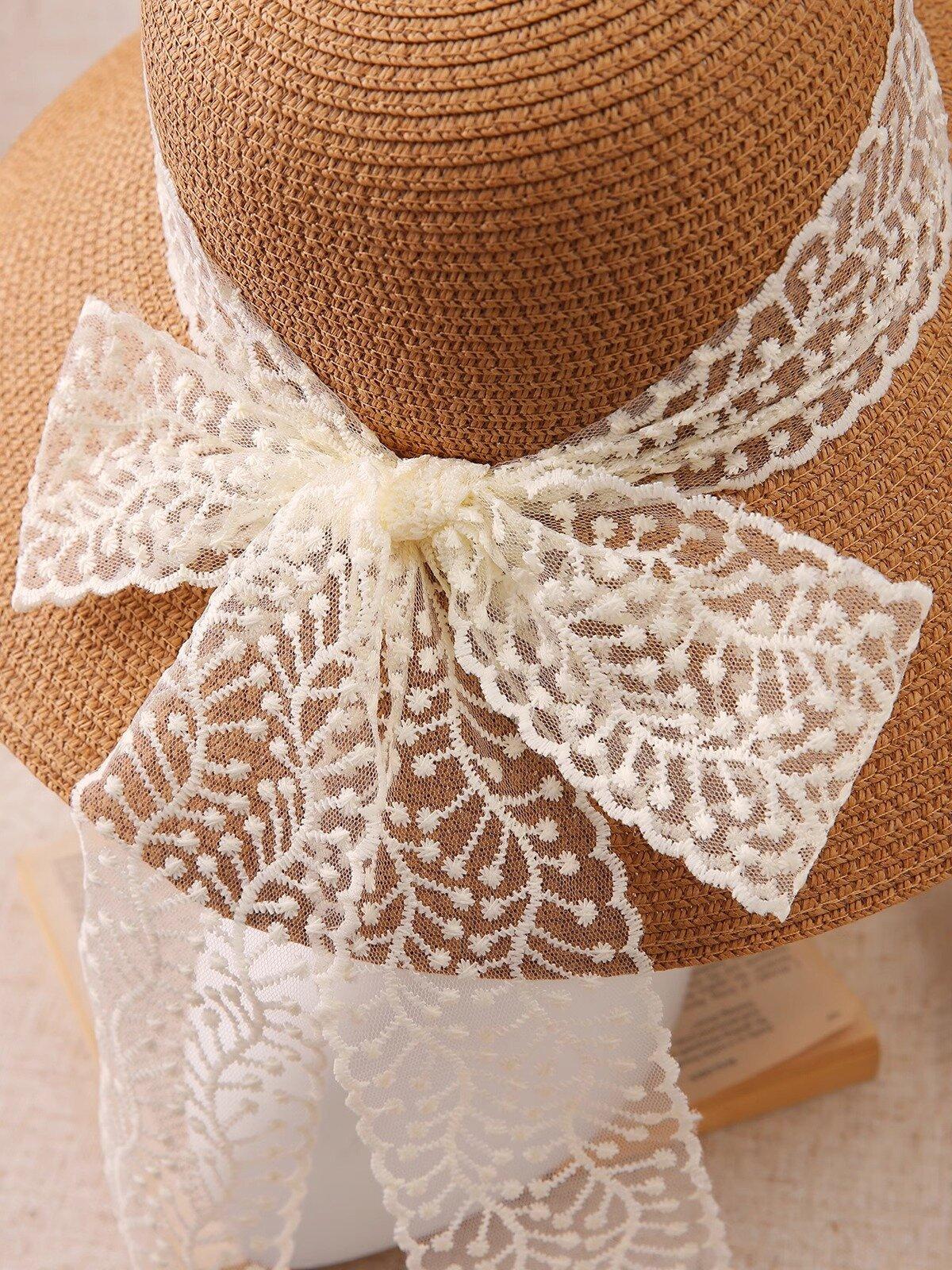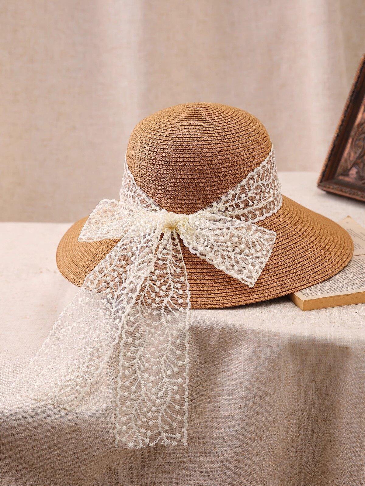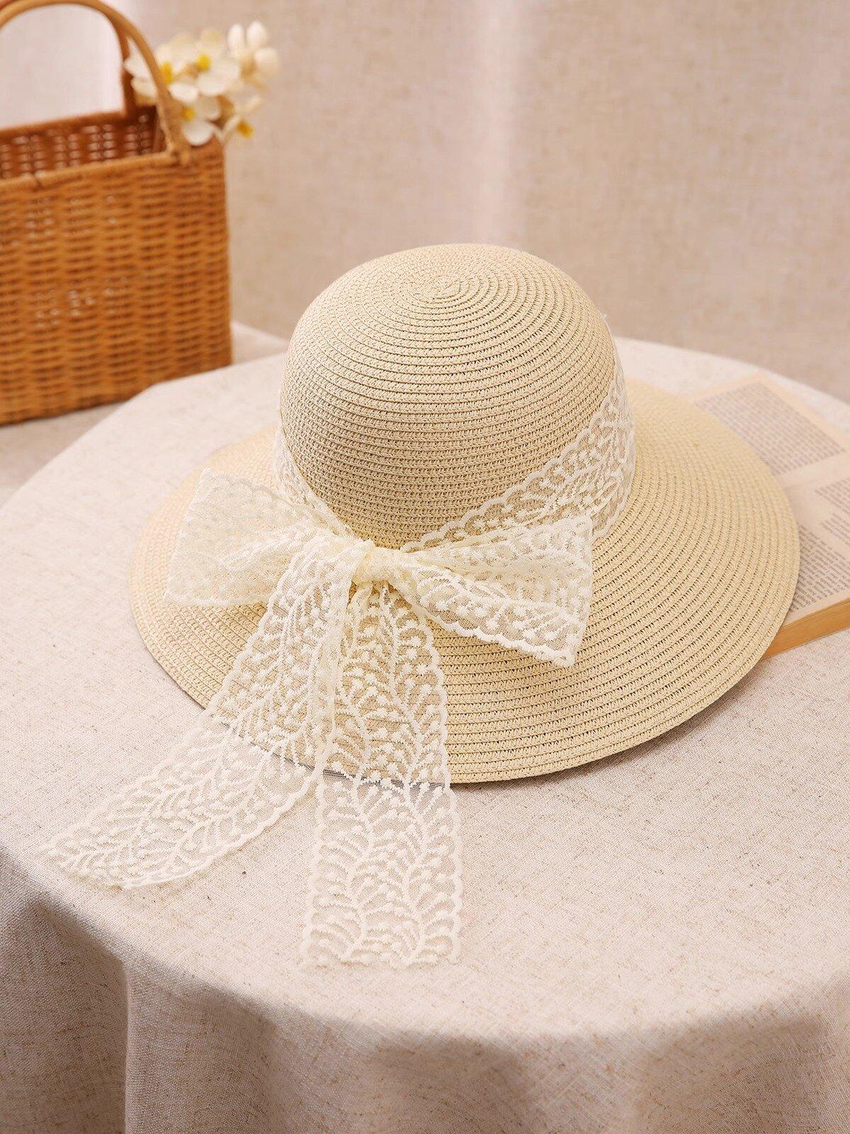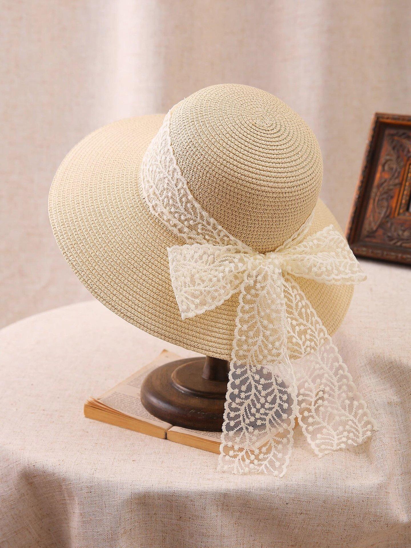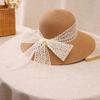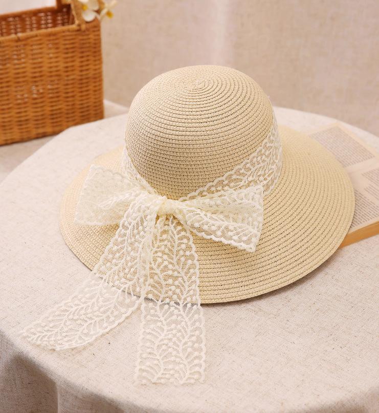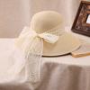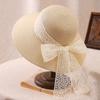 Sombrero de pescador de paja con lazo de encaje estilo coreano para mujer, sombrero de verano para viajes, protección solar, sombrero de playa, sombrero de paja