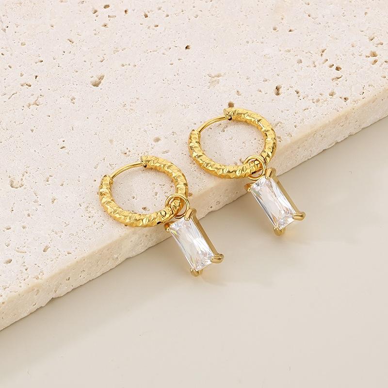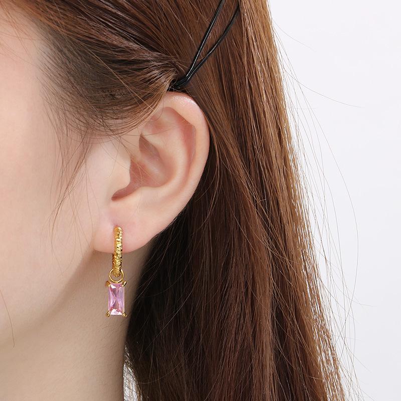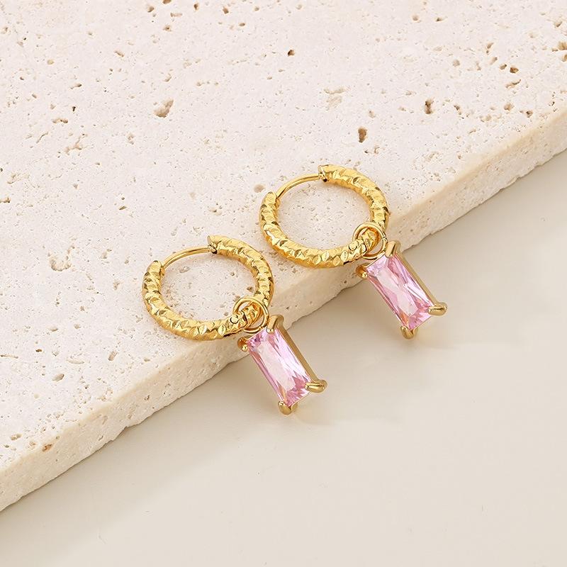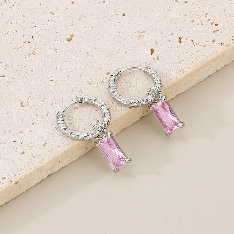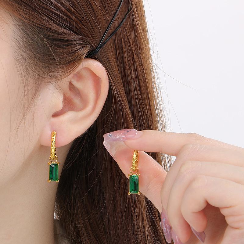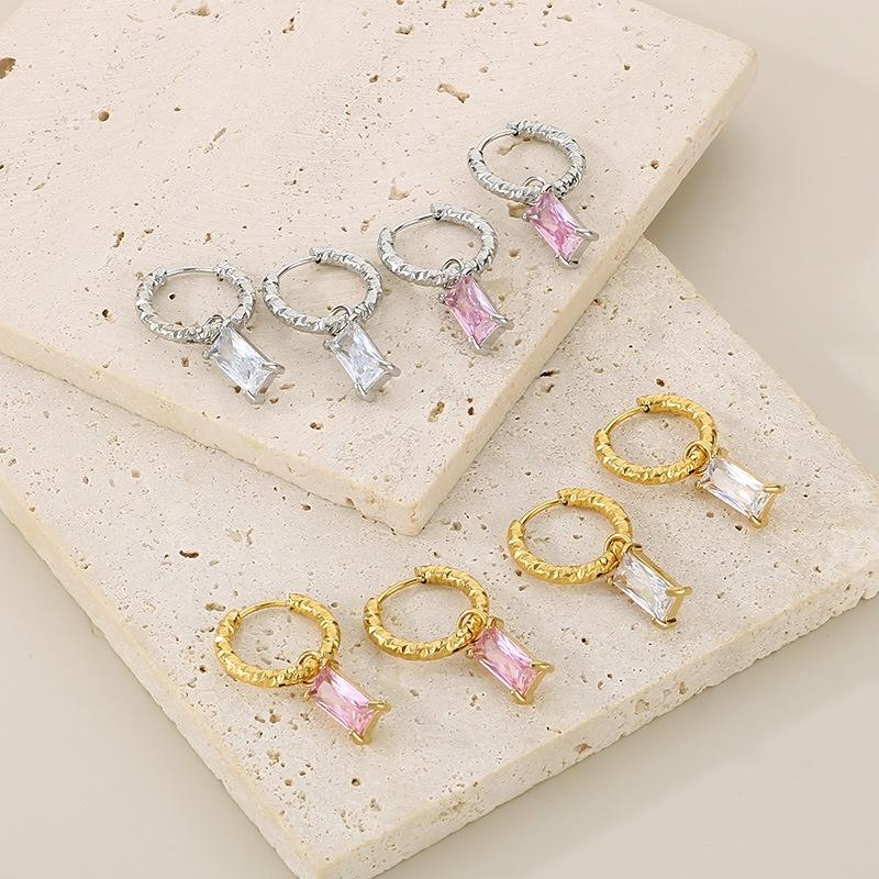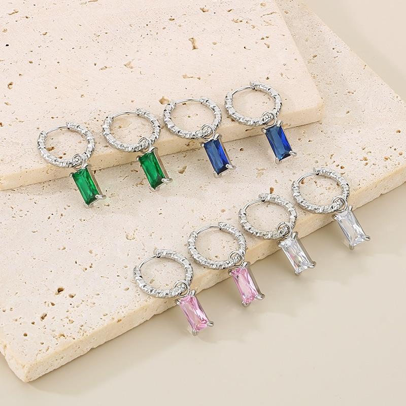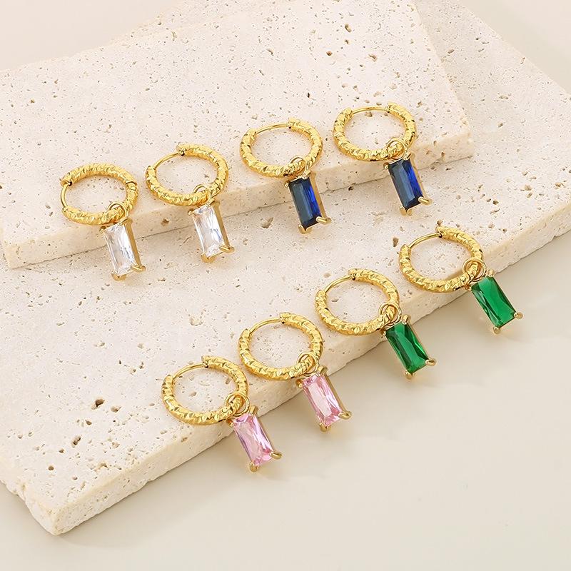 Pendientes de Amazon, suministro de comercio exterior transfronterizo, moda INS, borlas rectangulares de circonita, pendientes multicolores de acero de titanio al por mayor