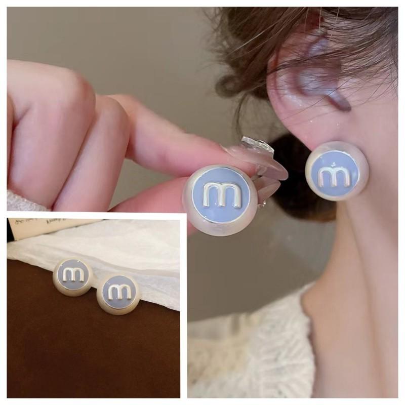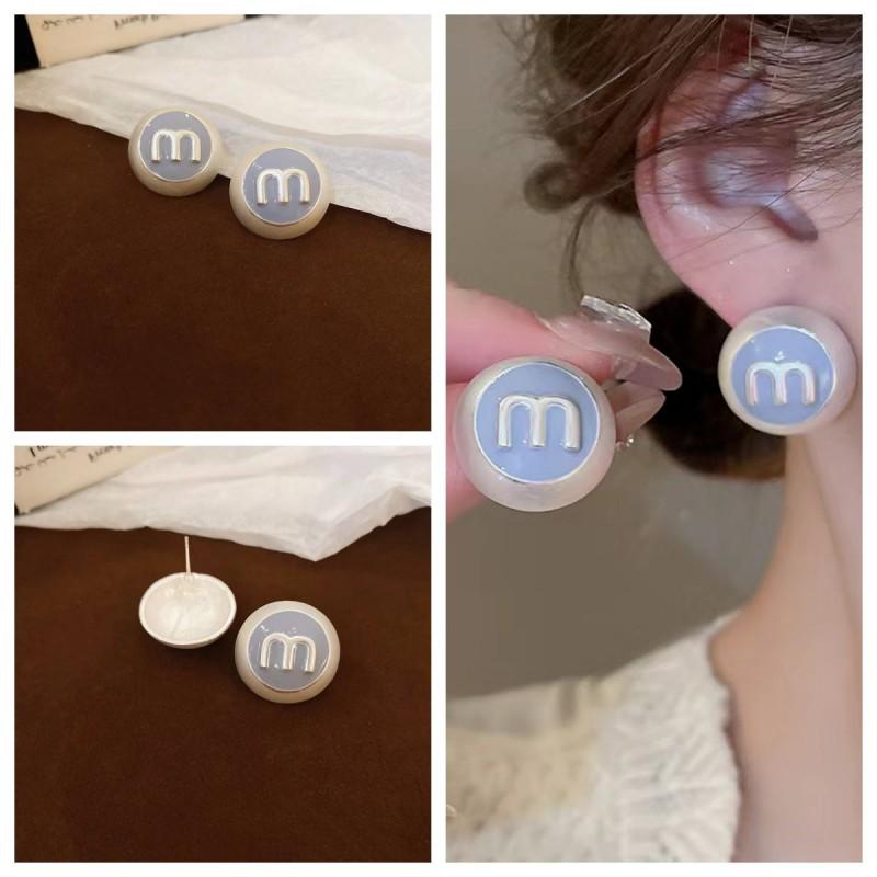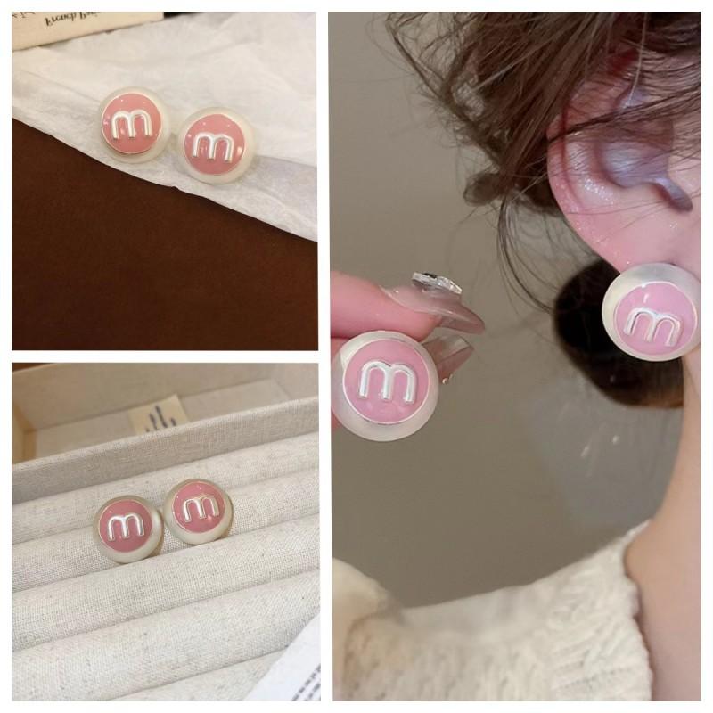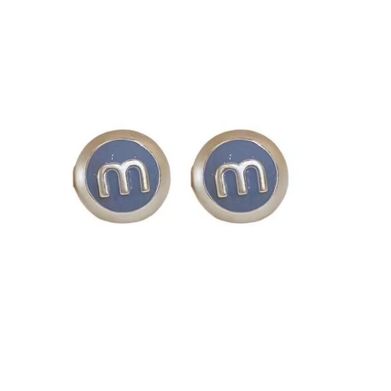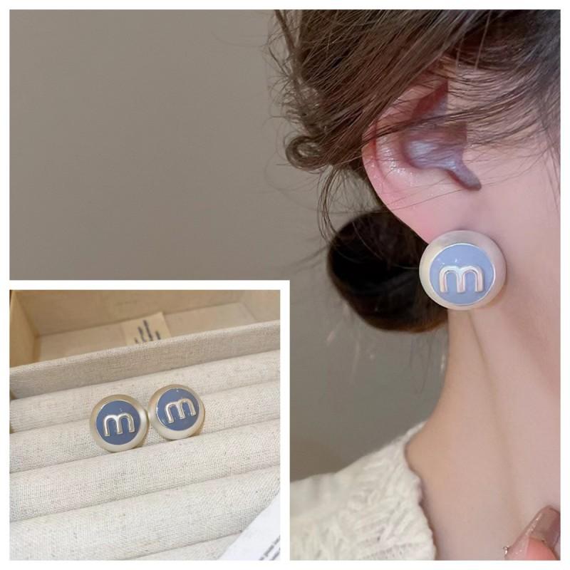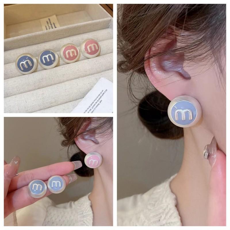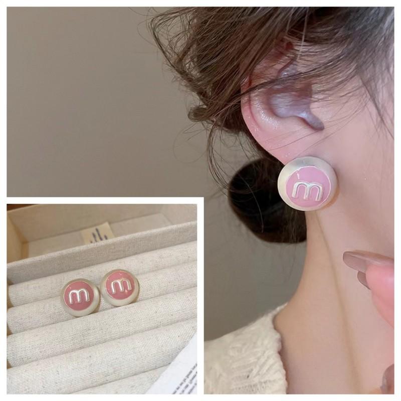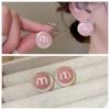 Pendientes de botón con letras redondas, elegantes, pequeños y personalizados, con esmalte de gota simple y de moda fresca para mujer