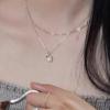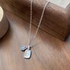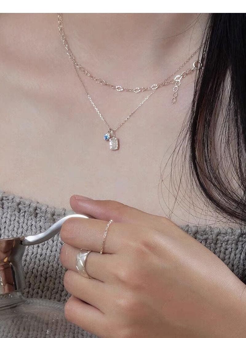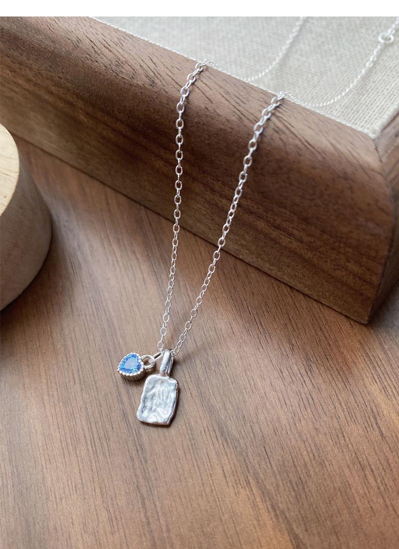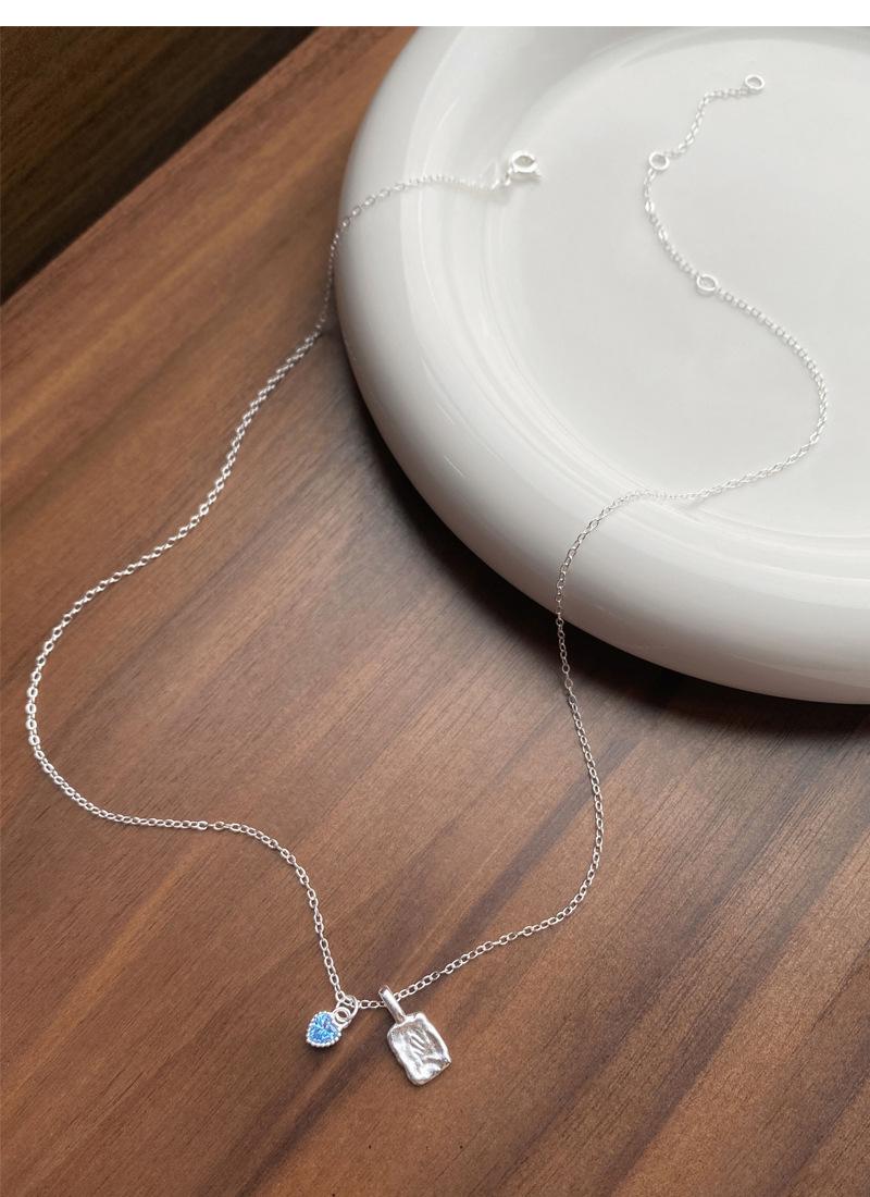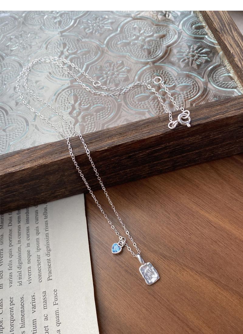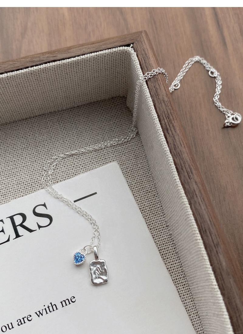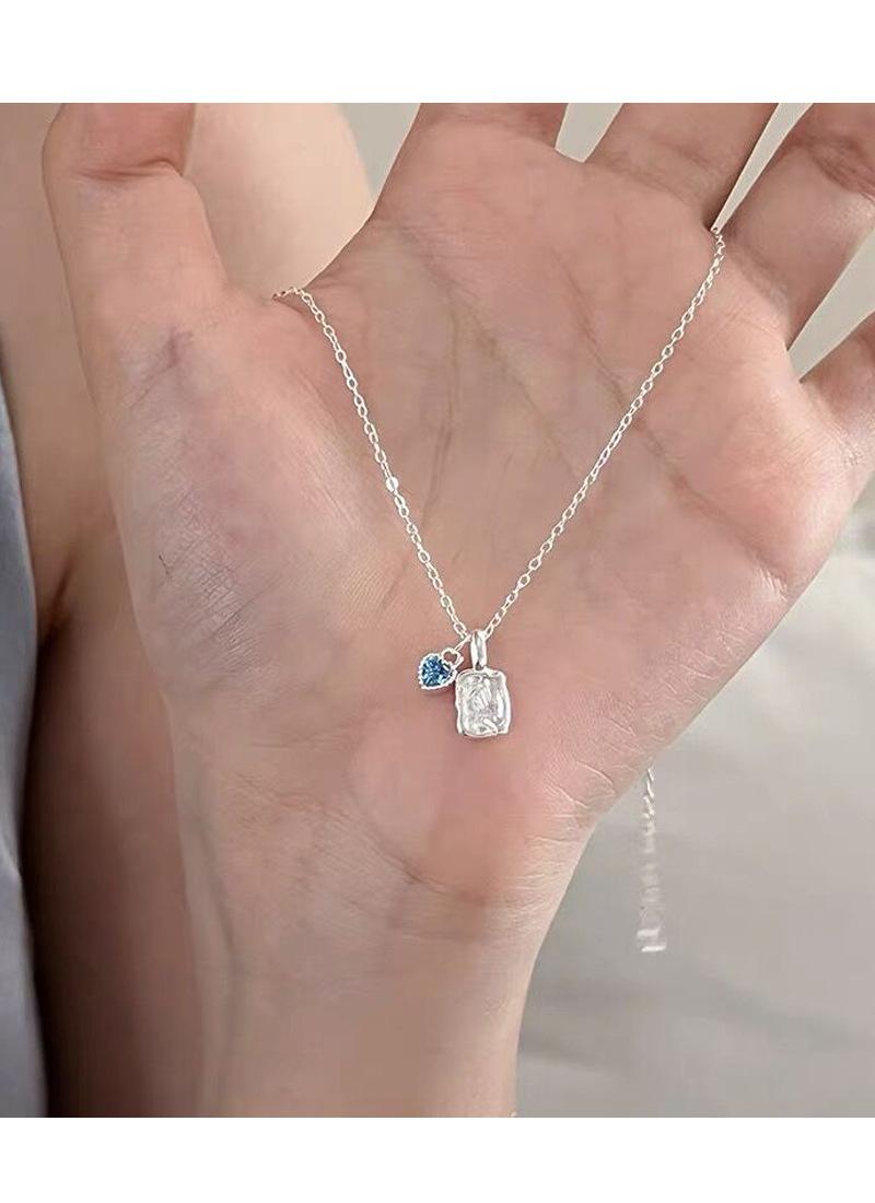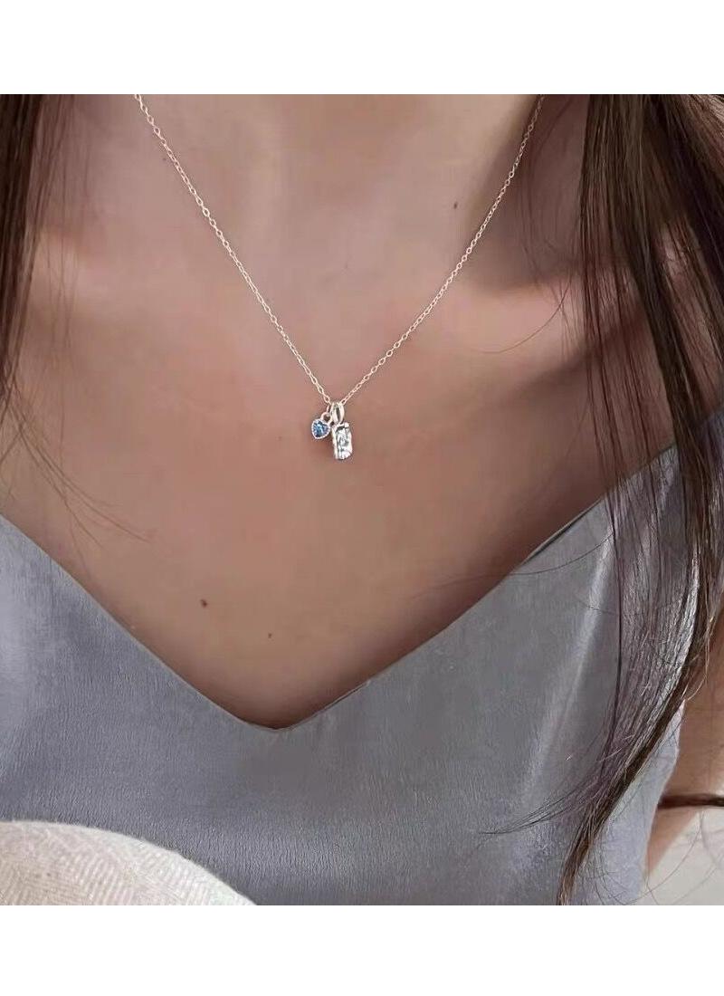 Collar de plata de ley S925 con nicho simple, textura irregular, cuadrado, circonita azul, cadena de clavícula para mujer.