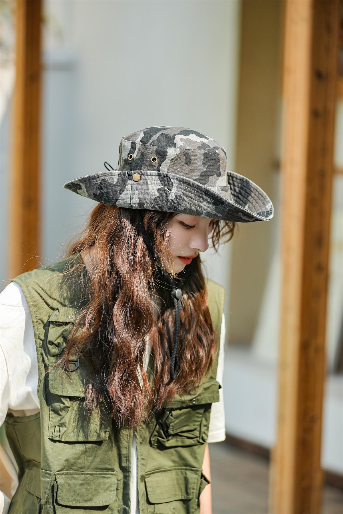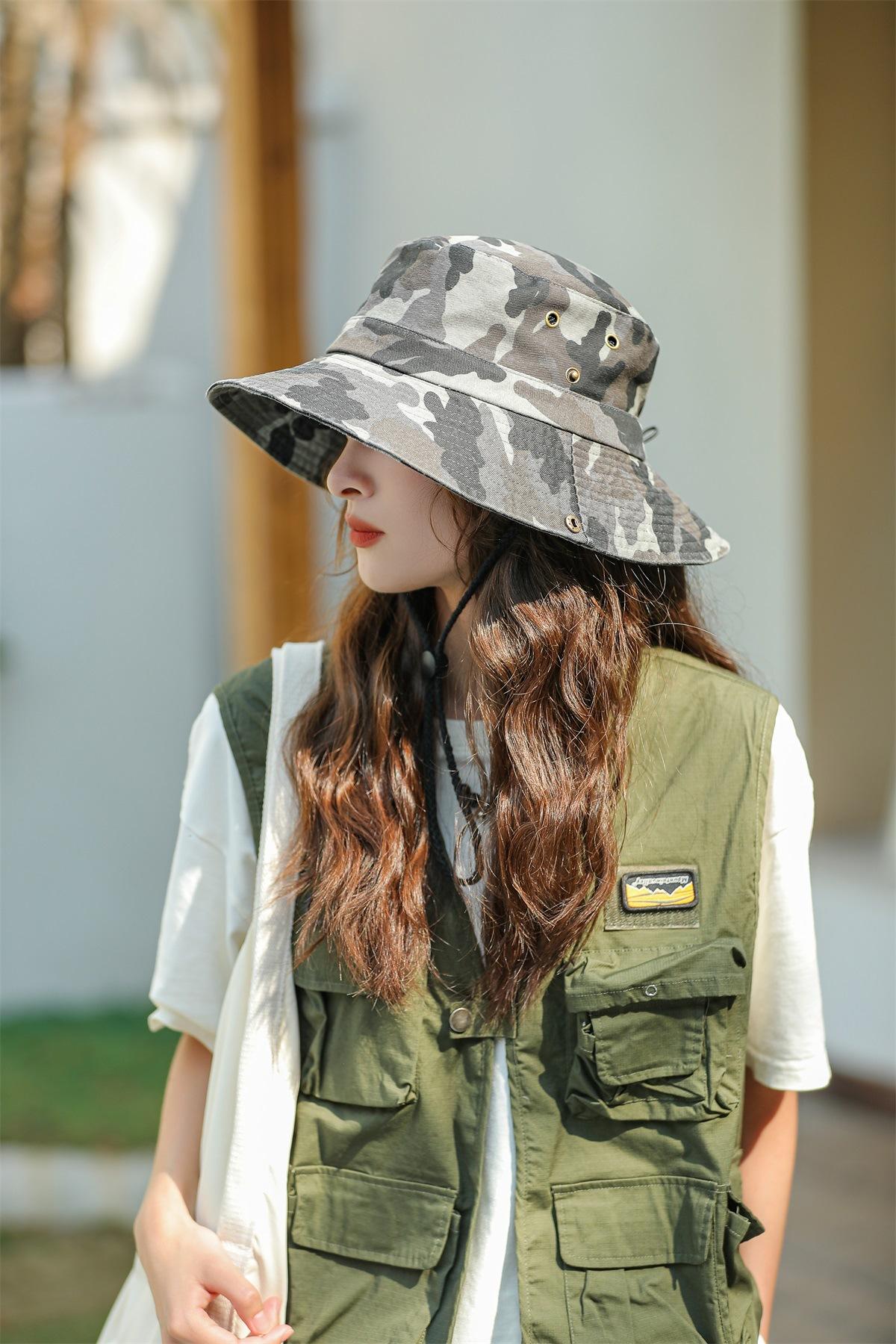 Sombrero de pescador de camuflaje para primavera y verano, ideal para hombres y mujeres, para actividades al aire libre, montañismo, camping, pesca, sombrilla, protector solar, informal, para lavabo, marea.