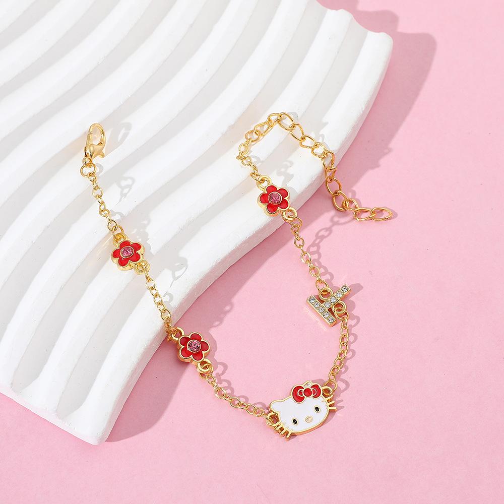Pulsera de dibujos animados anime japonés transfronterizo Sanrio Hello Kitty HelloKitty diy aleación de zinc gota de aceite joyería