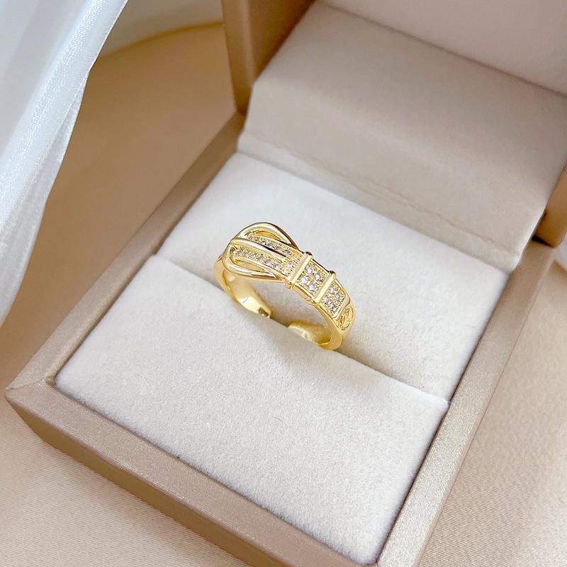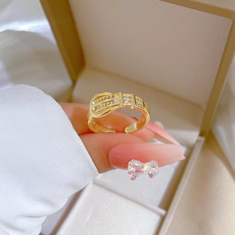 [Oro Verdadero] Anillo de Circón Ultra-flash Link Abierto Ajustable Joyería Simple Anillo Japonés Anillo de Pareja