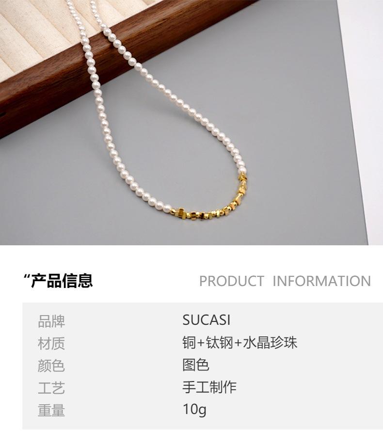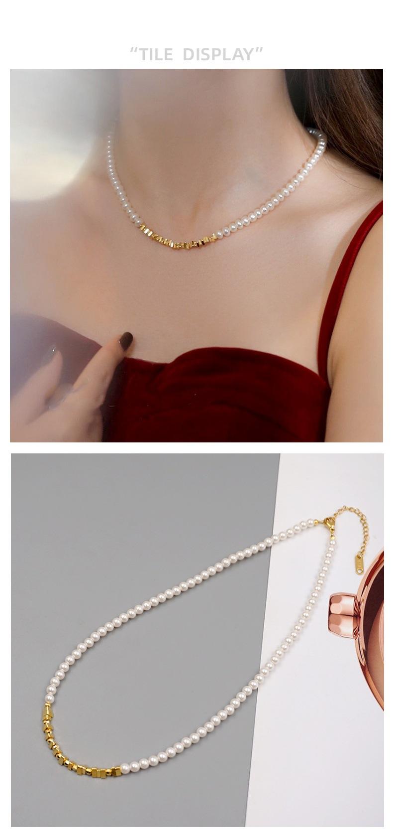 2023 Nuevo temperamento pequeño pequeño pequeño collar de perlas de oro diseño cristal perla collar de plata rota cadena de hueso de aire