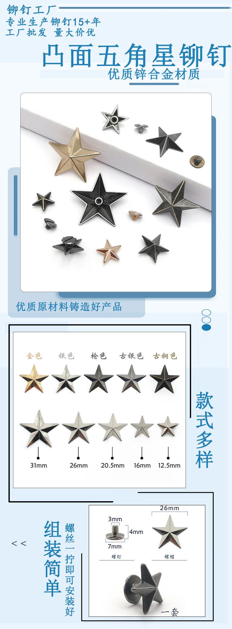 Remaches de Aleación al por Mayor Estrella de Cinco Puntas DIY Ropa Bolsos Zapatos y Accesorios para Sombreros Accesorios de Estrella de Cinco Puntas Grandes Tornillos