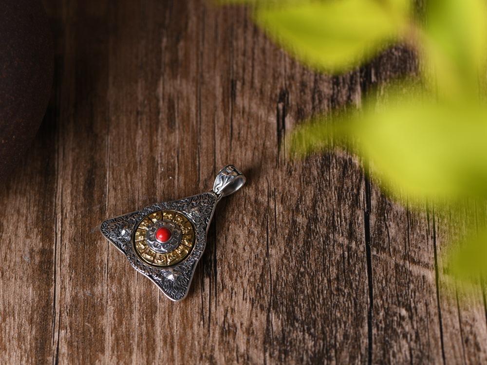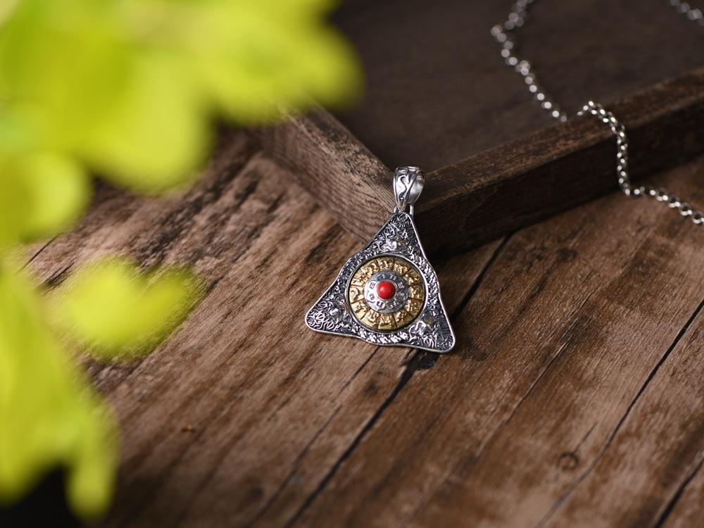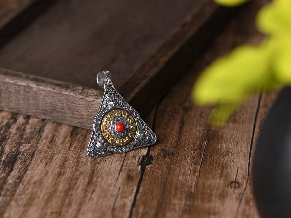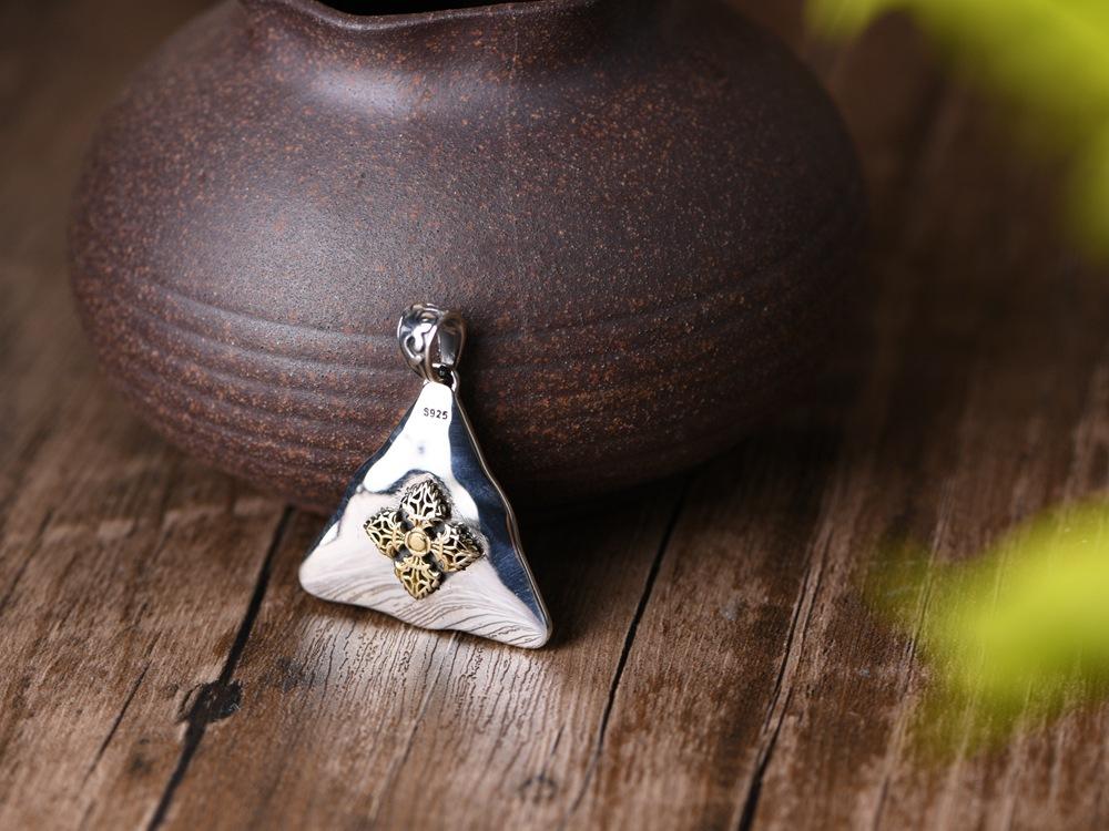 Colgante de mano de mortero con diamantes vintage de plata S925 de Golden Deer King, collar con colgante de triángulo del zodíaco de plata tailandesa con doce accesorios