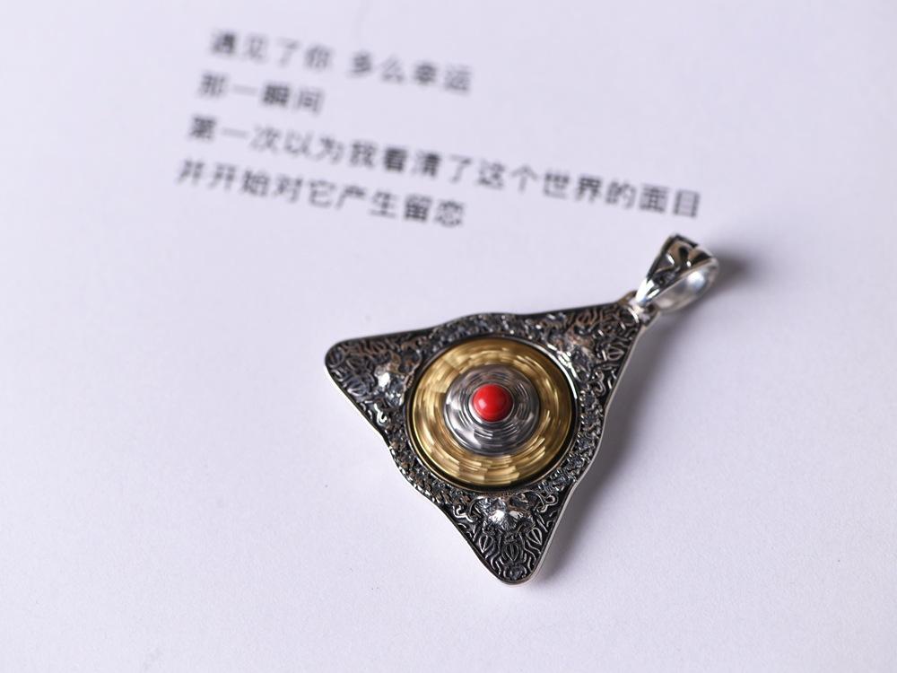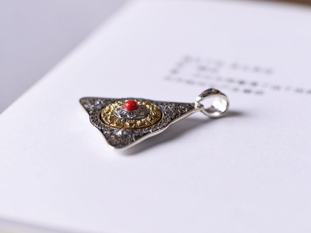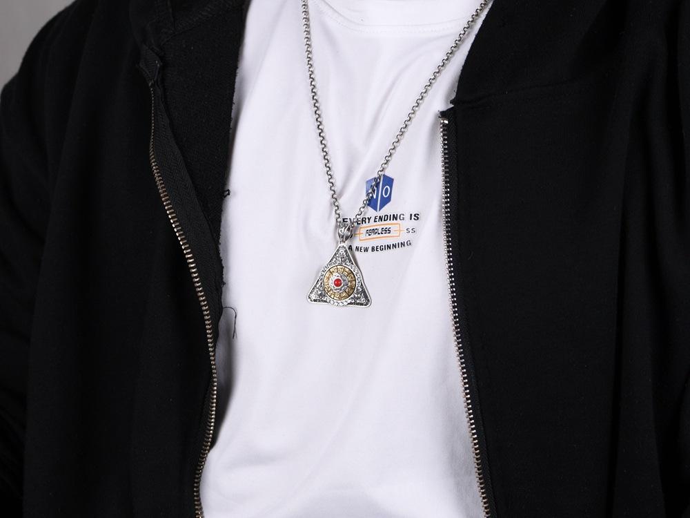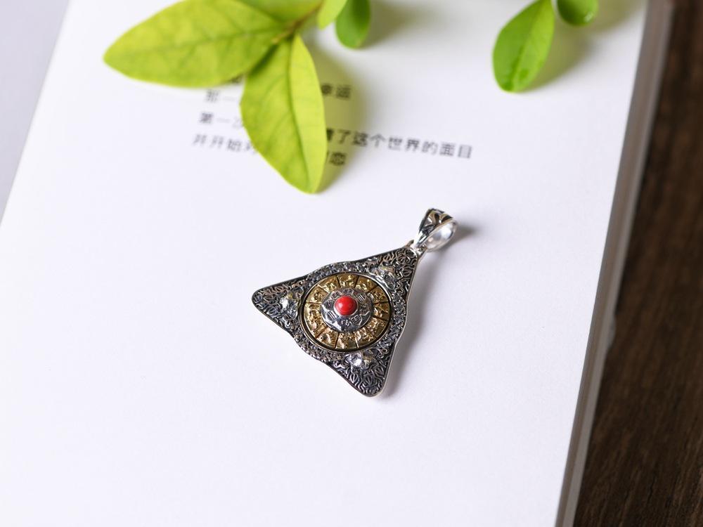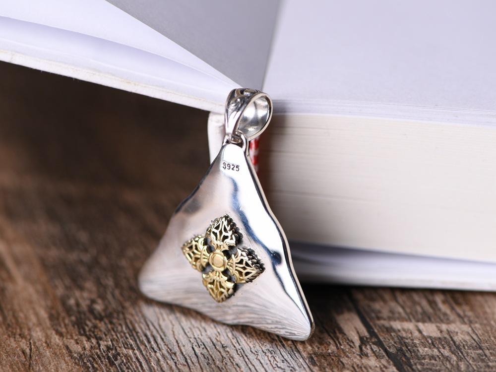 Colgante de mano de mortero con diamantes vintage de plata S925 de Golden Deer King, collar con colgante de triángulo del zodíaco de plata tailandesa con doce accesorios