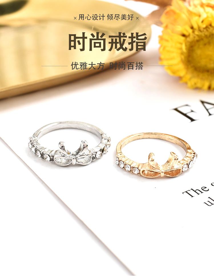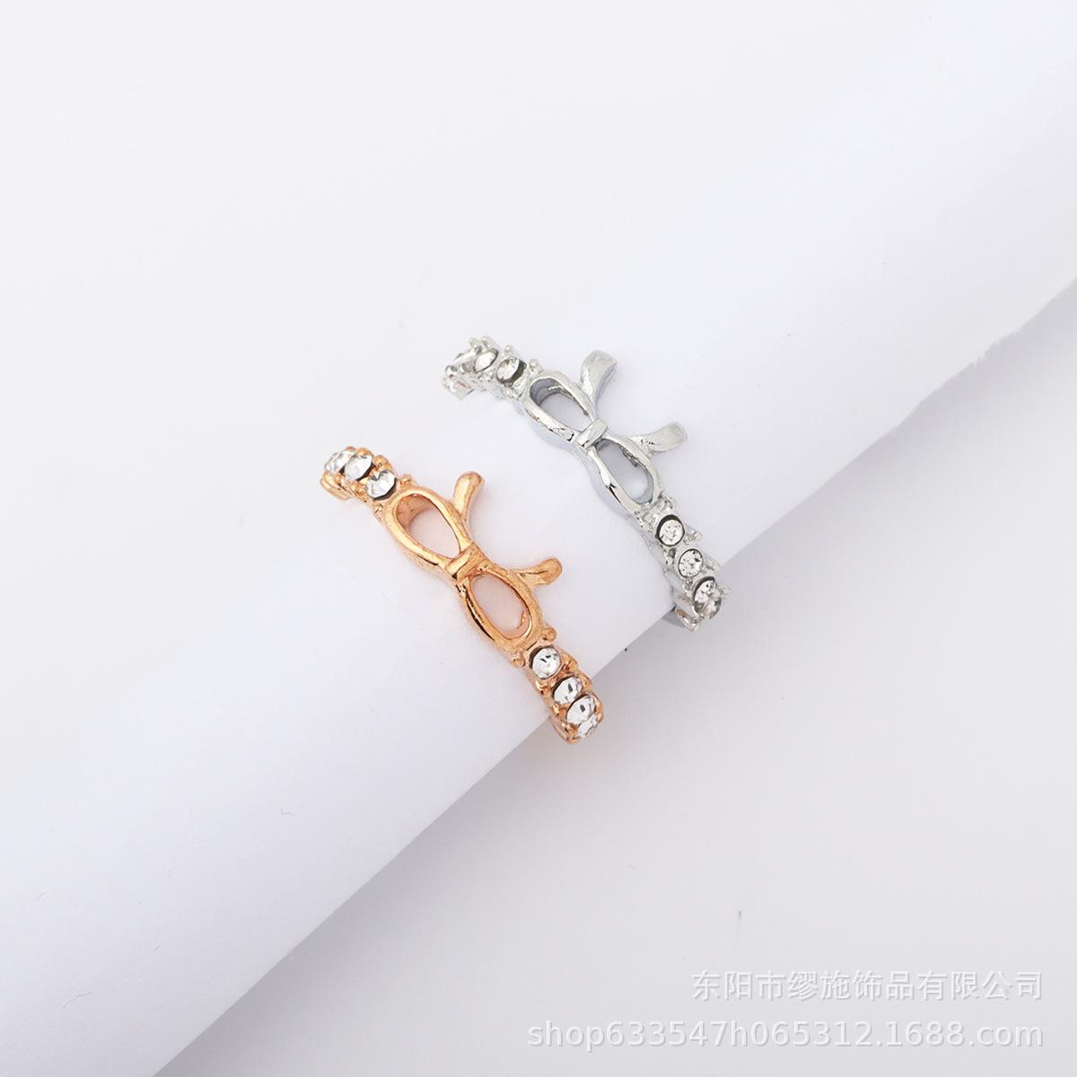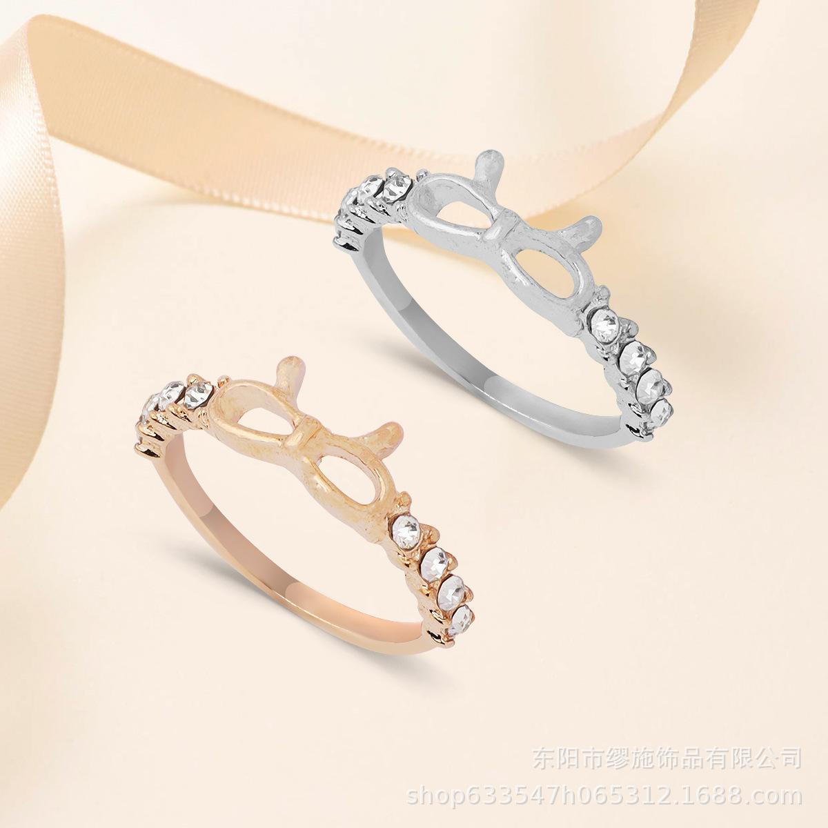Europeo y Americano Nuevo Anillo de Lazo de Tendencia de Moda Coreana Transfronteriza Exquisito y Simple Joyería de Diamantes de Aleación para Mujer