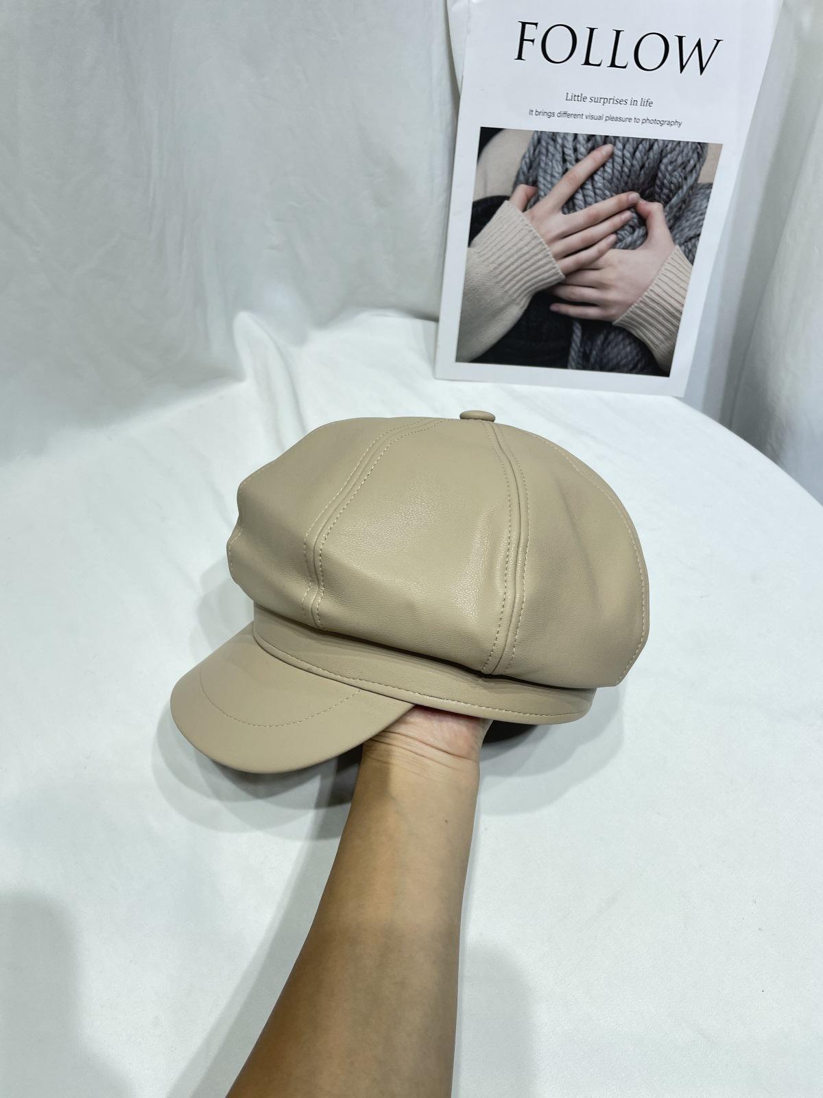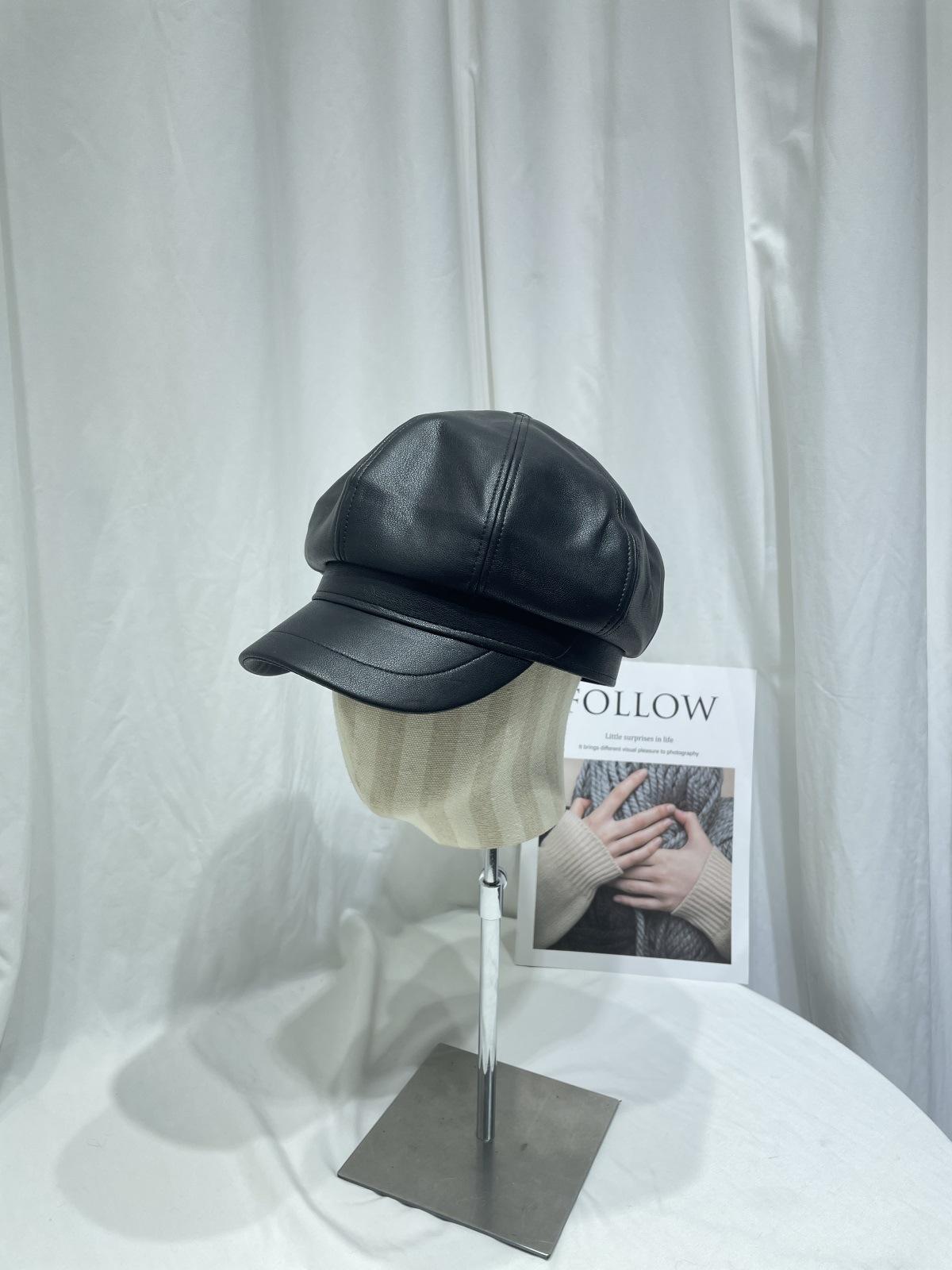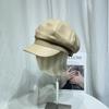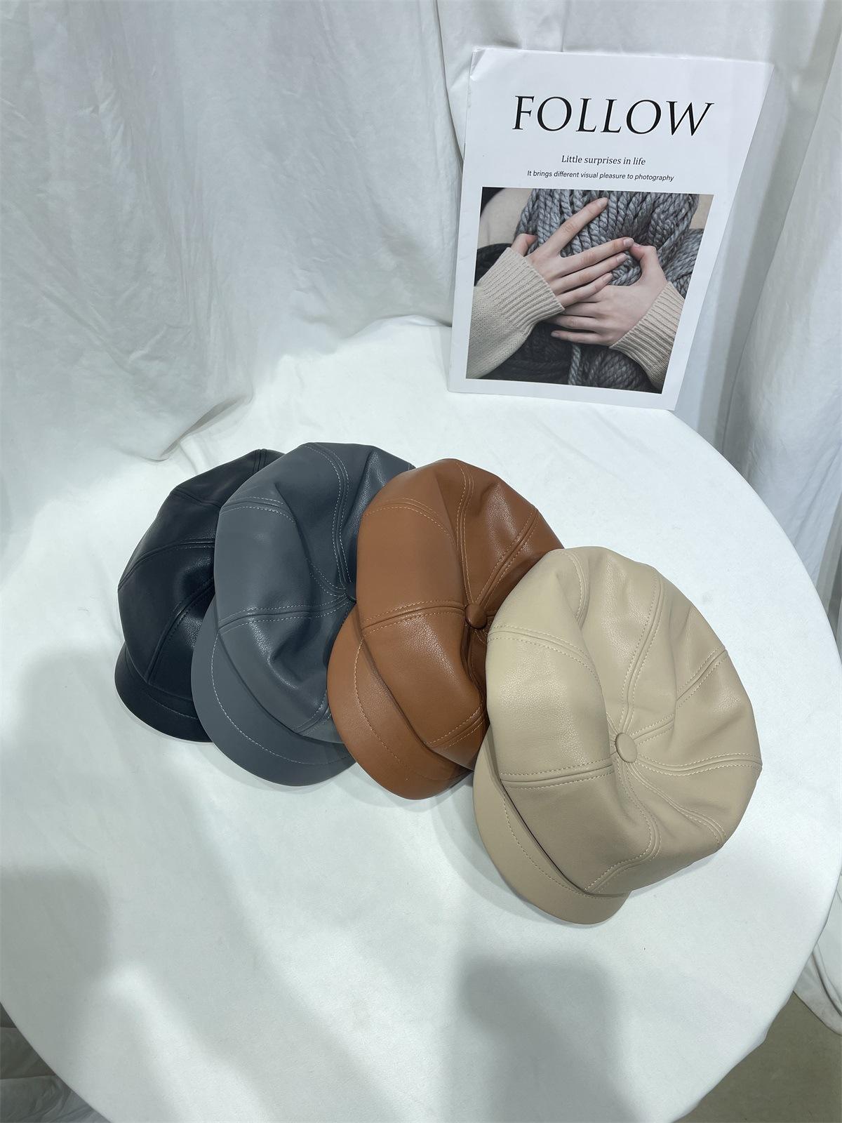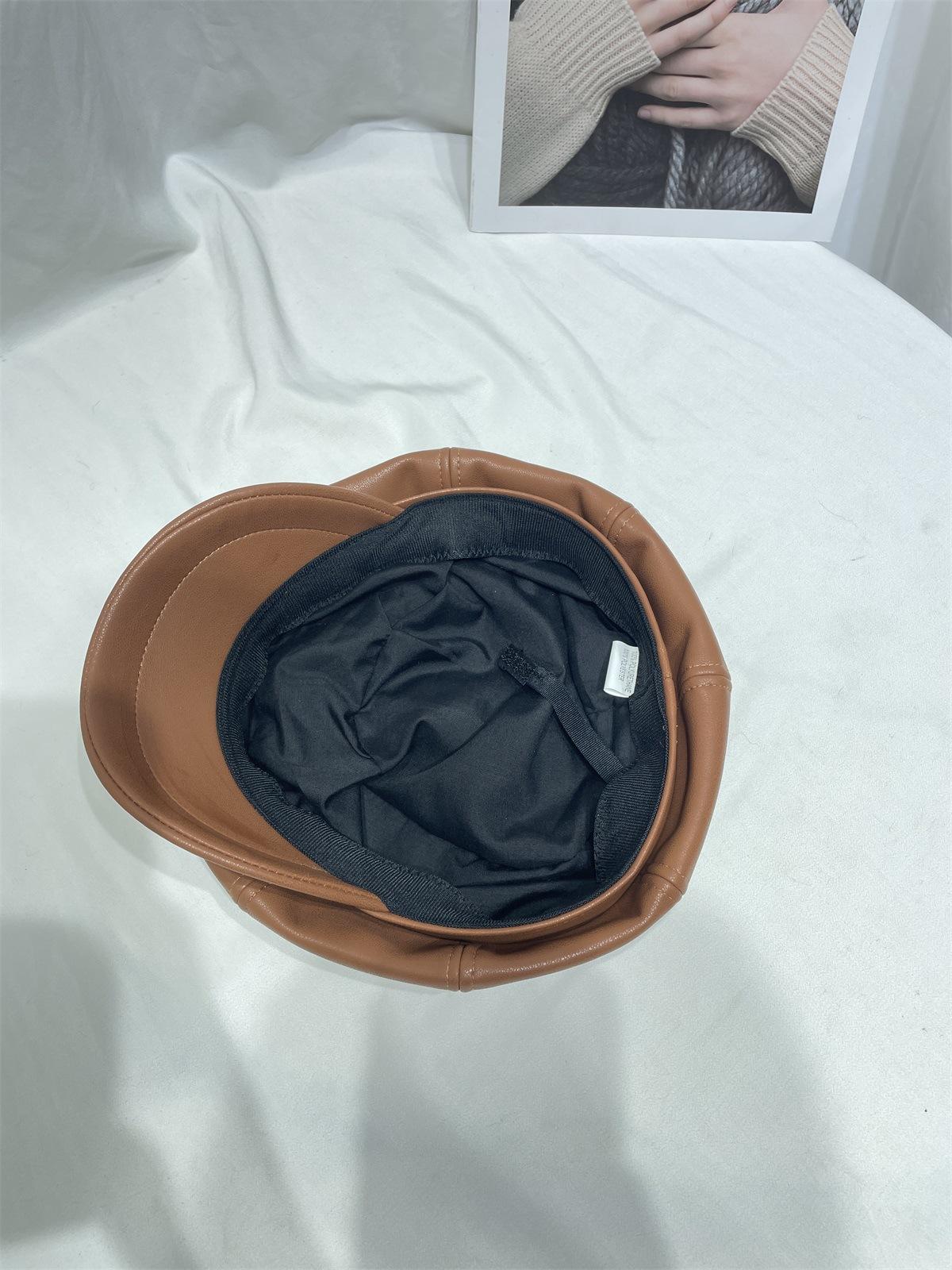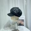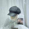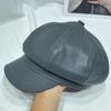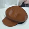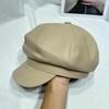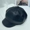 Sombrero octogonal pequeño con diseño de cara de cuero de PU de estilo coreano para mujer, sombrero informal de otoño e invierno con temperamento de pintor y vendedor de periódicos de celebridades de Internet británicas retro