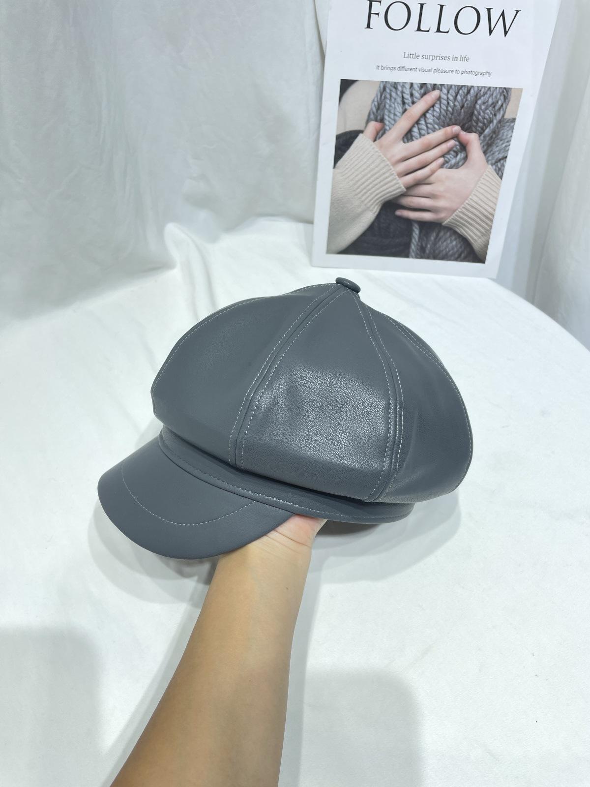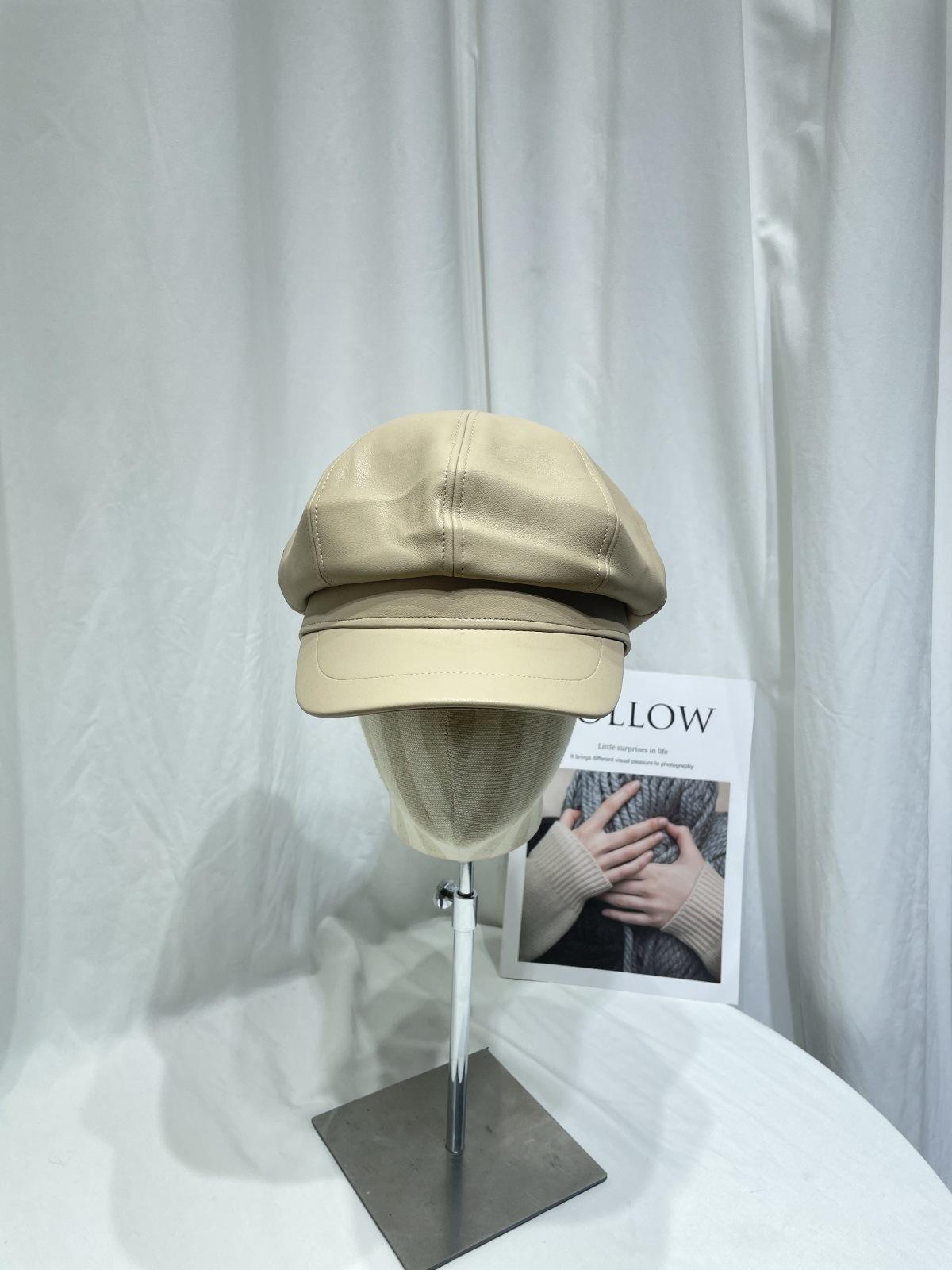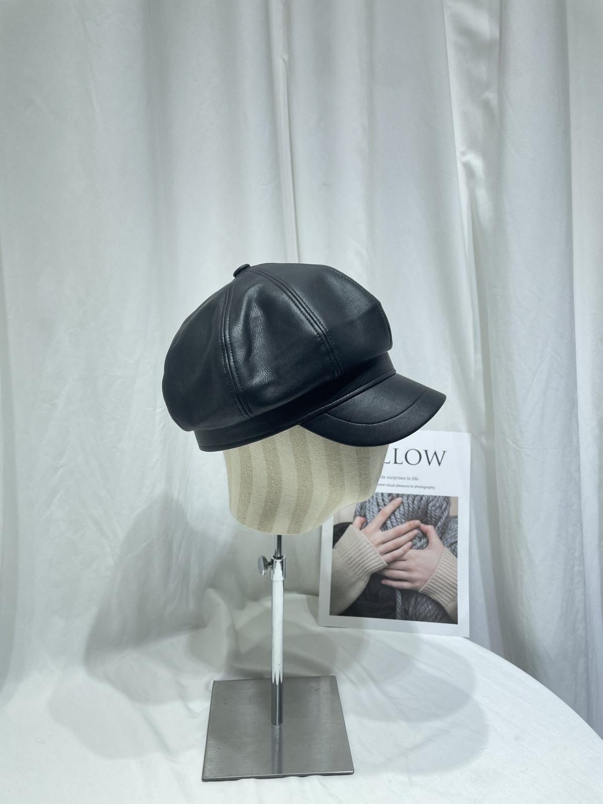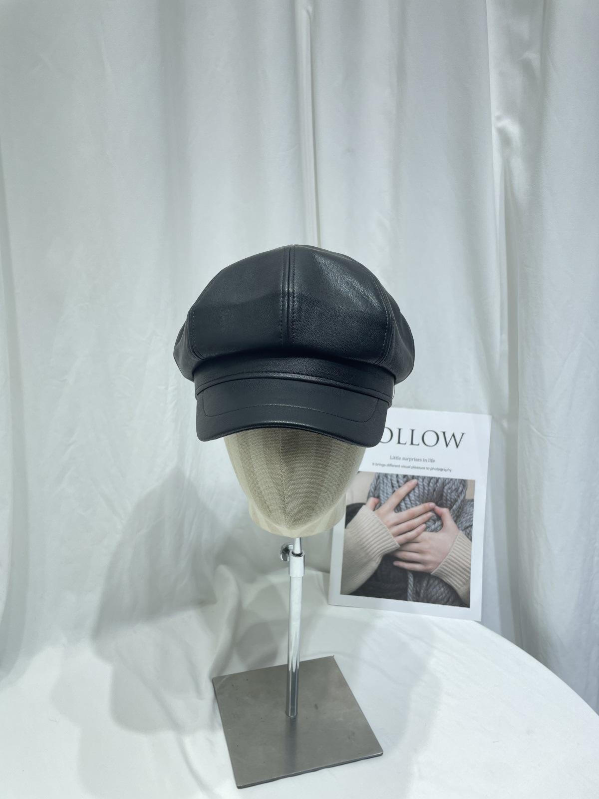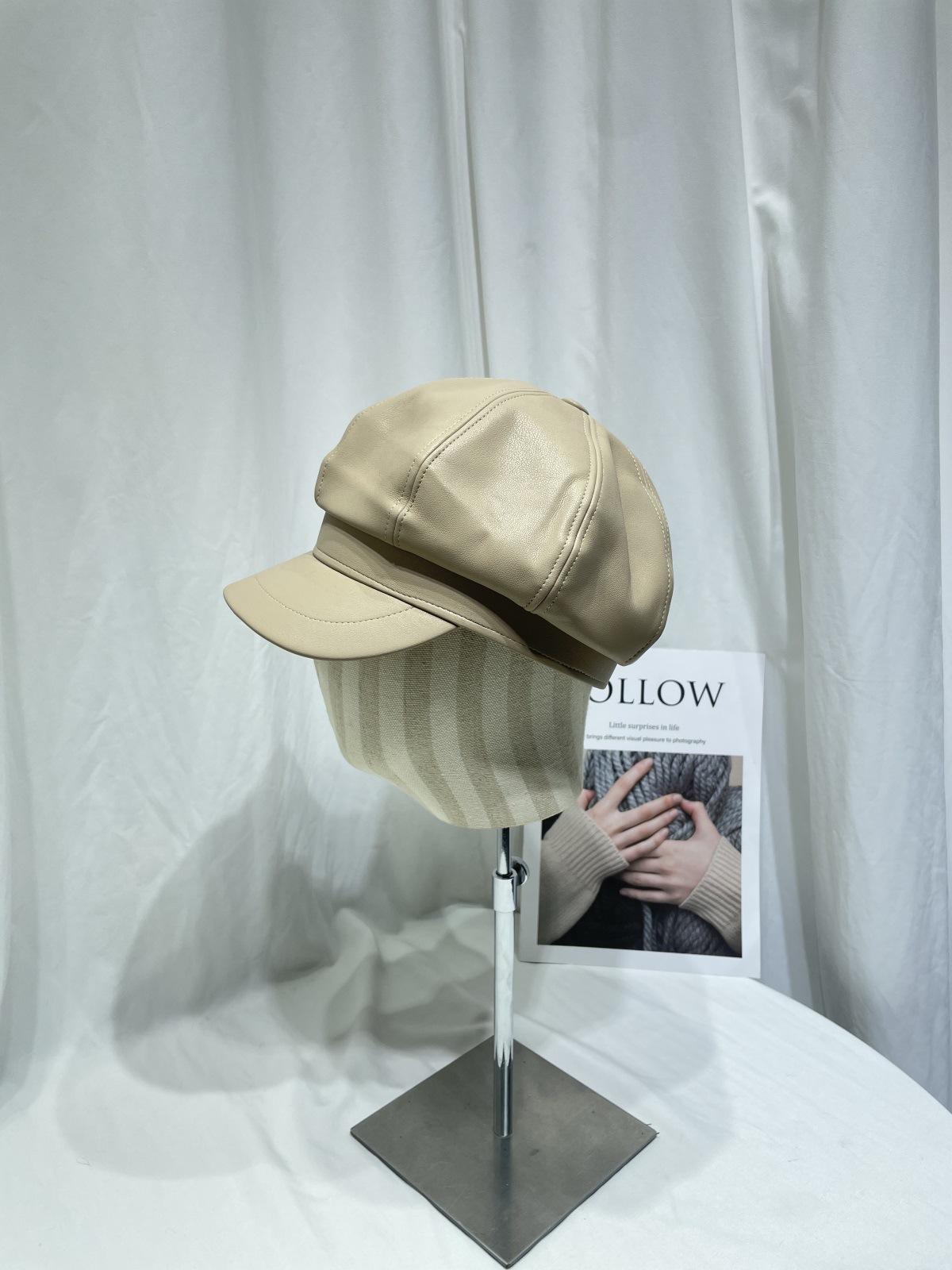 Sombrero octogonal pequeño con diseño de cara de cuero de PU de estilo coreano para mujer, sombrero informal de otoño e invierno con temperamento de pintor y vendedor de periódicos de celebridades de Internet británicas retro