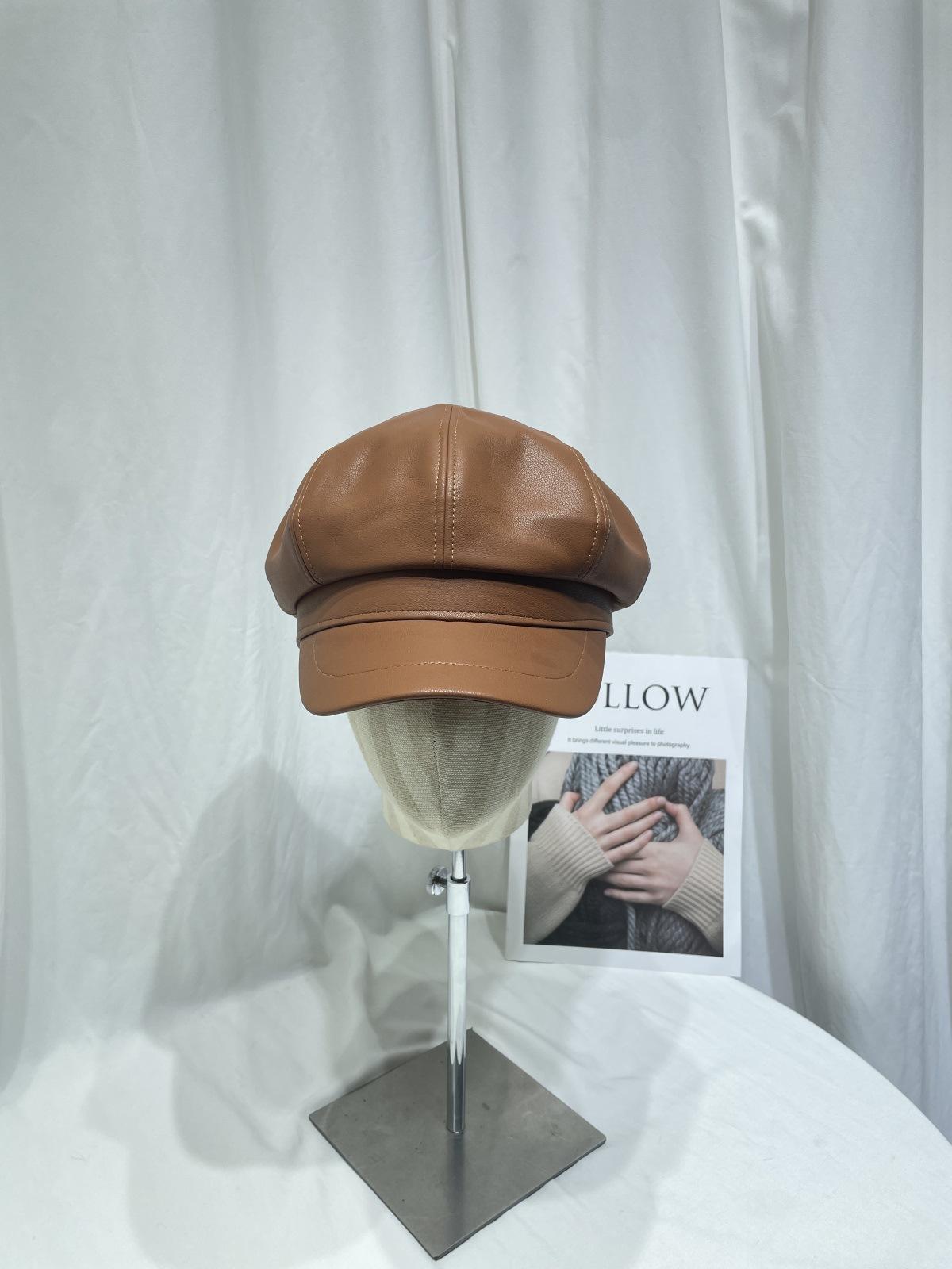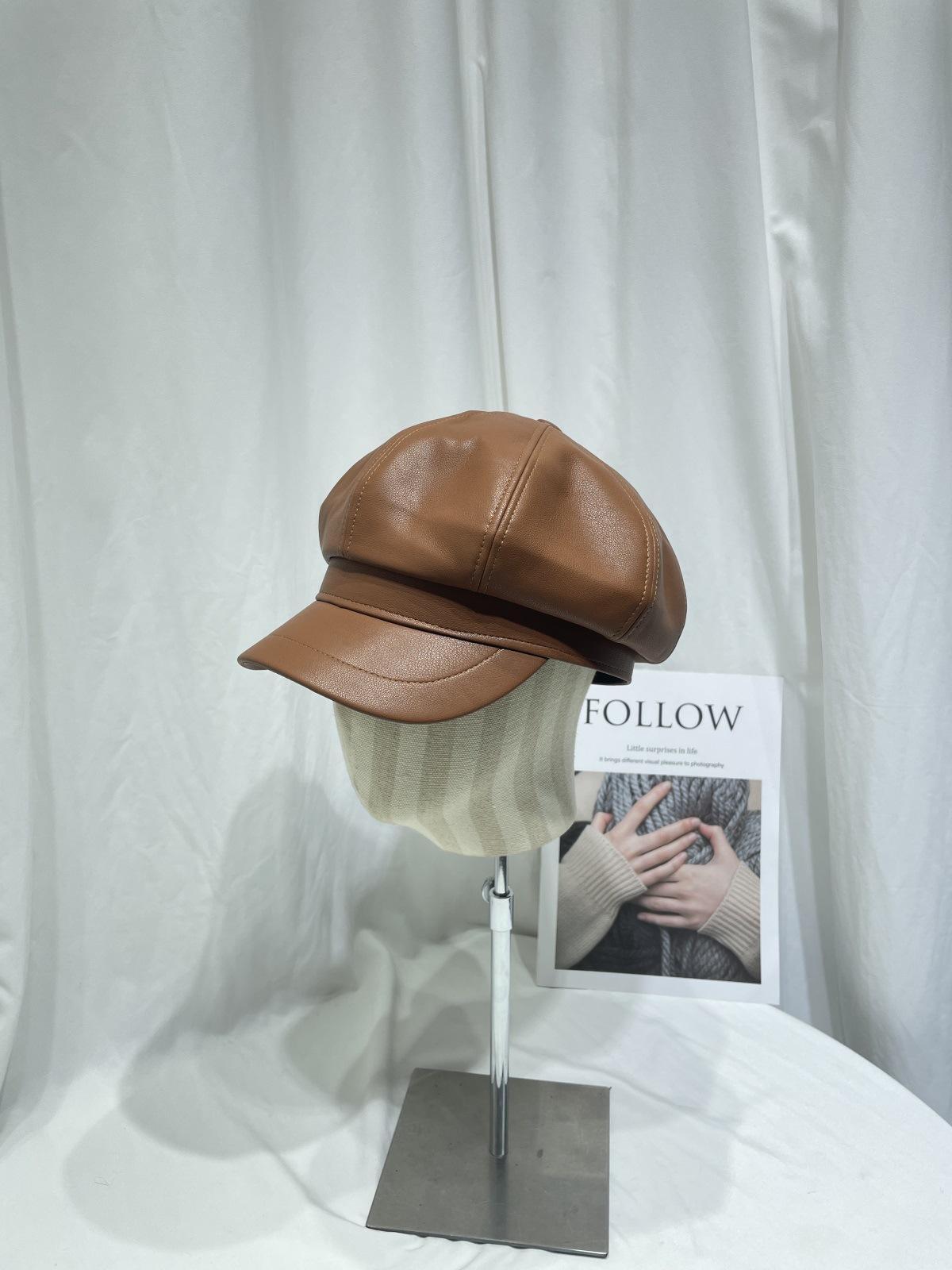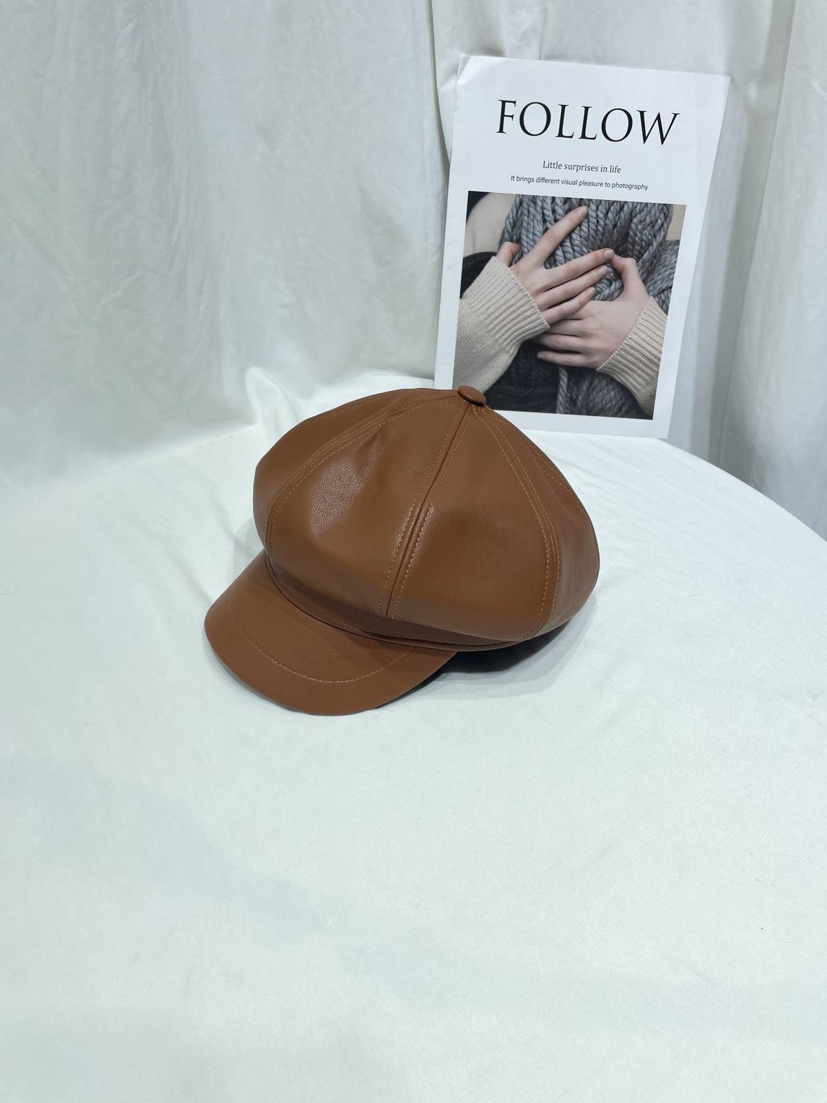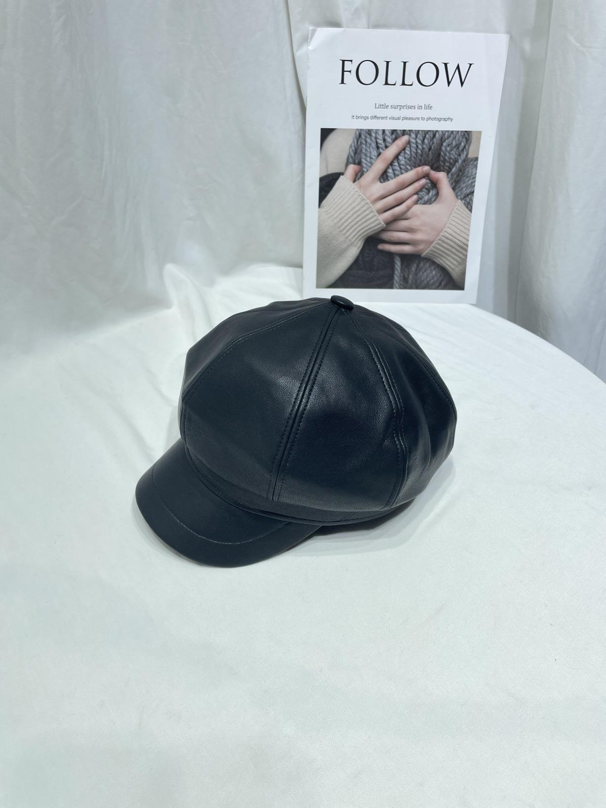 Sombrero octogonal pequeño con diseño de cara de cuero de PU de estilo coreano para mujer, sombrero informal de otoño e invierno con temperamento de pintor y vendedor de periódicos de celebridades de Internet británicas retro