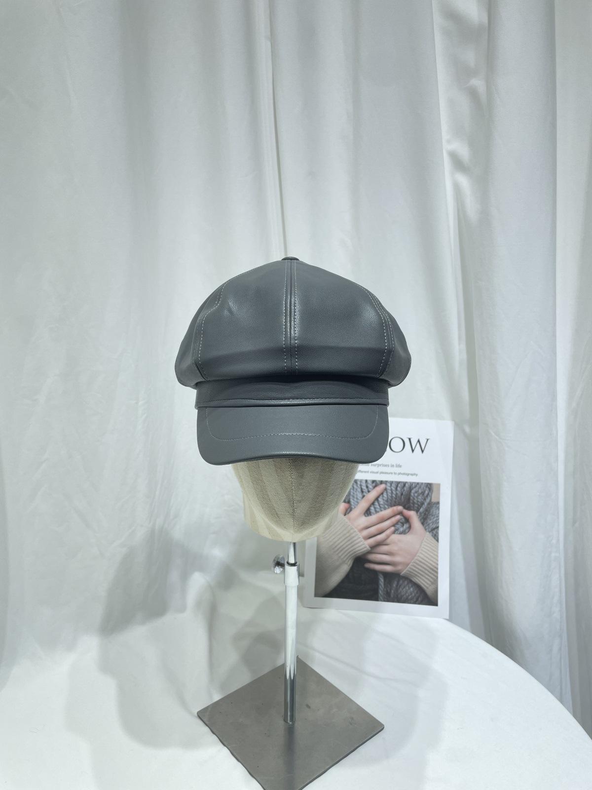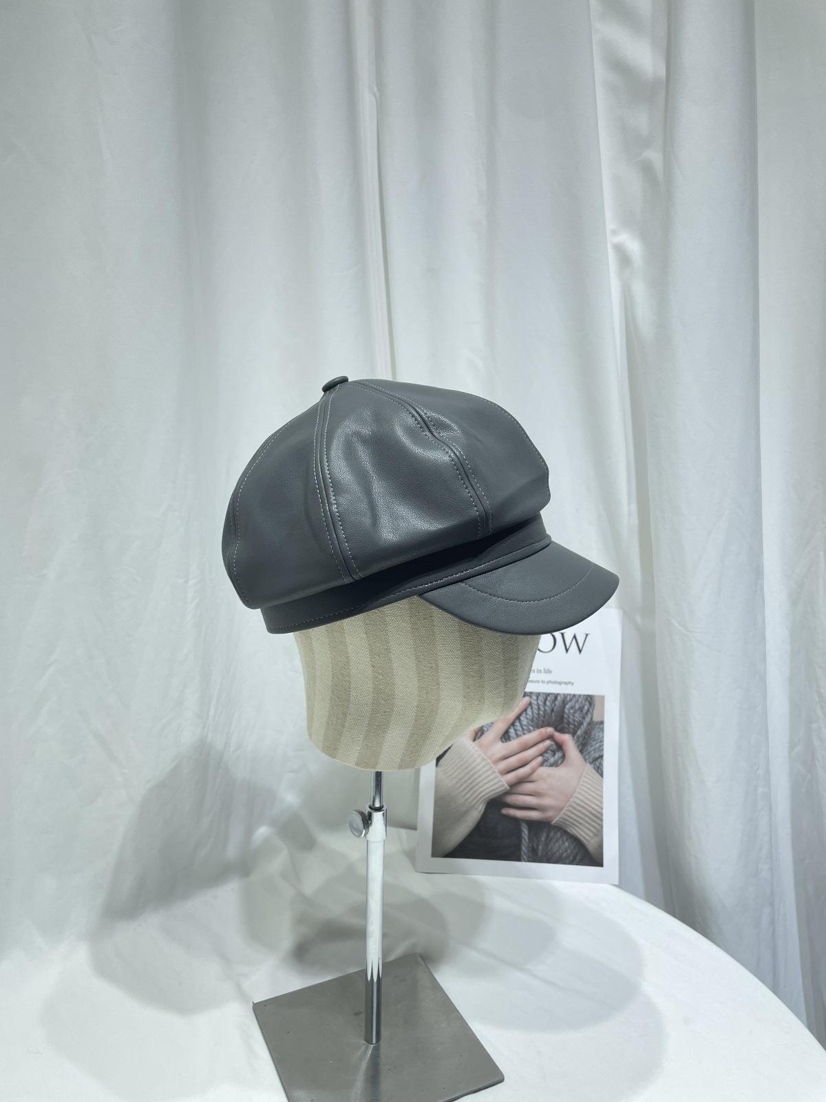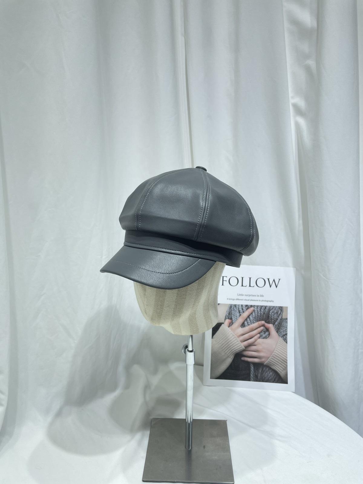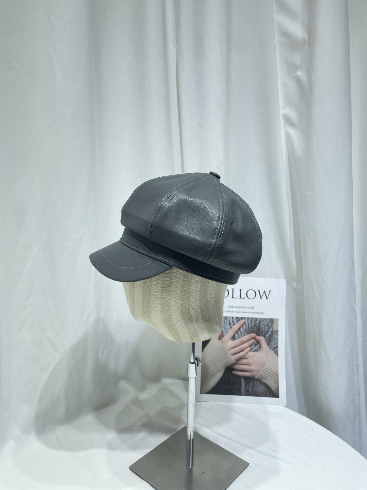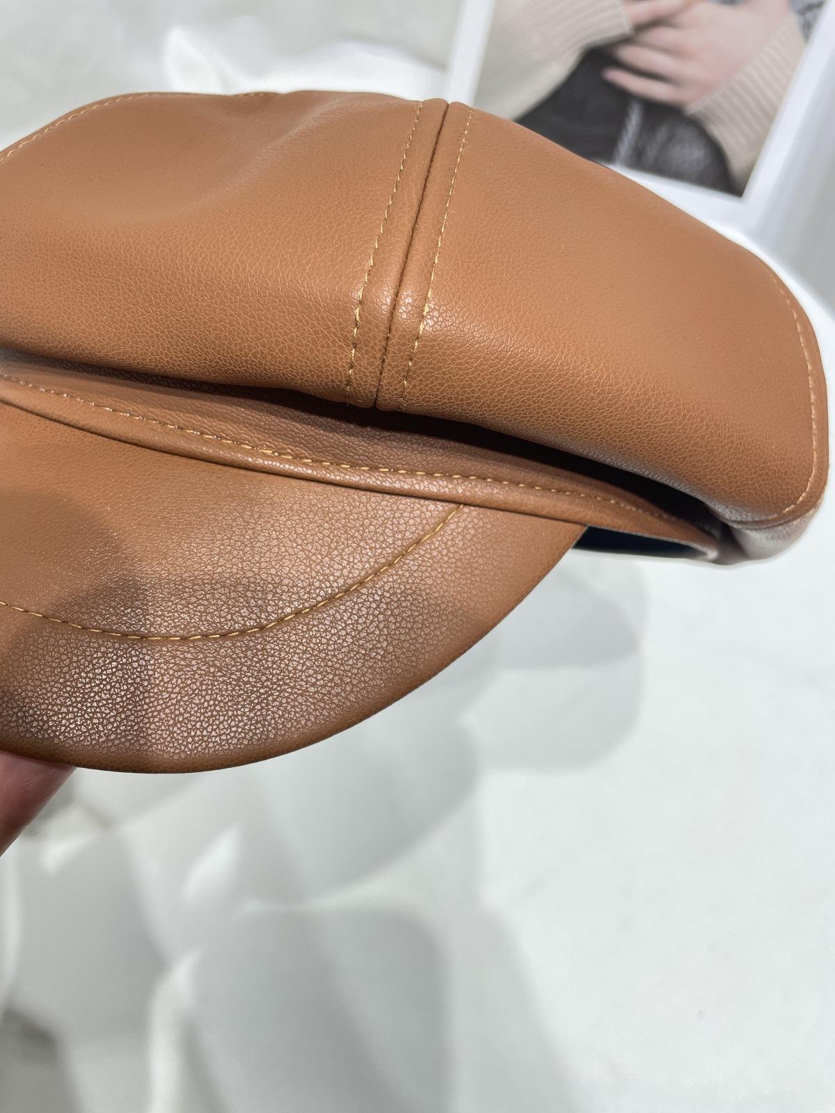 Sombrero octogonal pequeño con diseño de cara de cuero de PU de estilo coreano para mujer, sombrero informal de otoño e invierno con temperamento de pintor y vendedor de periódicos de celebridades de Internet británicas retro