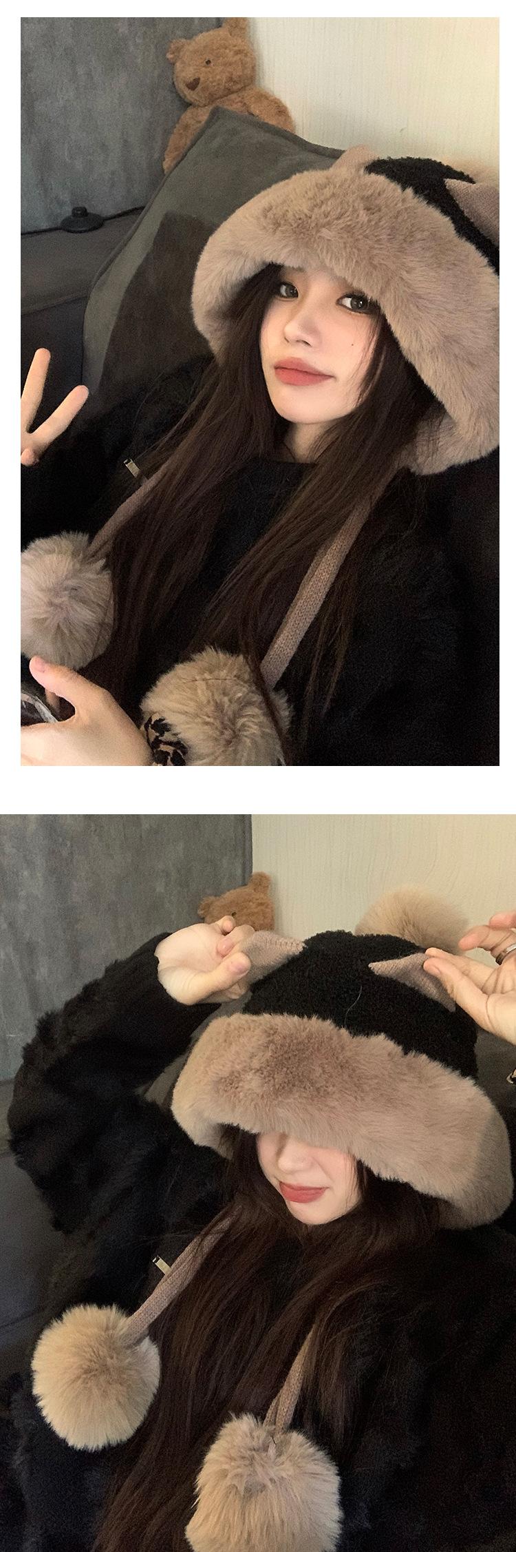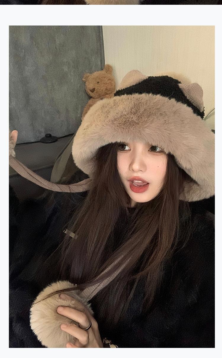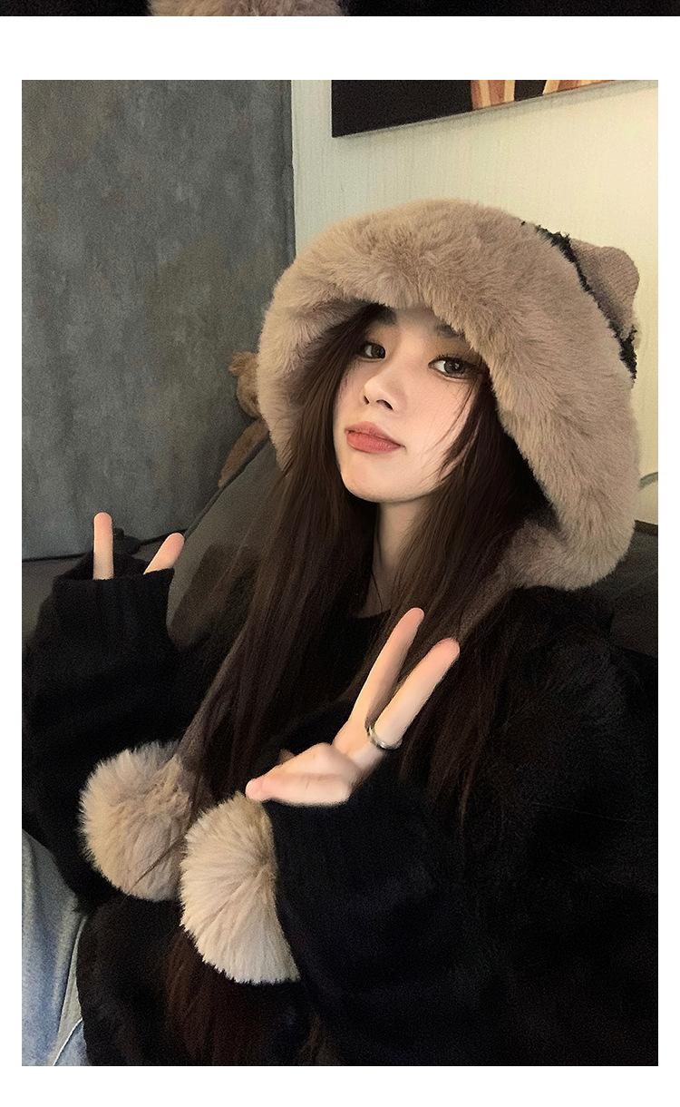 Invierno estilo coreano versátil lindo sombrero de felpa con orejas para mujer más orejeras de terciopelo sombrero Lei Feng para mujer cálido sombrero con diadema moderno