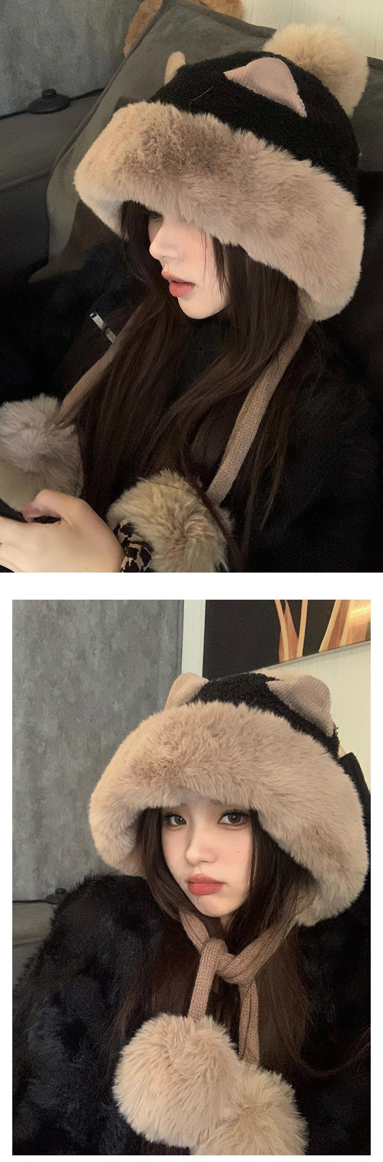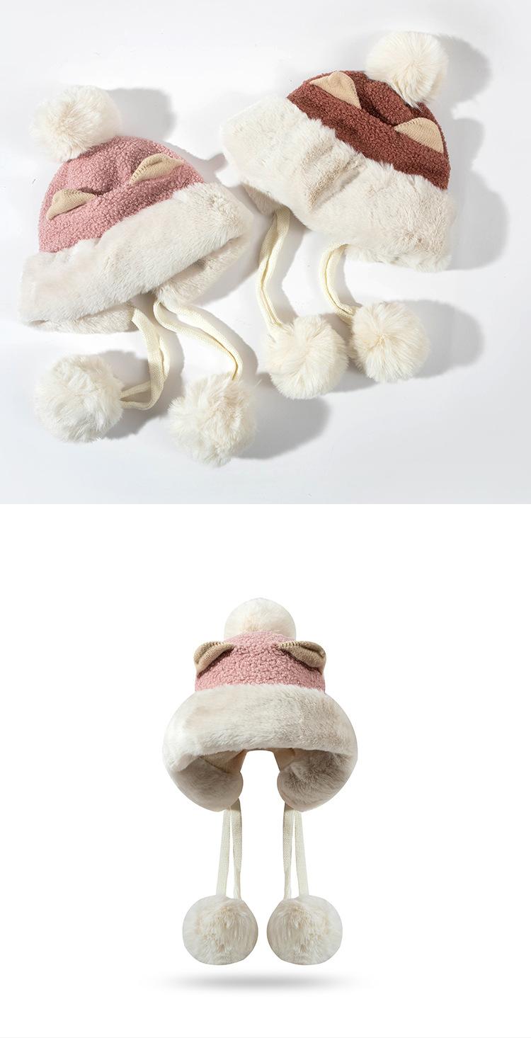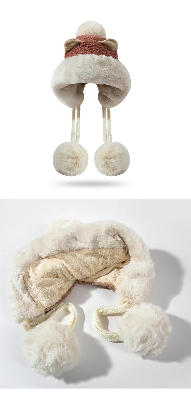 Gorro Lei Feng de Lana de Cordero con Orejas de Gato Dulce y Lindo de Estilo Coreano para Mujer Otoño e Invierno Terciopelo Cálido Protección para las Orejas Gorro Resistente al Frío para Montar