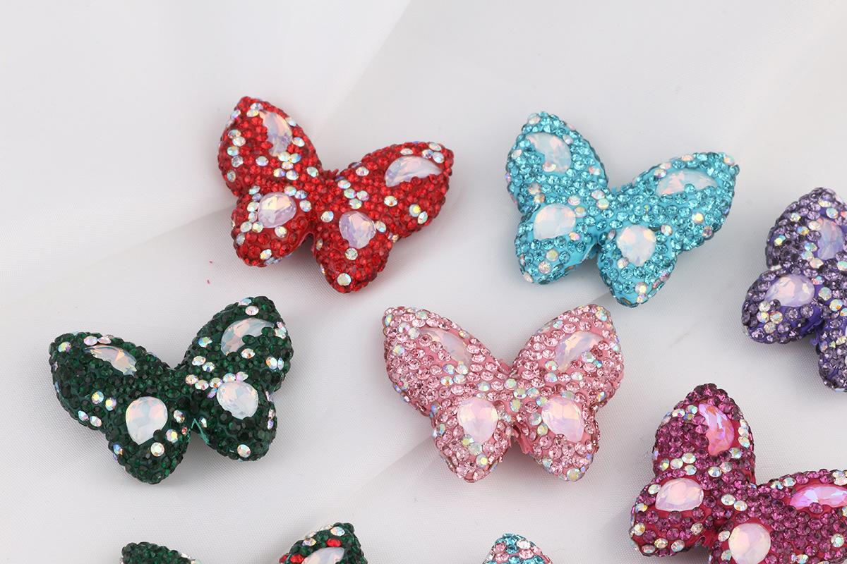 Venta al por mayor de cuentas de agujero recto con forma de bola de diamante de cerámica blanda con forma de mariposa de colores transfronterizos, llavero para teléfono móvil, collar y accesorios