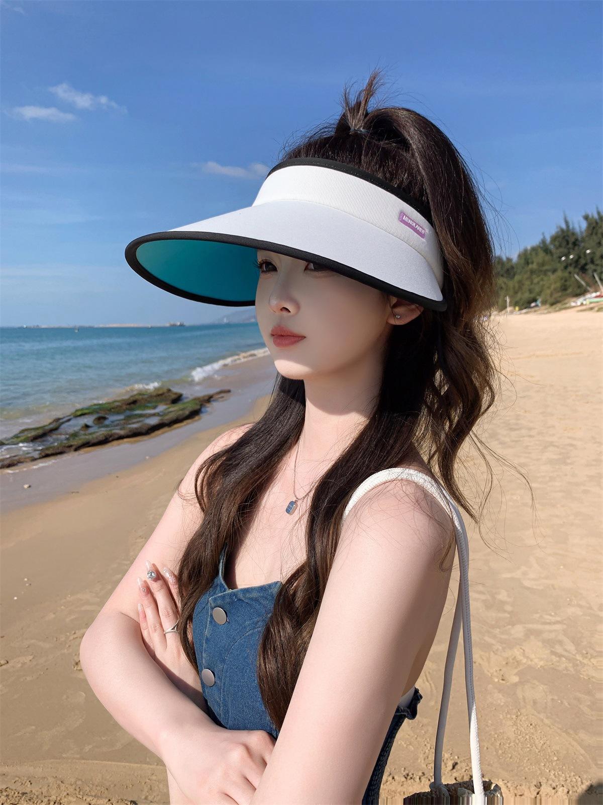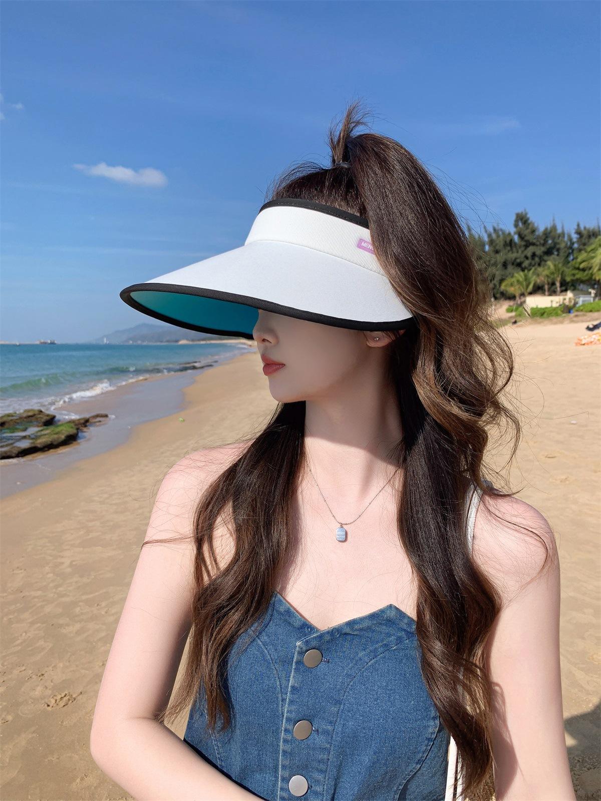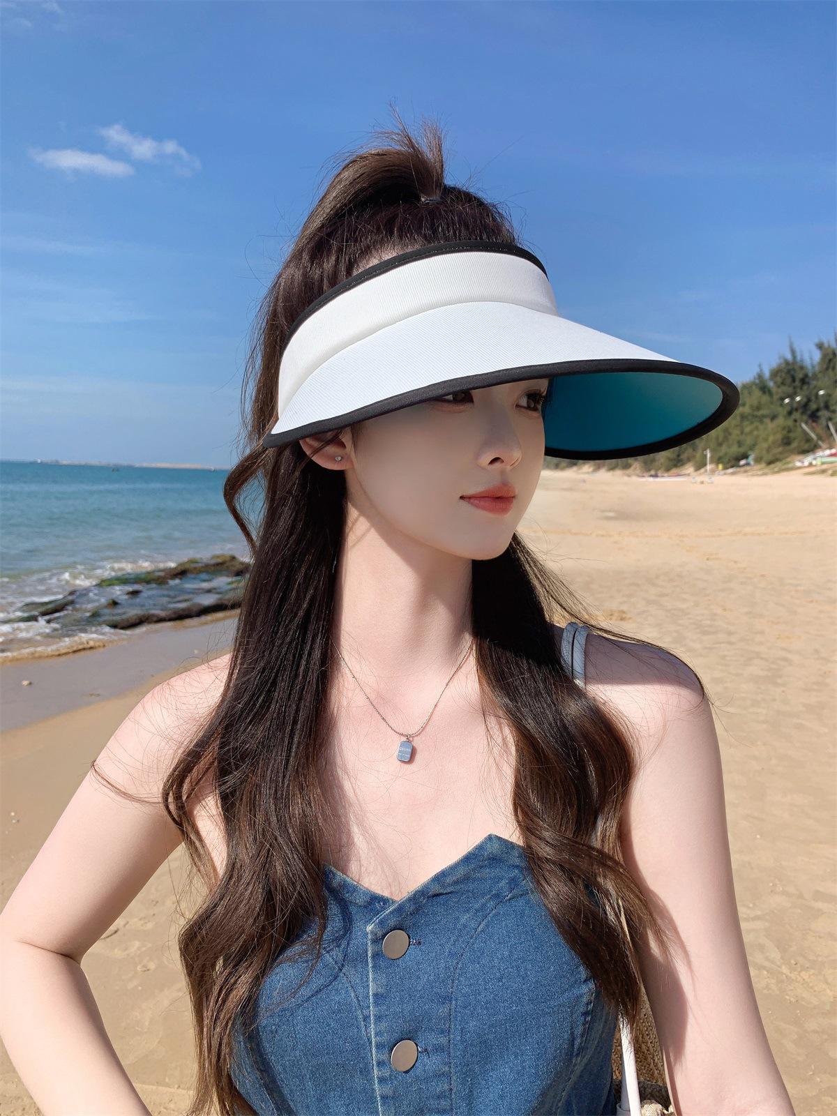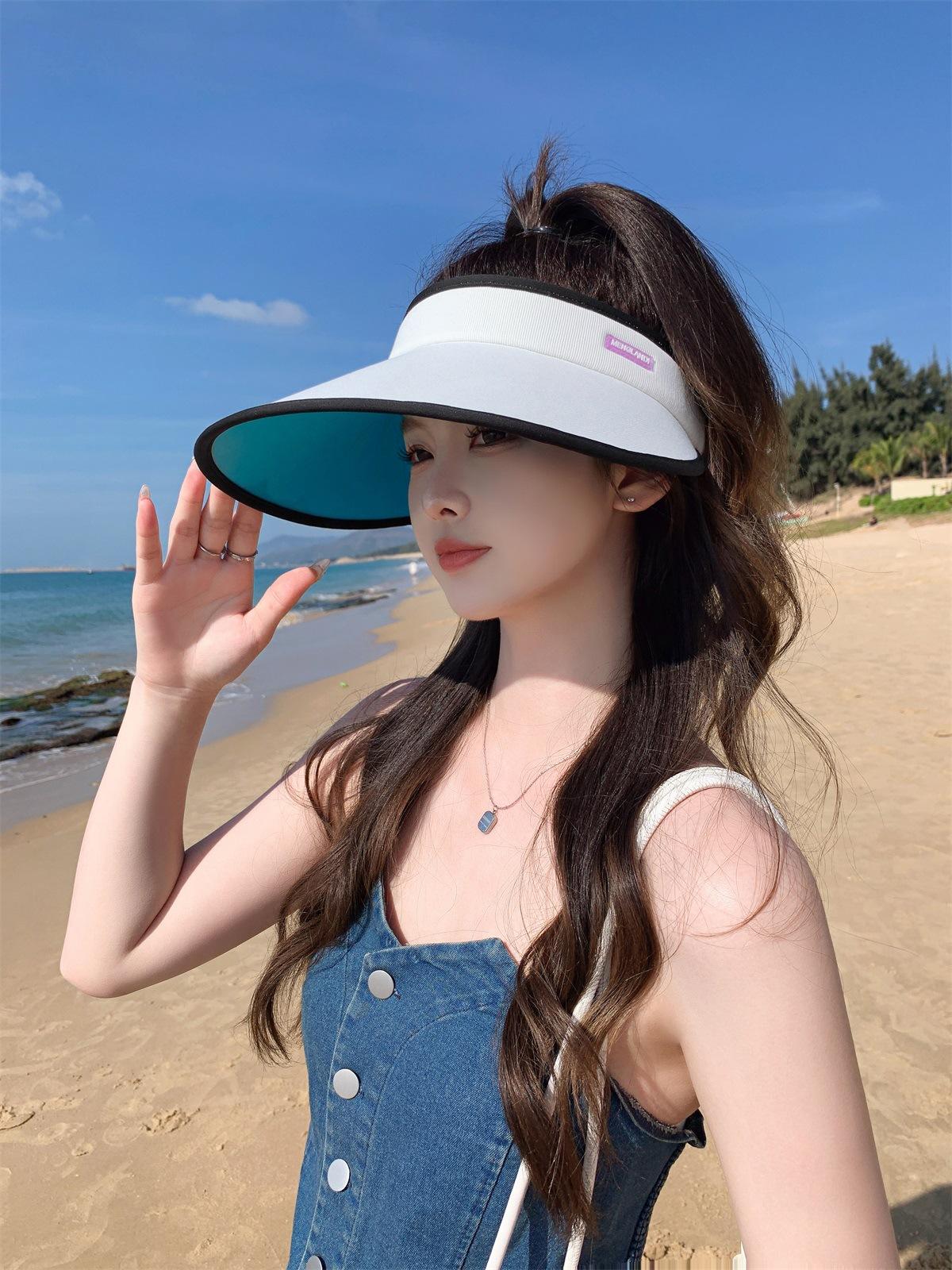 Sombrero de verano para mujer, estilo coreano, sencillo, informal, combinable, sombrero de copa vacío, sombrero para montar al aire libre, sombrero para el sol con protección solar.