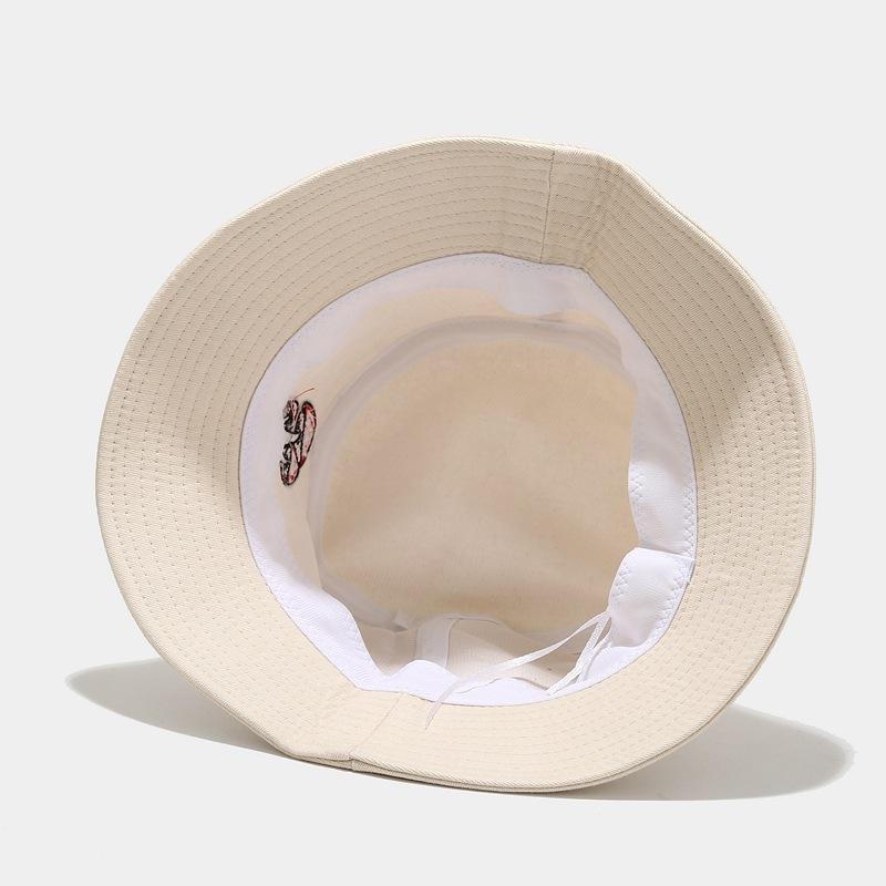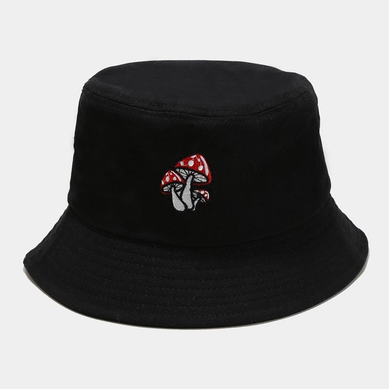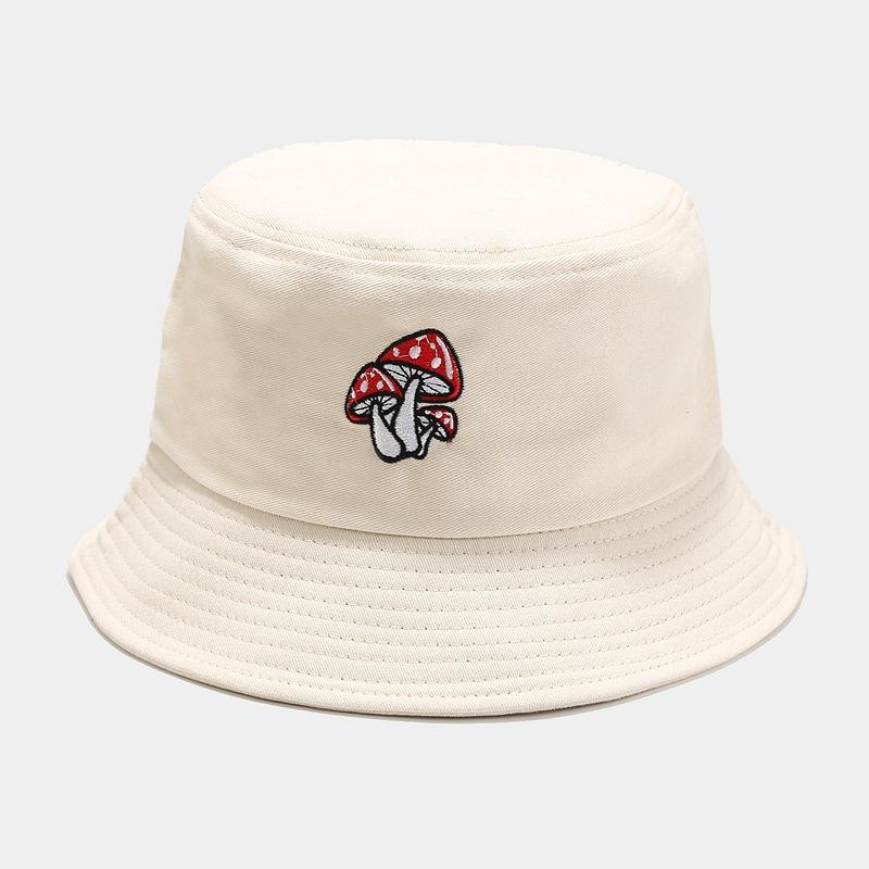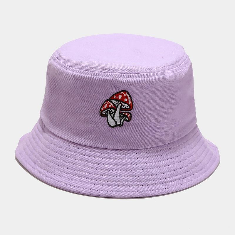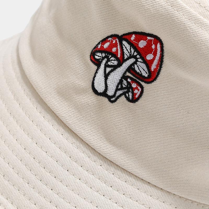 Nuevo y bonito sombrero de pescador bordado con tres hongos de Amazon, sombrero de lavabo de color caramelo de moda para primavera y verano, sombrero para pareja
