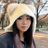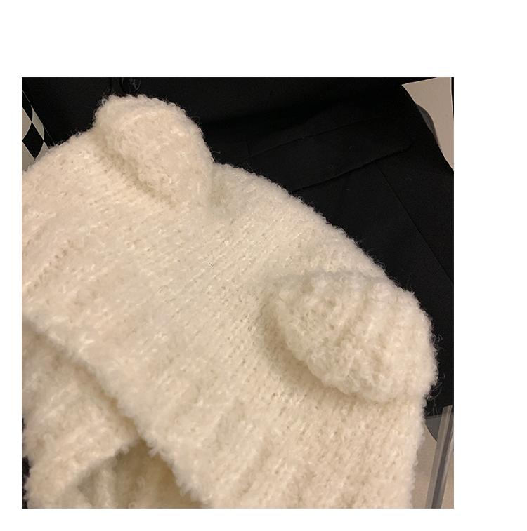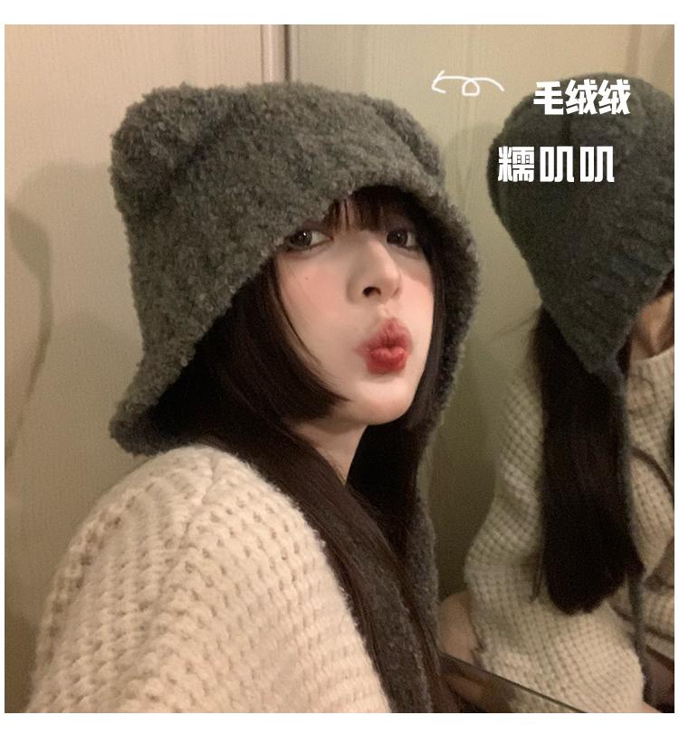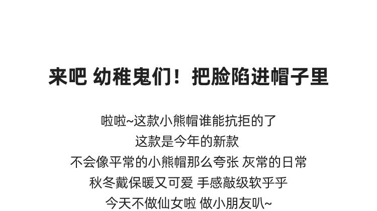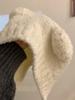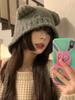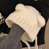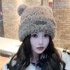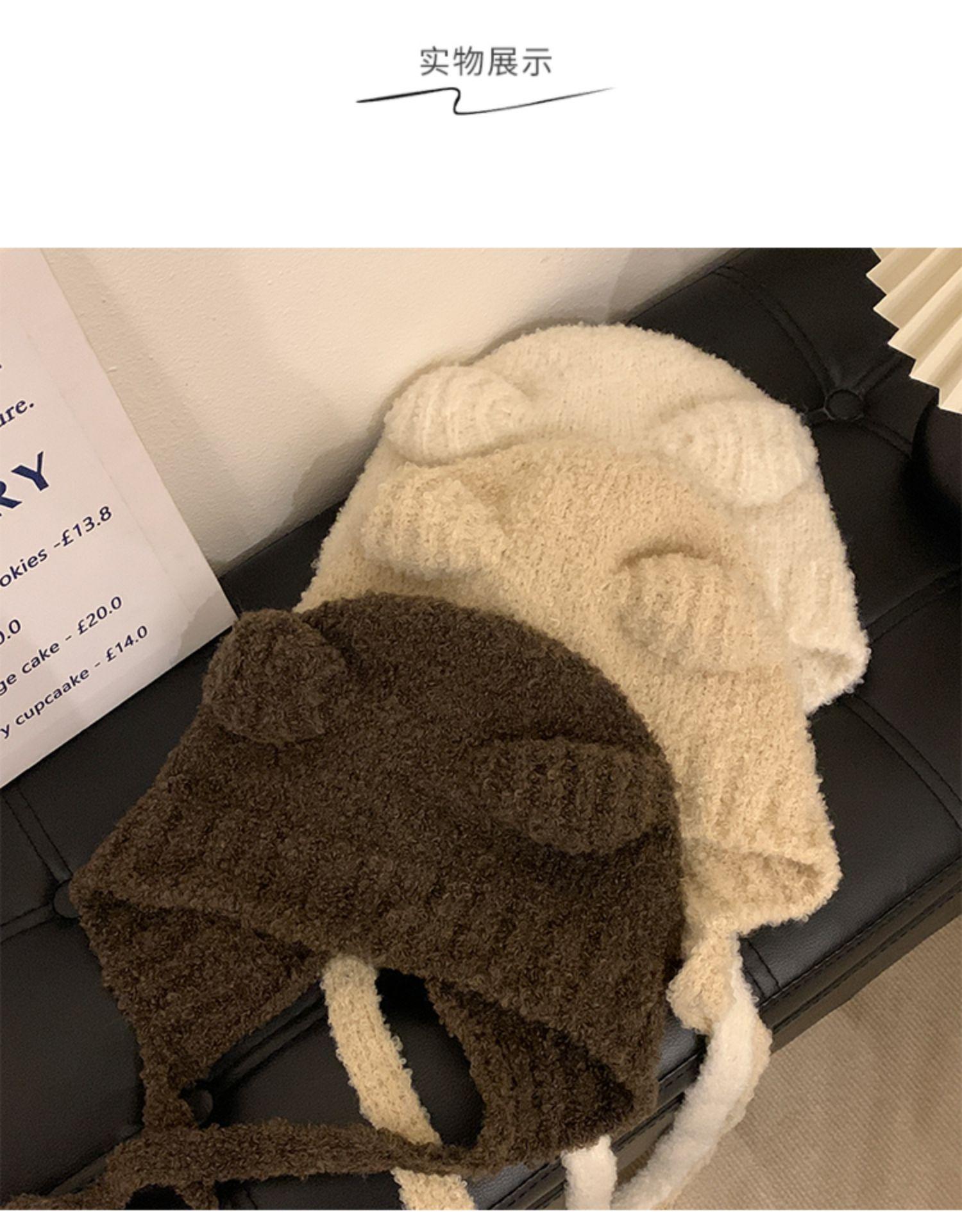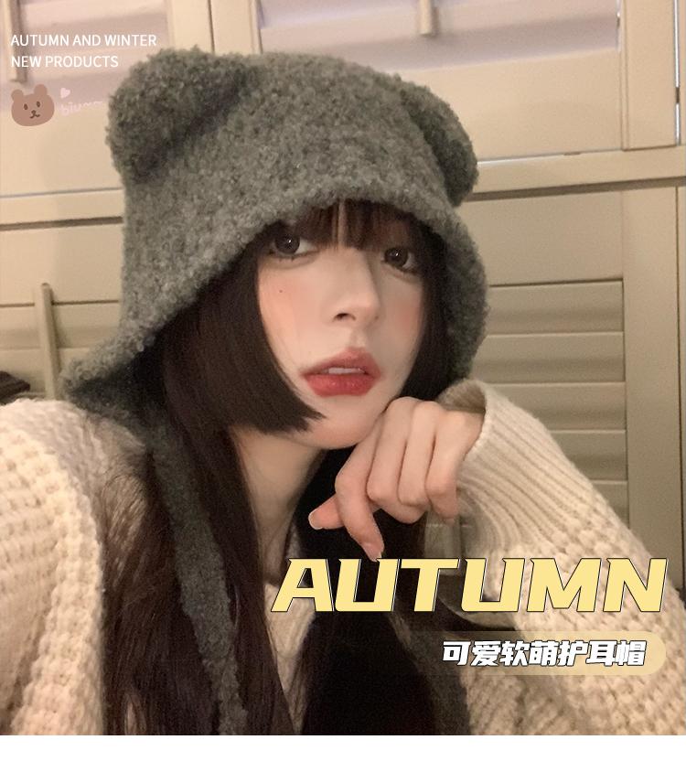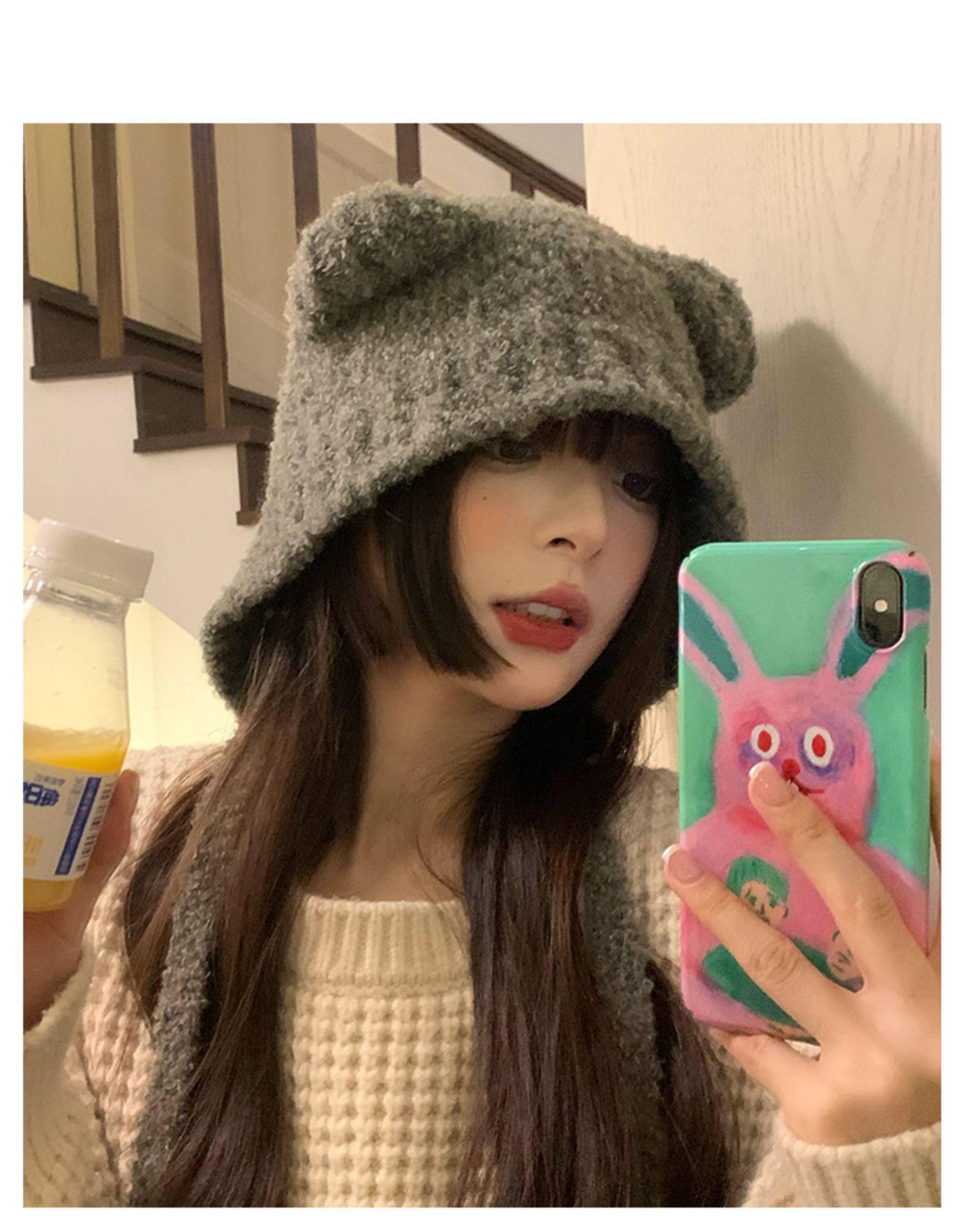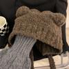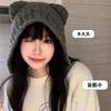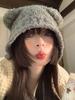 Gorro de oso bonito para mujer, estilo coreano de invierno, cálido, gris, con protección para las orejas, gorro de lana de punto para otoño e invierno, gorro de cabeza grande.
