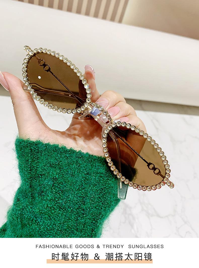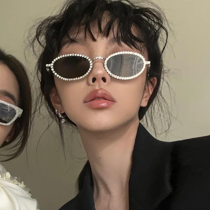Nuevas Gafas de Sol de Alta Gama con Marco Ovalado de Diamantes Completos Estilo Moda Spice Girls Sombra de Sol Forma Cóncava Diamantes Gafas de Sol Vintage