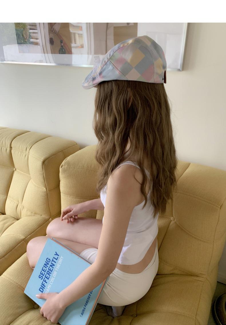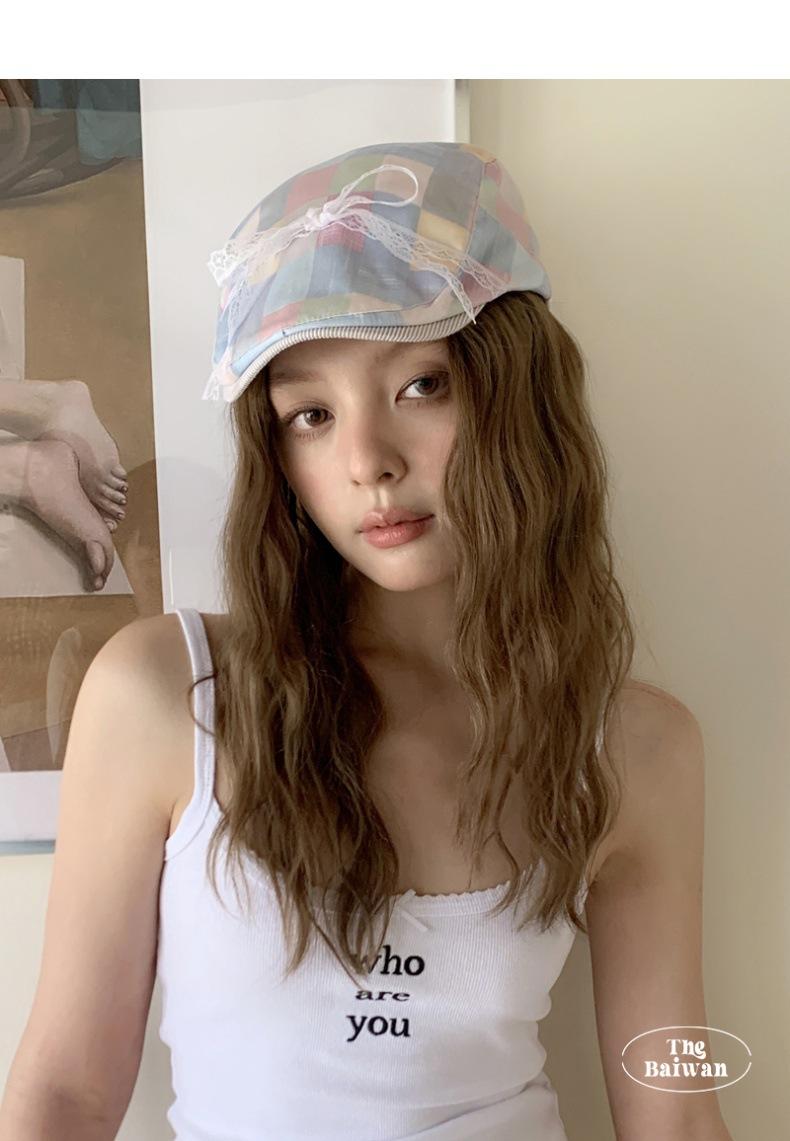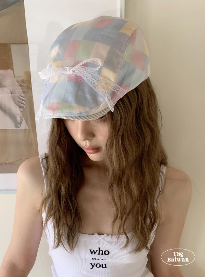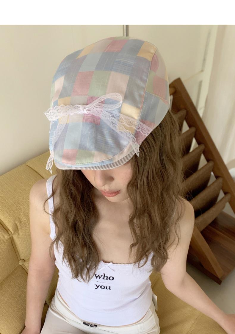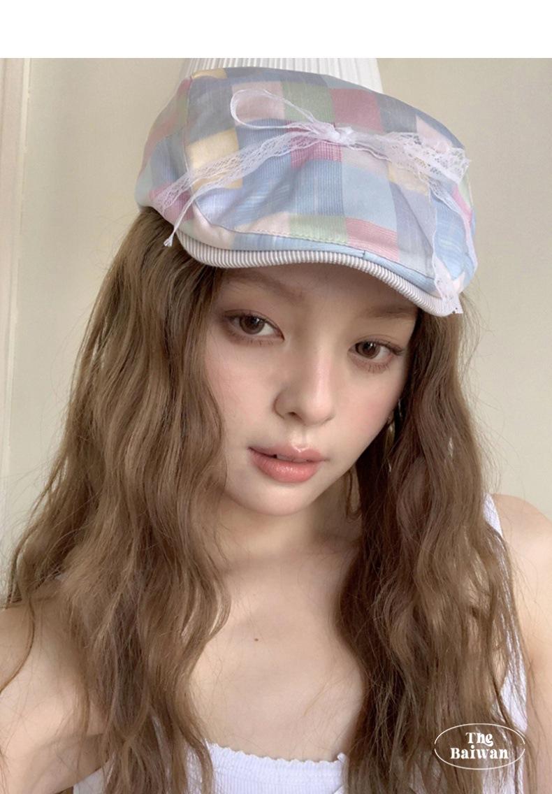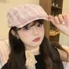 Hola, chica de gustos antiguos tempranos ~ sombrero de rejilla de color hacia adelante, boina que combina con todo, cara kawaii, sombrero pequeño de vendedor de periódicos