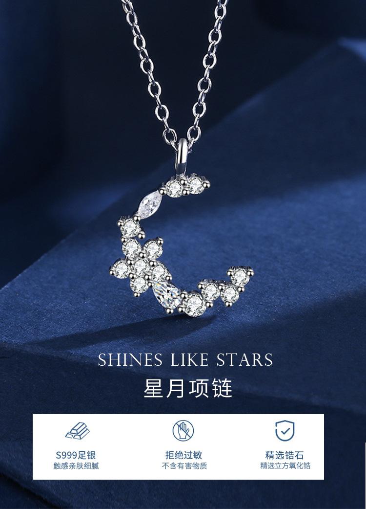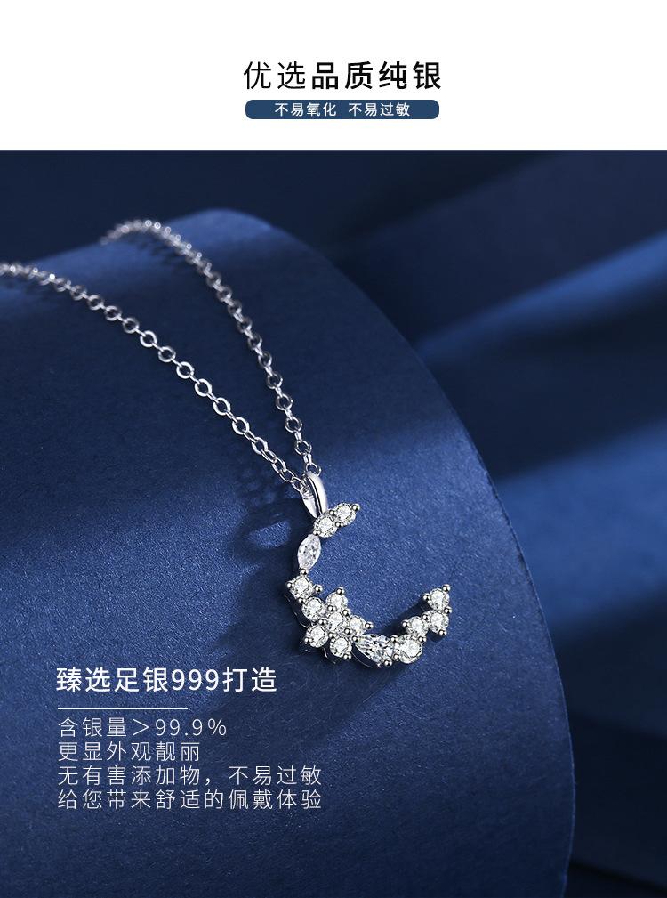 Collar Xingyue con cadena de clavícula, viento frío, plata esterlina S999, joyería que combina con todo, colgante de alta gama con sentido del verano
