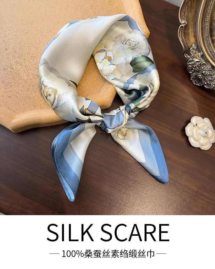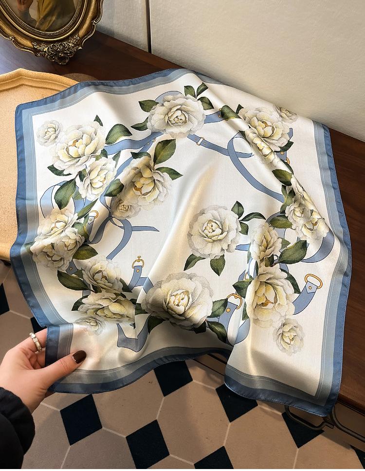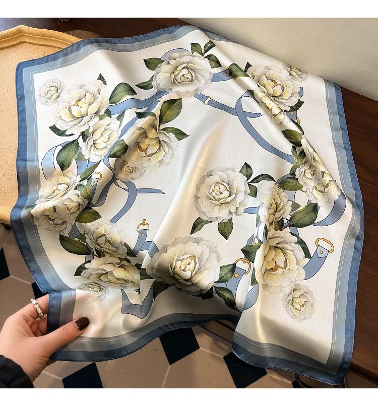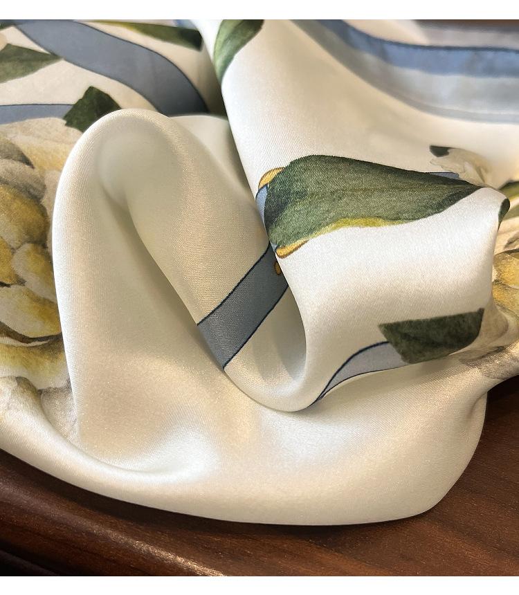 Bufanda de seda Camellia de primavera para mujer, bufanda cuadrada de satén crepé de alta calidad y combinable, bufanda de seda 100% morera.