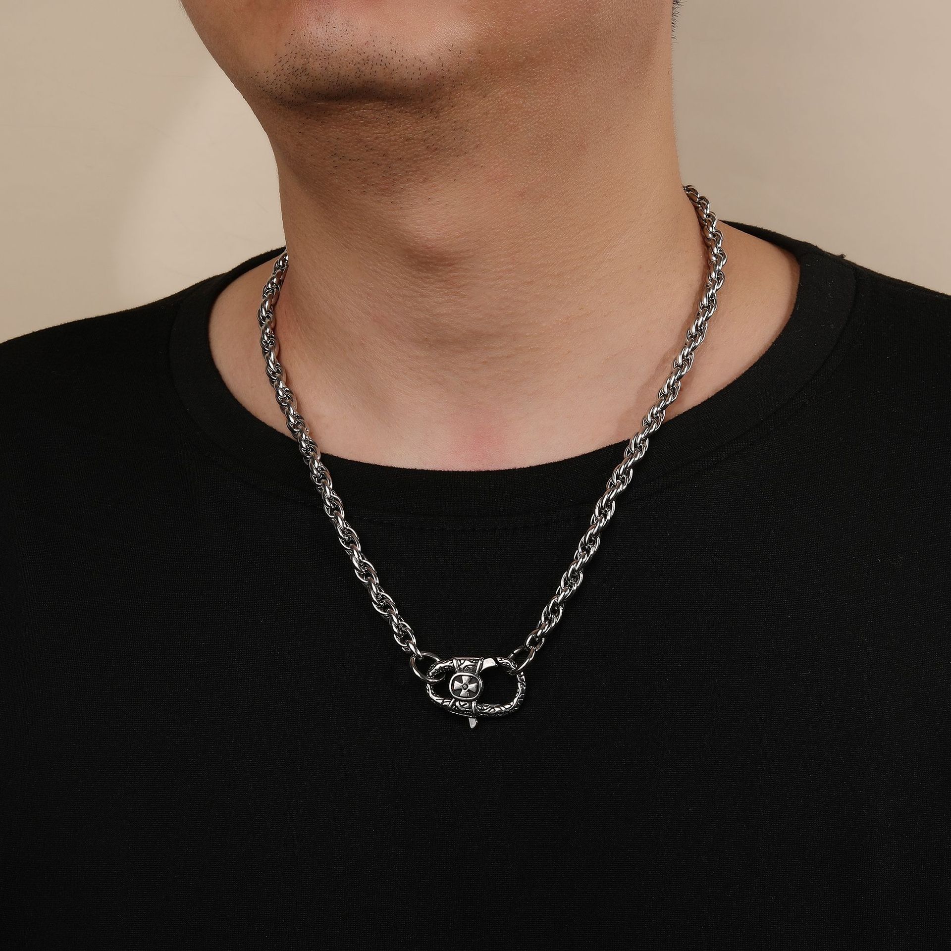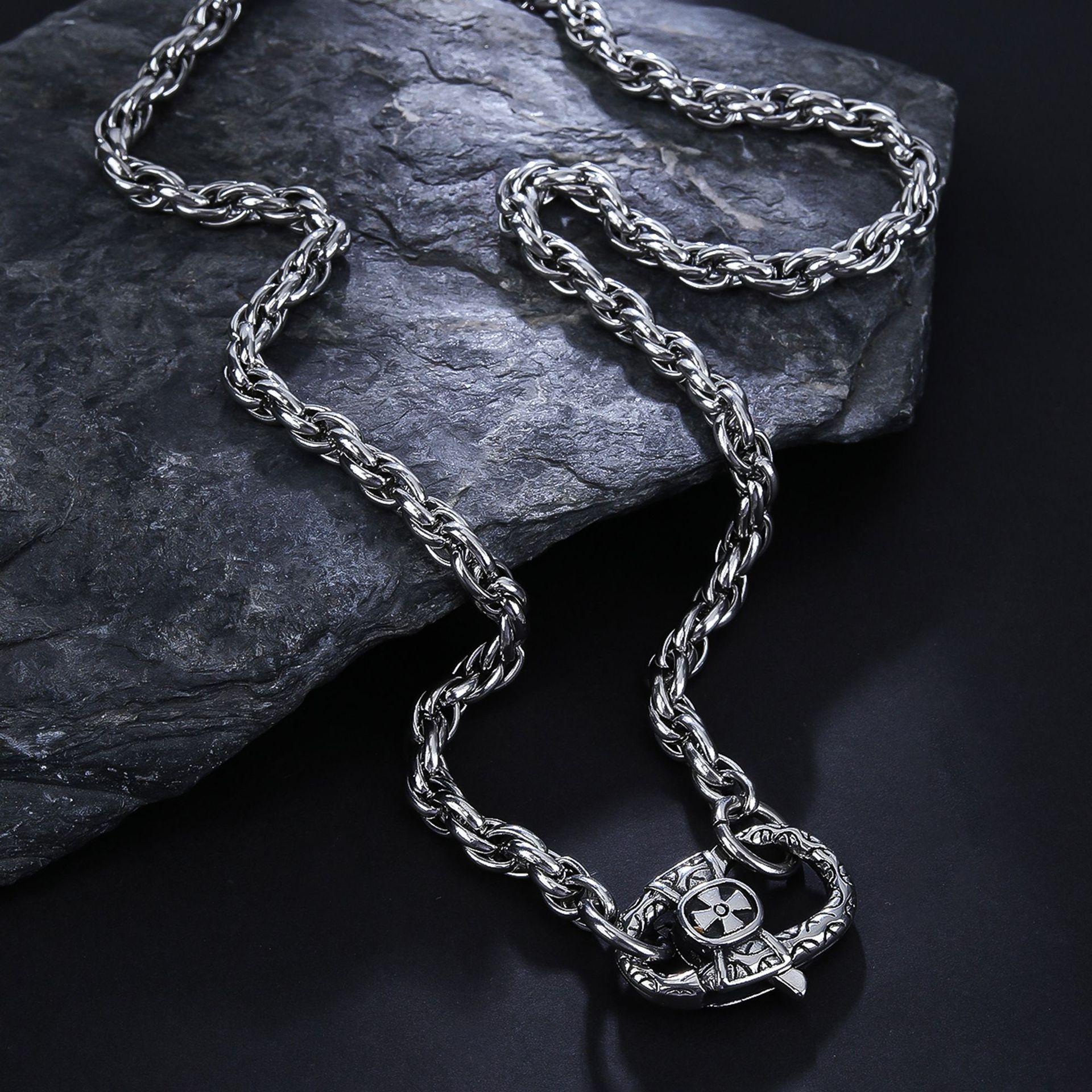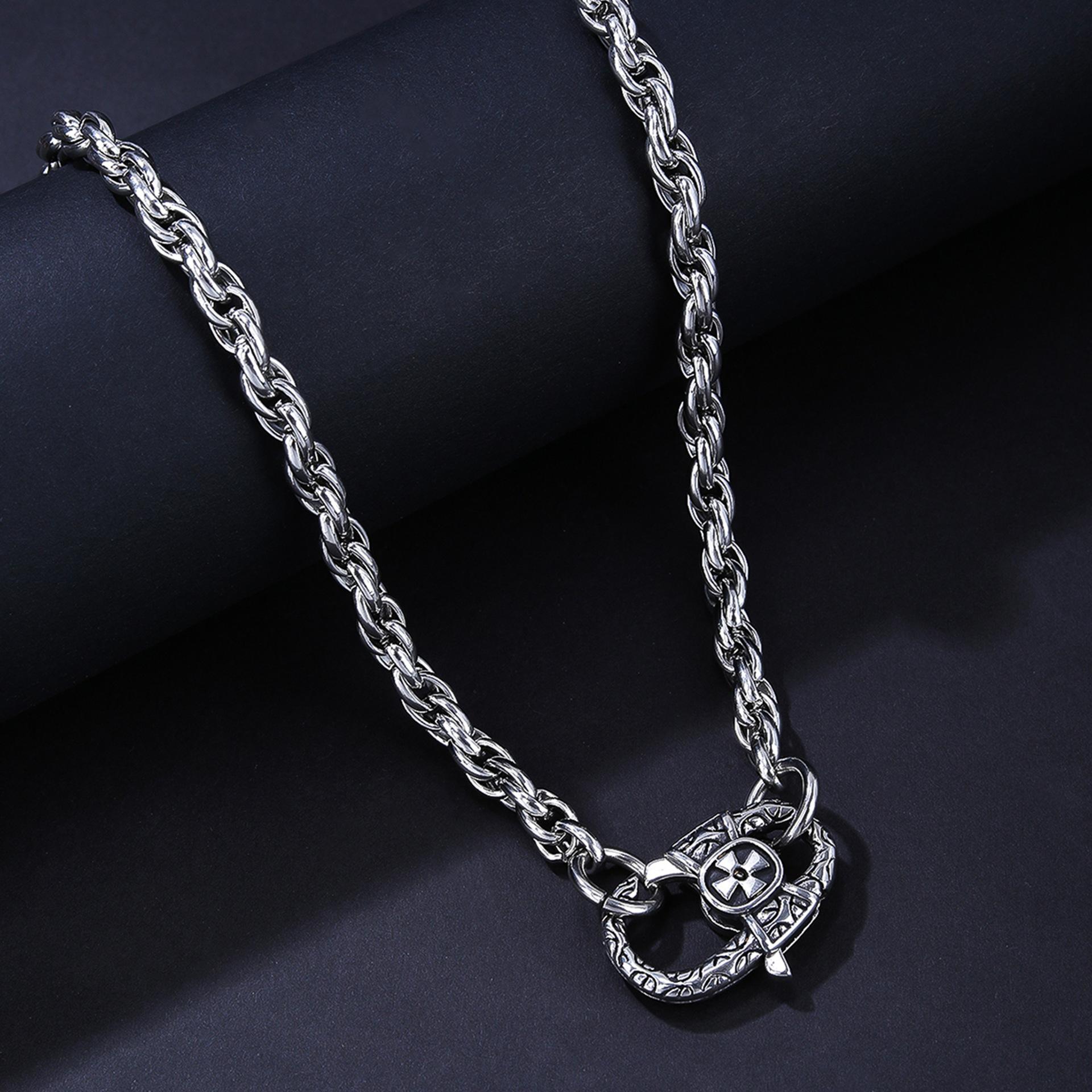 Collar con colgante de cruz pequeña con cadena torcida de acero inoxidable de hip-hop transfronterizo europeo y americano, tendencia de personalidad para hombres, moda simple