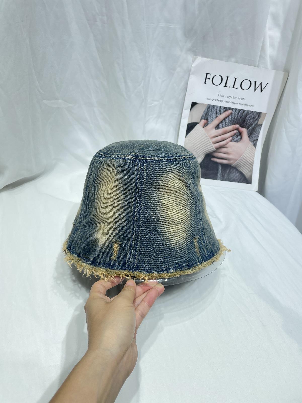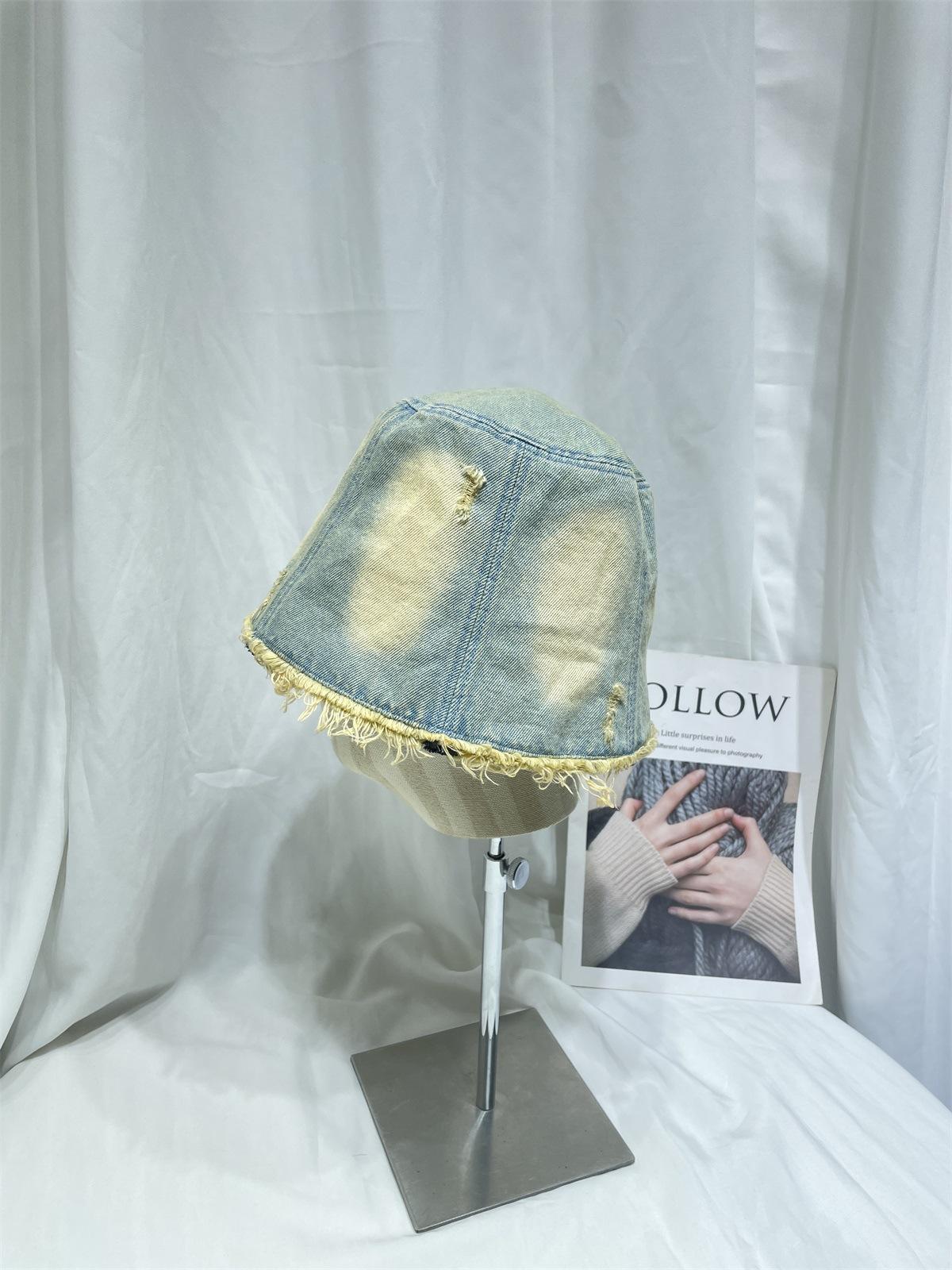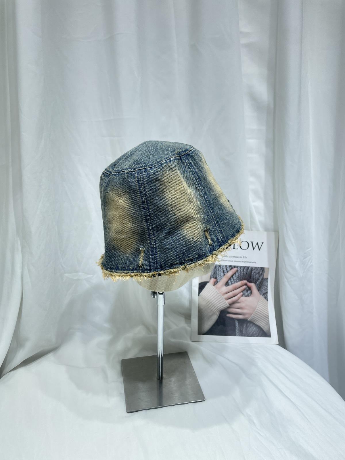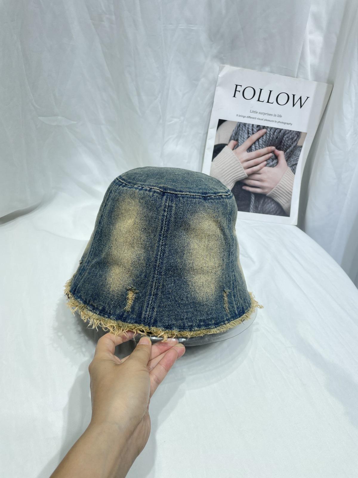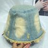 Sombrero de Pescador de Mezclilla Lavada y Desgastada Vintage Japonés para Mujer Primavera y Verano que Muestra el Rostro Pequeño Sombrero de Cubeta Casual Sombrilla