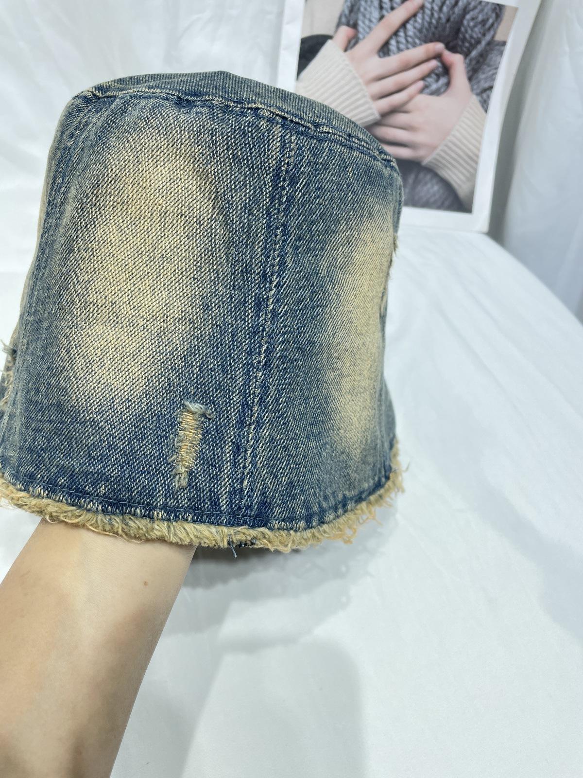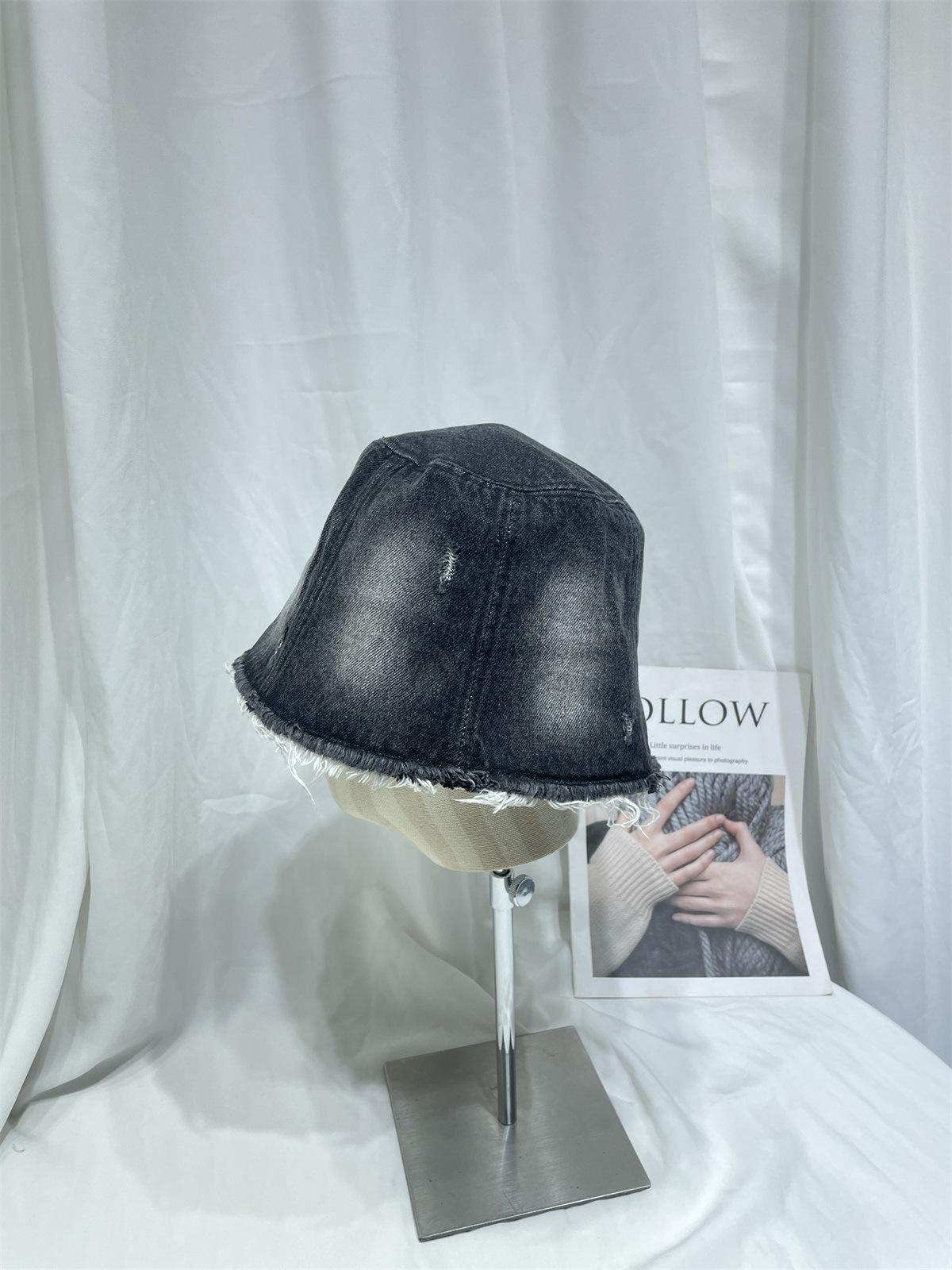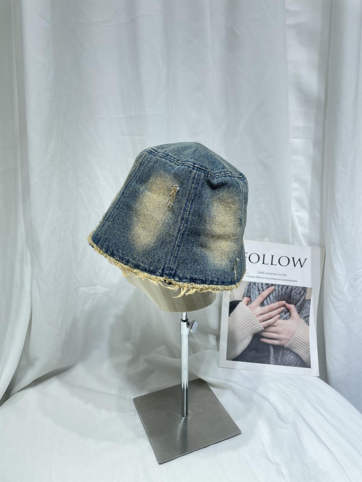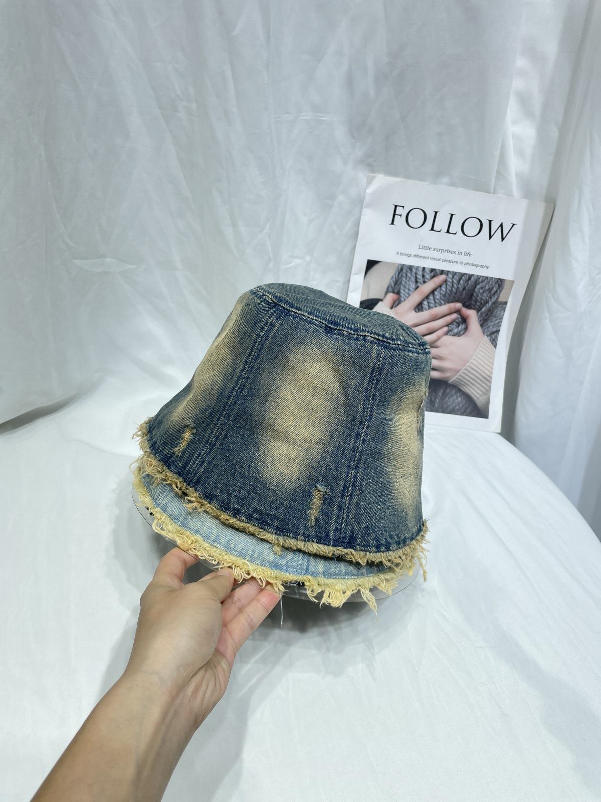 Sombrero de Pescador de Mezclilla Lavada y Desgastada Vintage Japonés para Mujer Primavera y Verano que Muestra el Rostro Pequeño Sombrero de Cubeta Casual Sombrilla