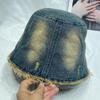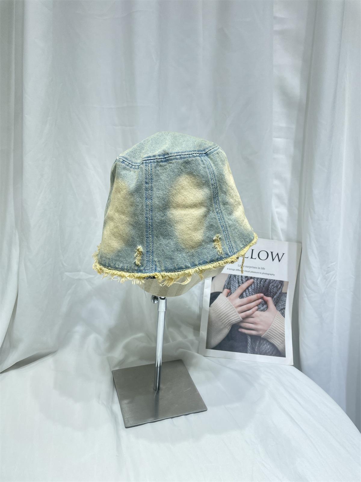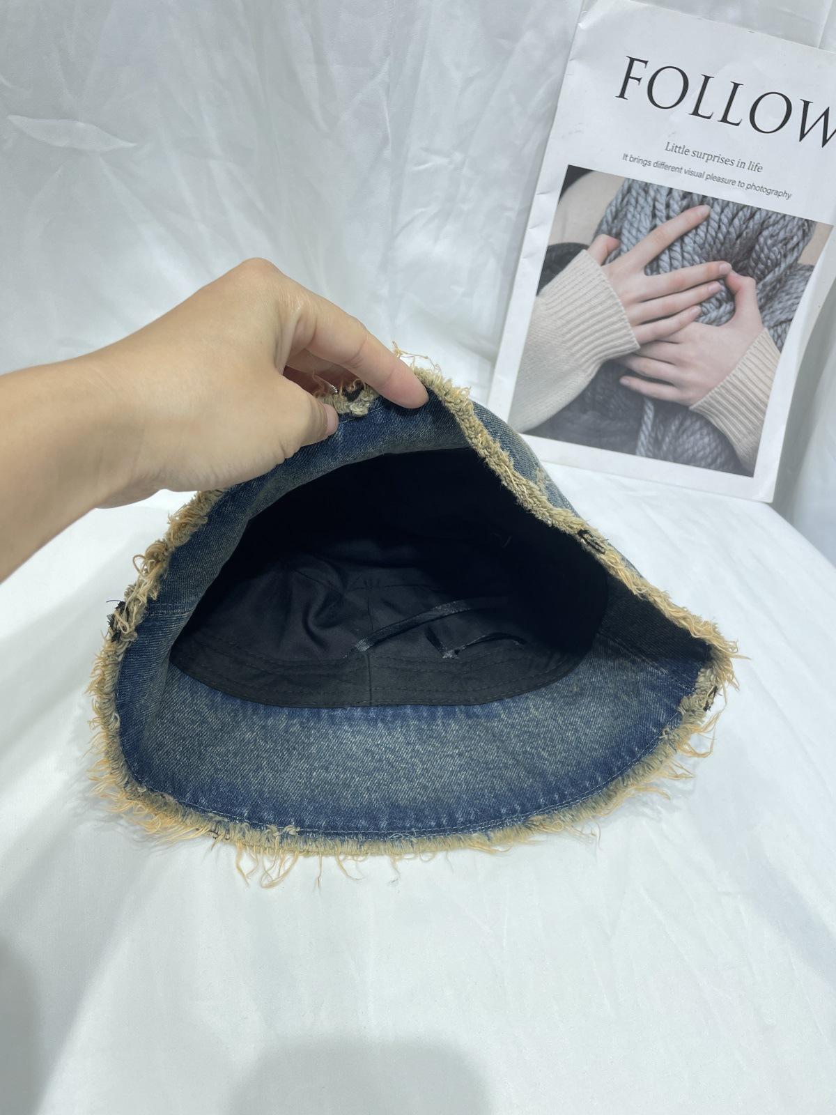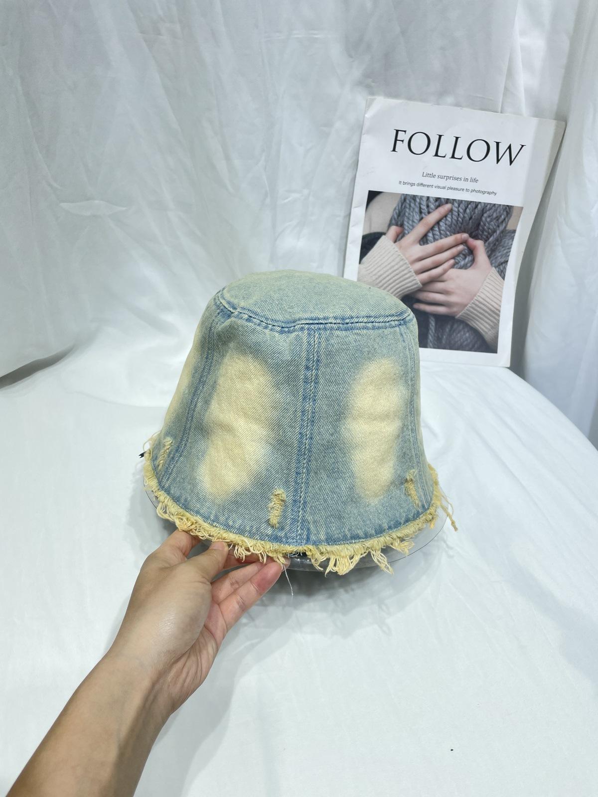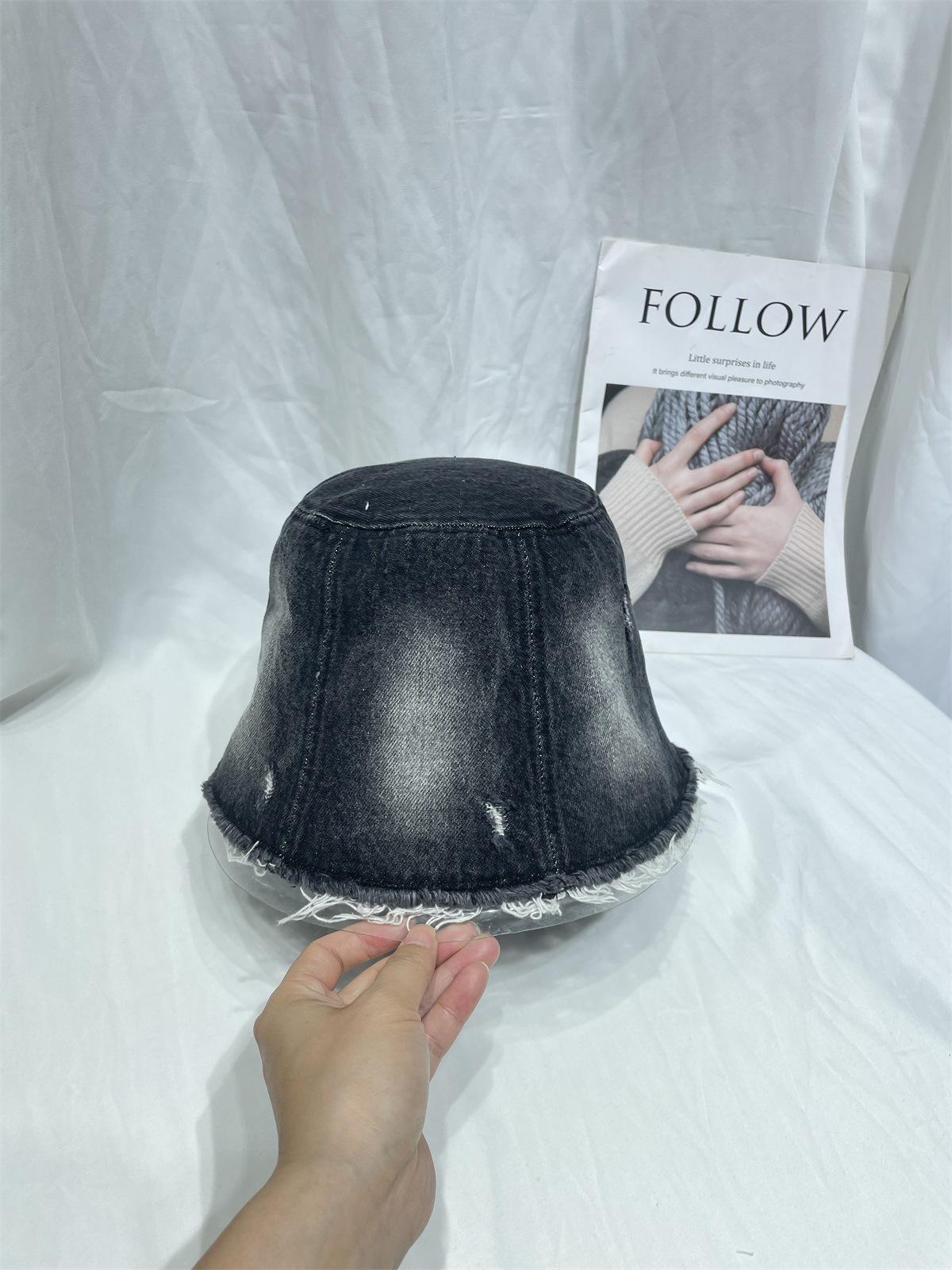 Sombrero de Pescador de Mezclilla Lavada y Desgastada Vintage Japonés para Mujer Primavera y Verano que Muestra el Rostro Pequeño Sombrero de Cubeta Casual Sombrilla