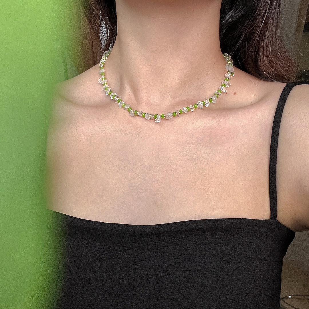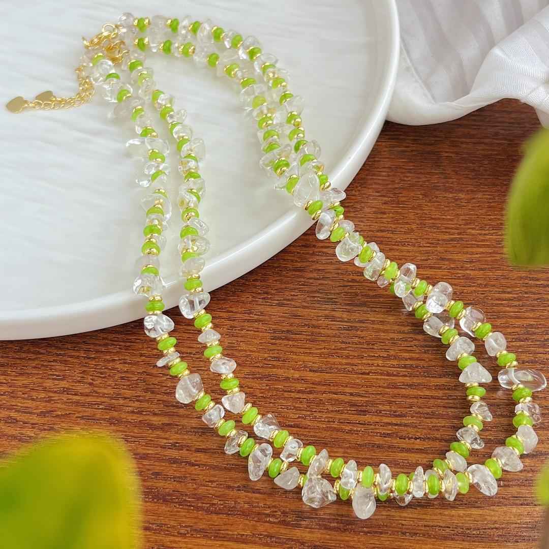 Collar de cadena de clavícula de verano con hielo triturado de cristal blanco natural nuevo