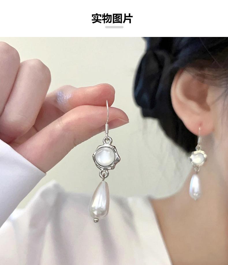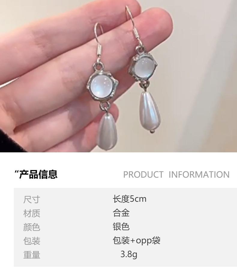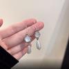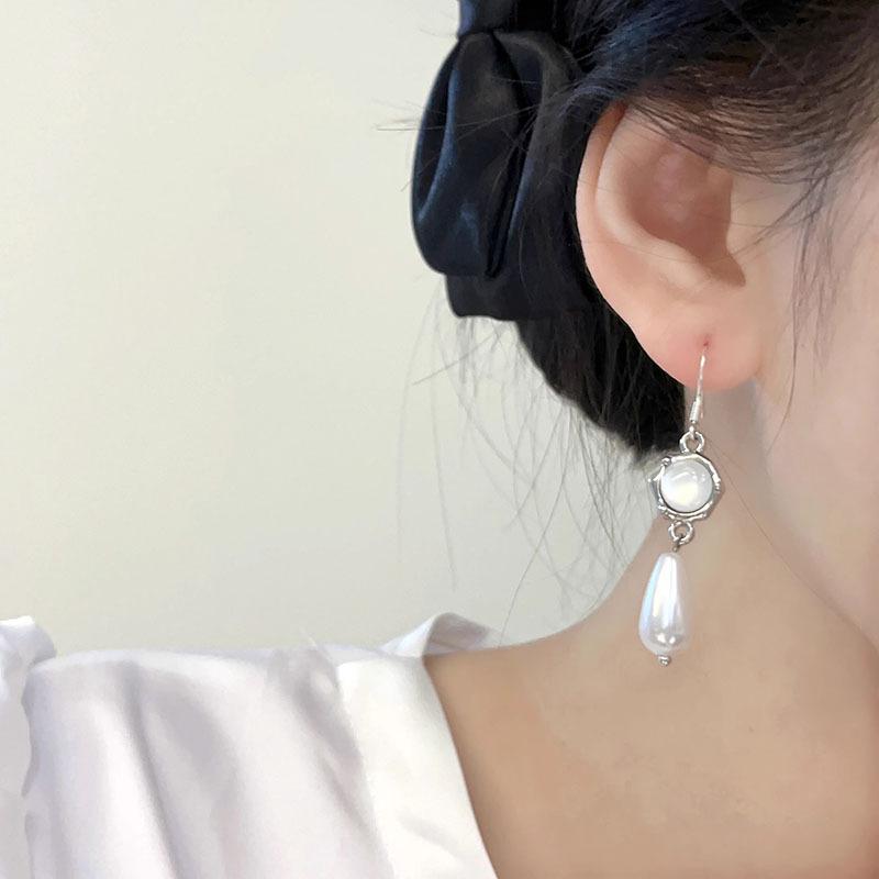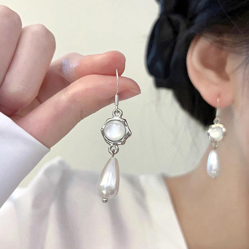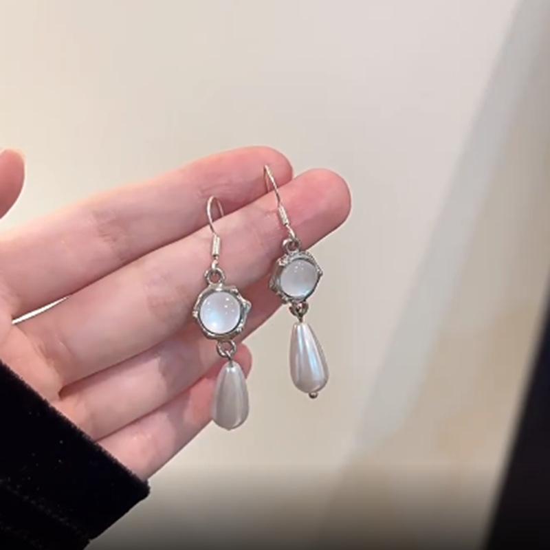 Pendientes de perla de piedra lunar francesa 2023, nuevos pendientes de lujo ligeros y de alta gama con gancho para la oreja para mujer.
