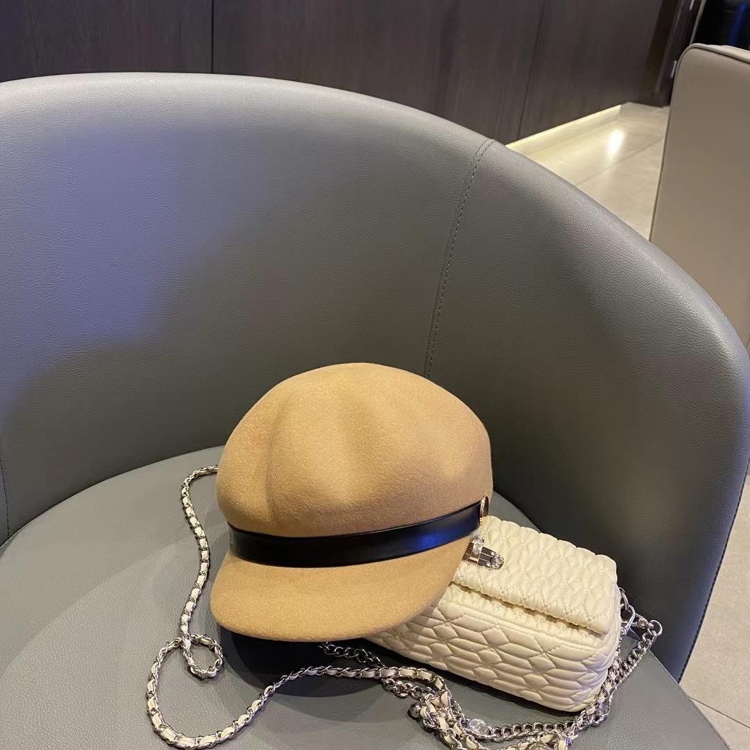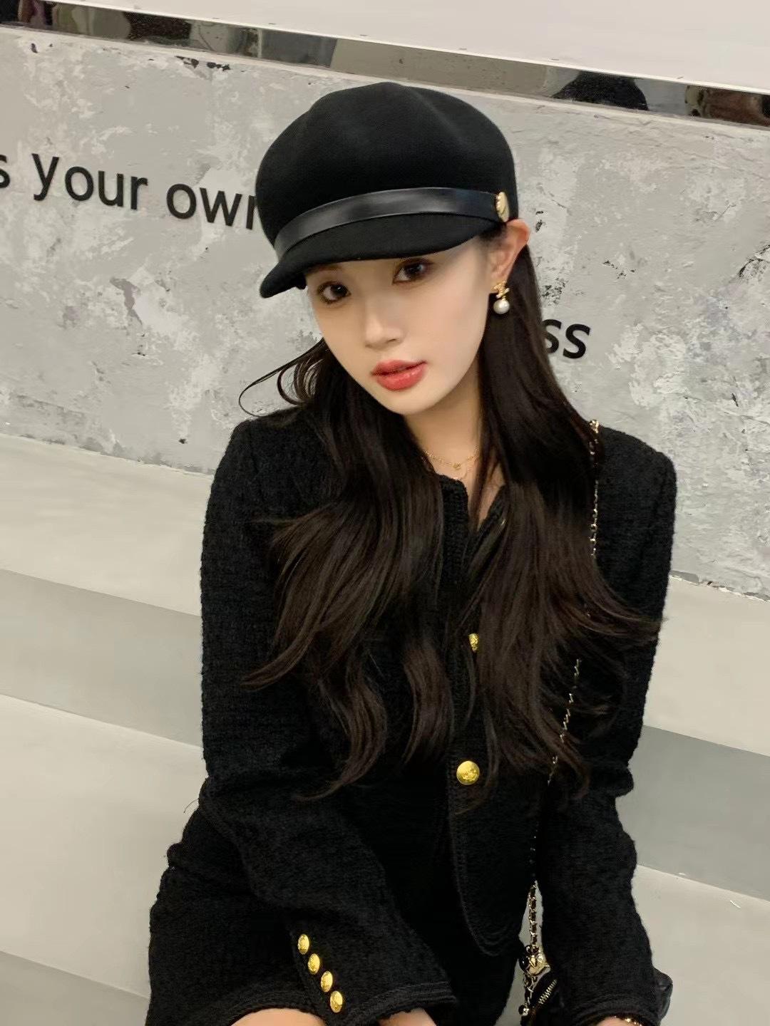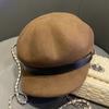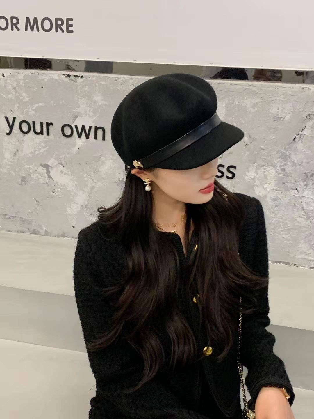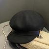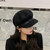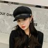 Boina de lana negra con visera para mujer, estilo retro de pintor británico, estilo vendedor de periódicos, de otoño e invierno, de moda, octogonal.