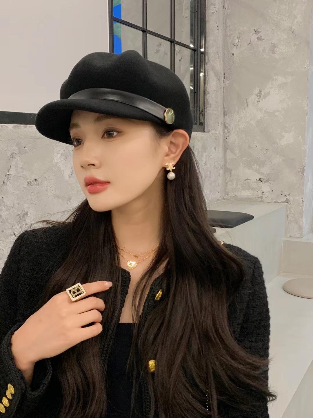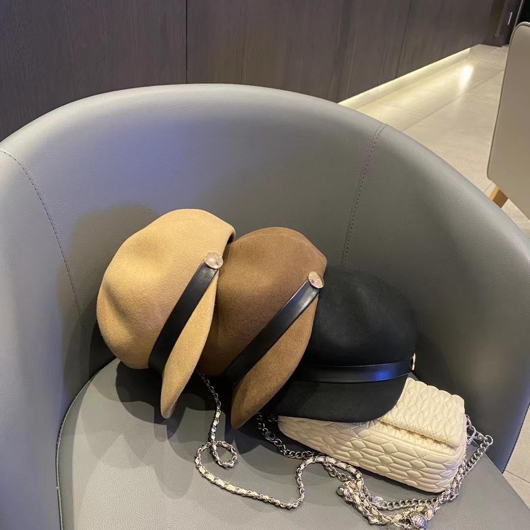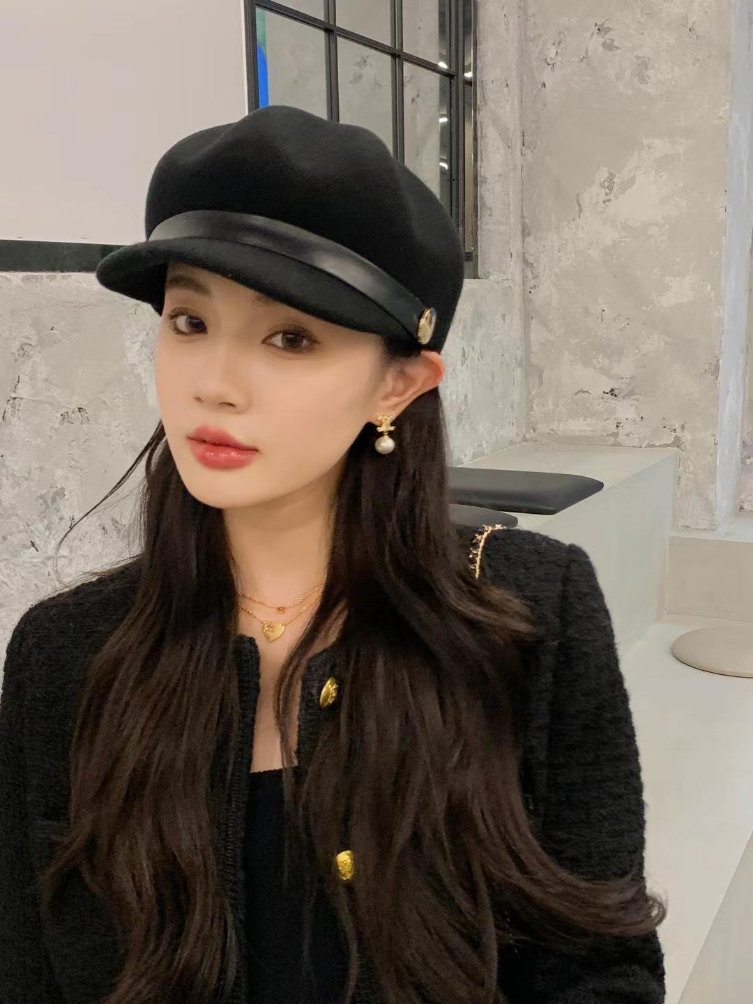 Boina de lana negra con visera para mujer, estilo retro de pintor británico, estilo vendedor de periódicos, de otoño e invierno, de moda, octogonal.
