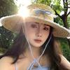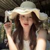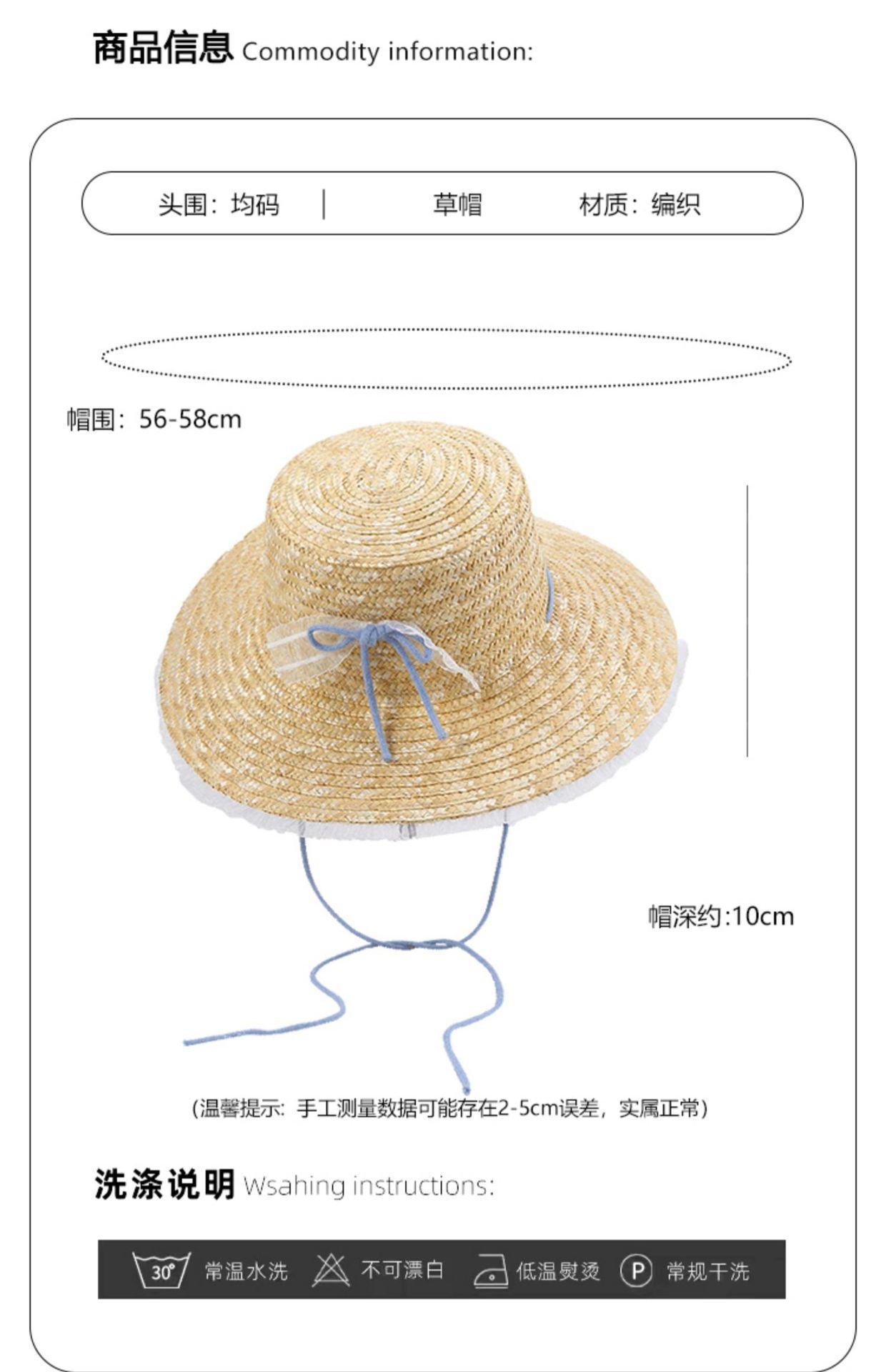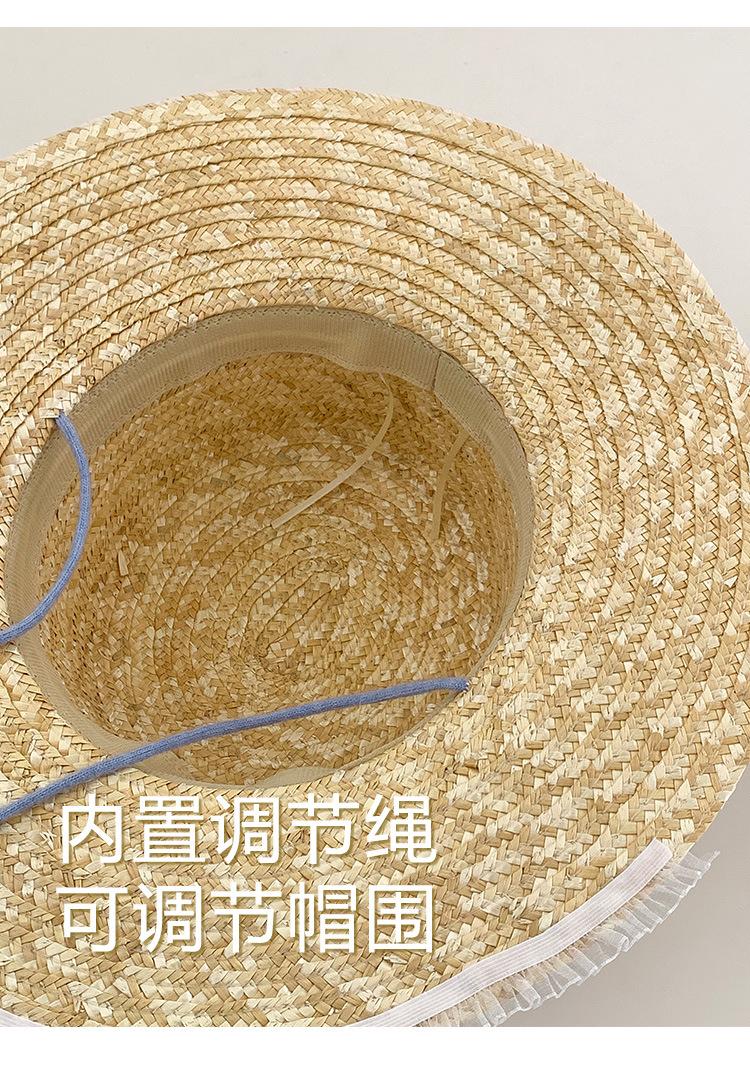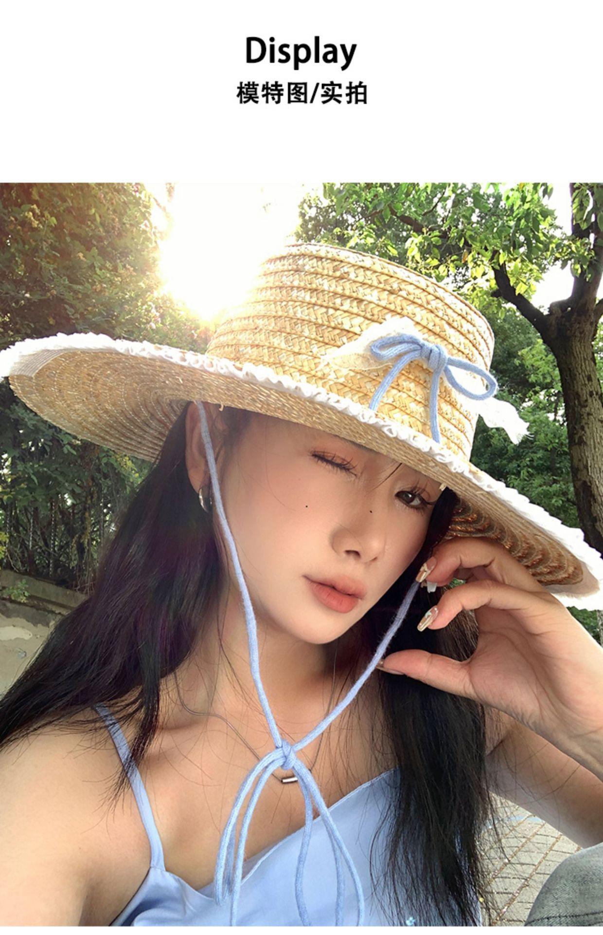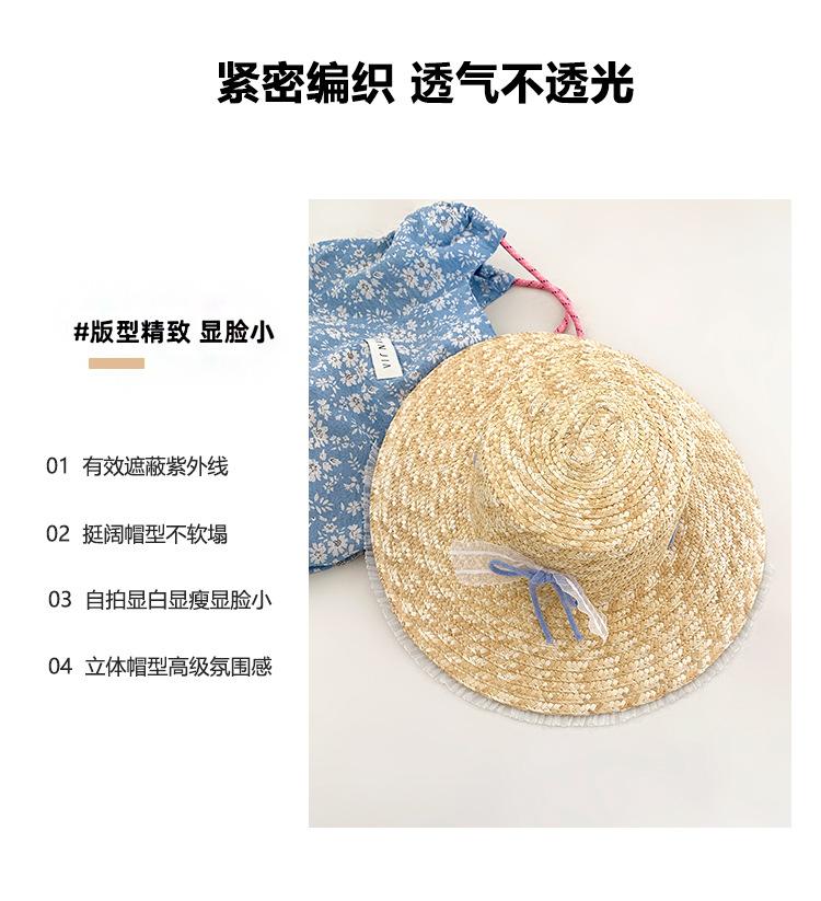 Sombrero de Paja con Encaje de Lazo Francés para Viajes de Verano y Vacaciones Marítimas Sombrero de Protección Solar Sombrero de Paja de Ala Ancha para el Sol