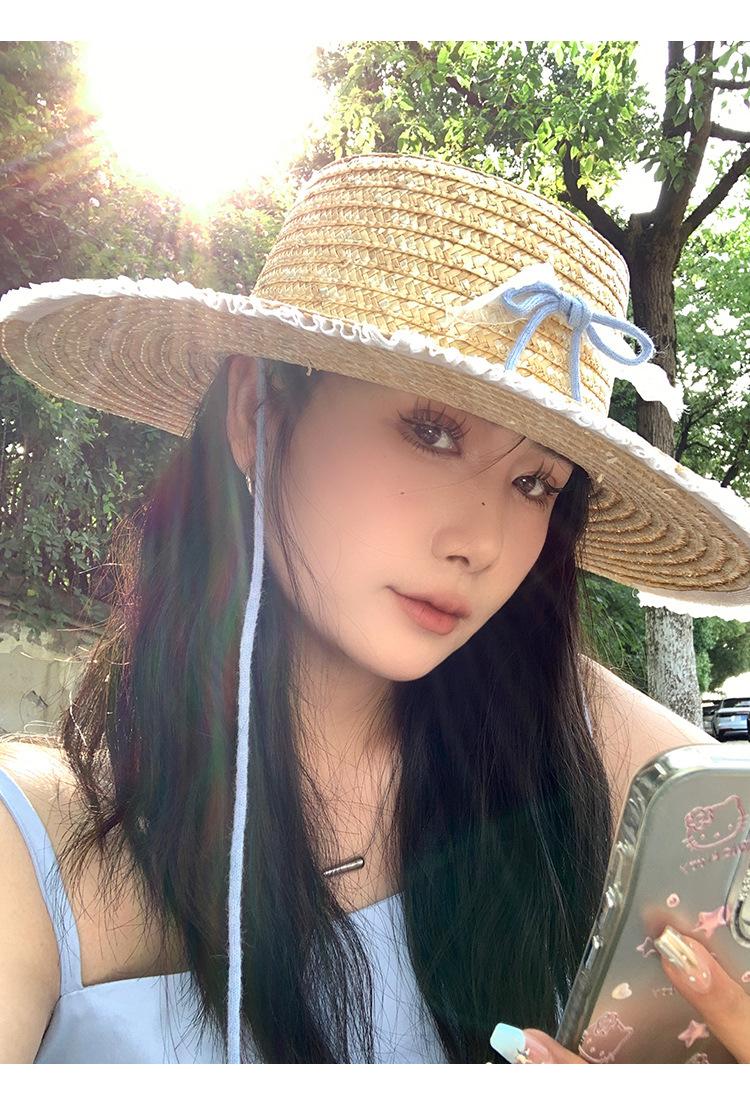 Blue bow straw hat